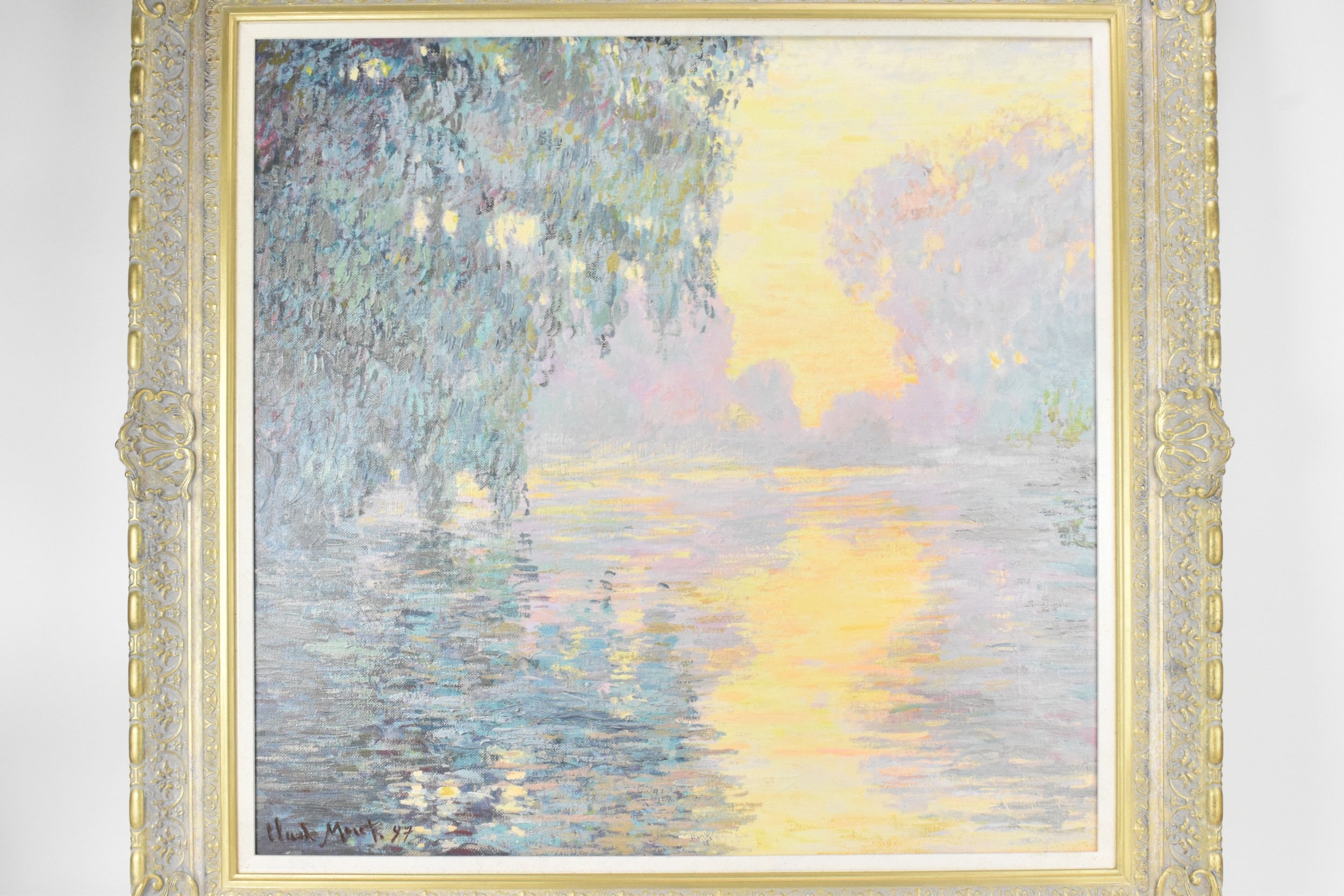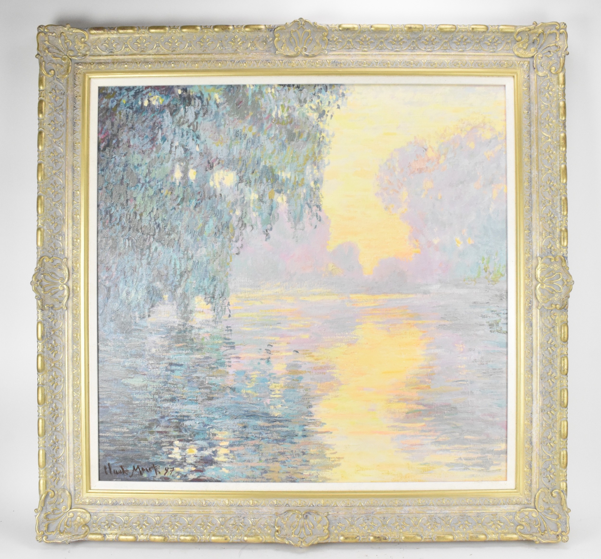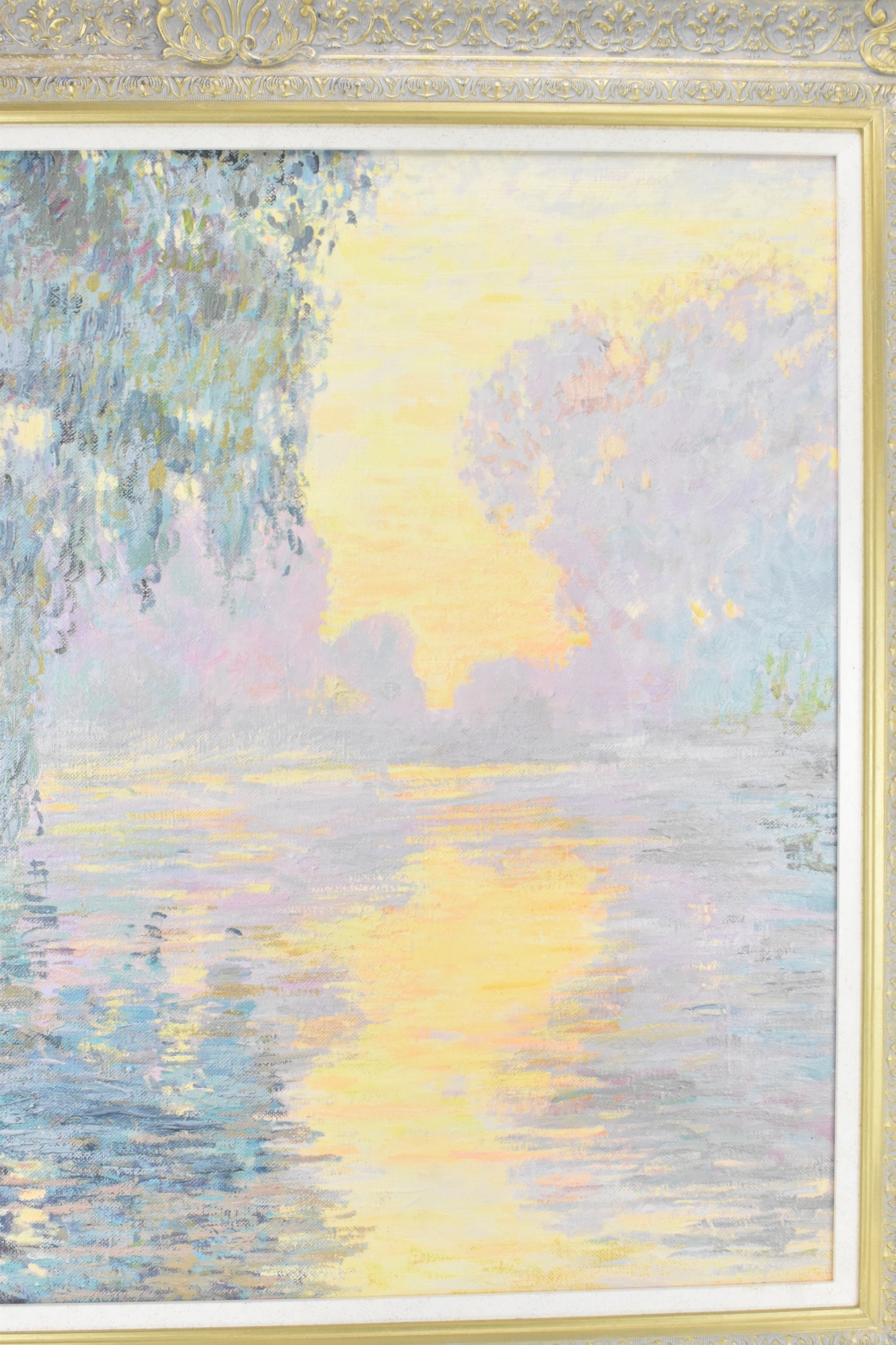 John Myatt (B.1945) A hand embellished giclee canvas entitled 'Mist on the Seine', limited edition numbered 13/95, with certificate of authenticity, 78.5cm x 81cm, framed