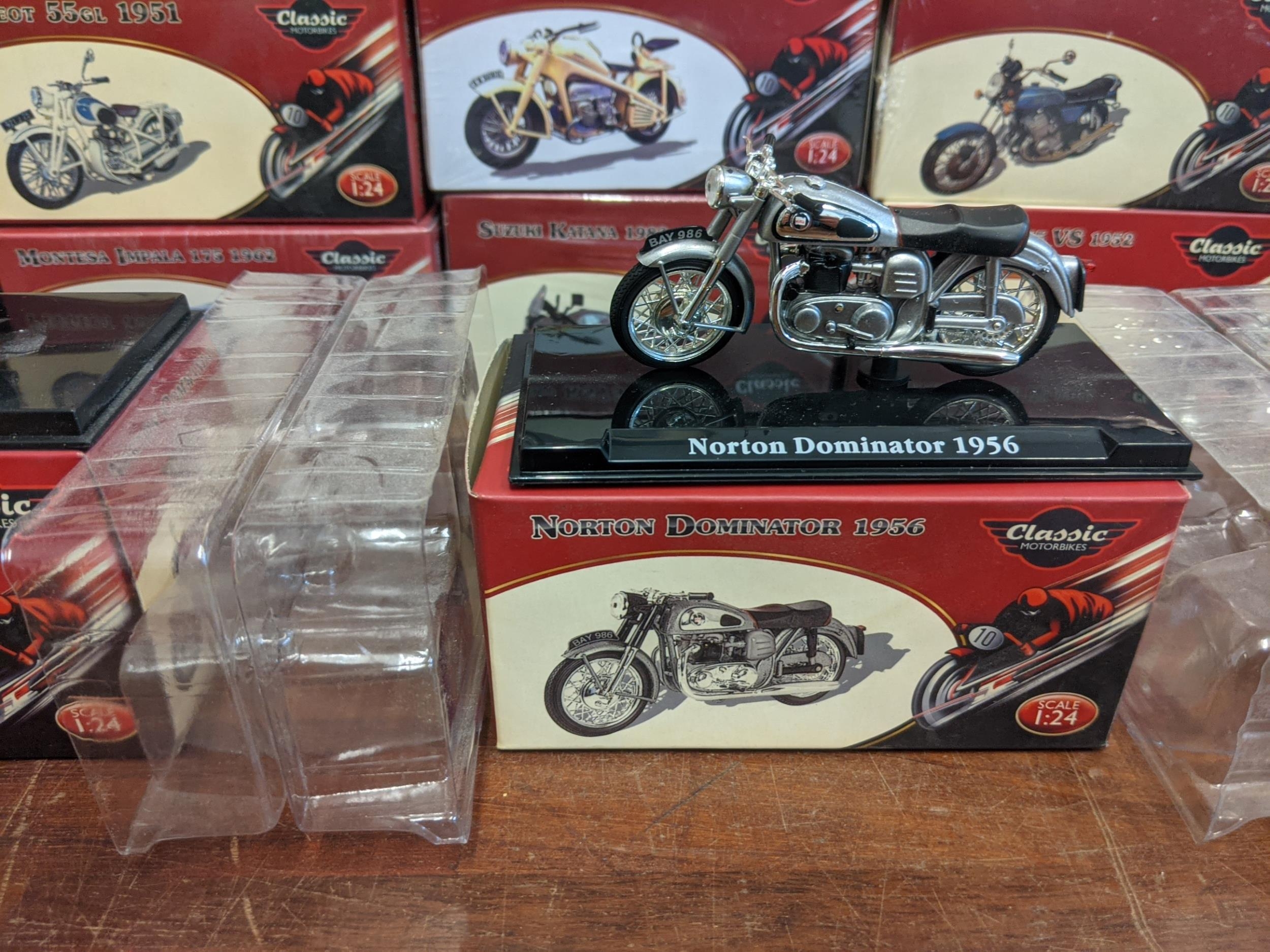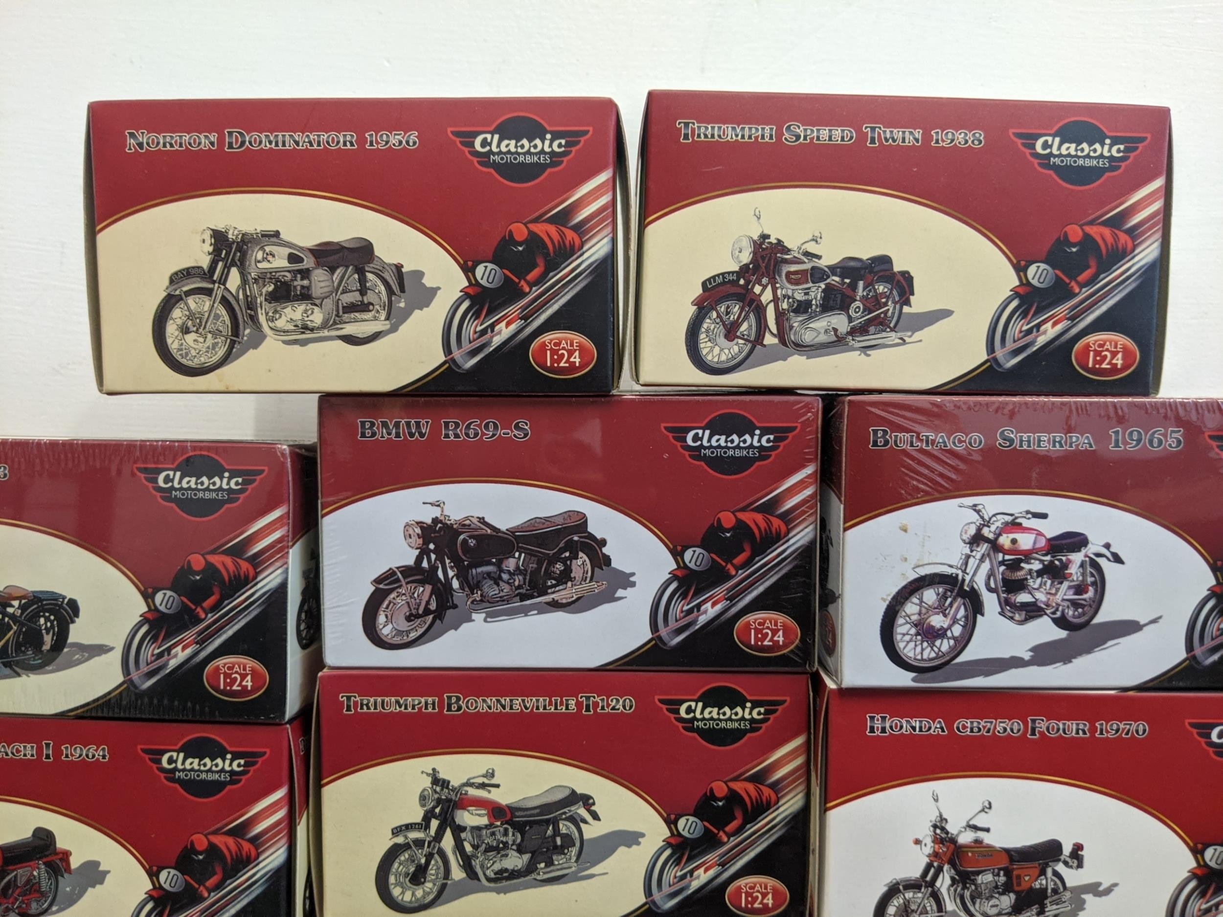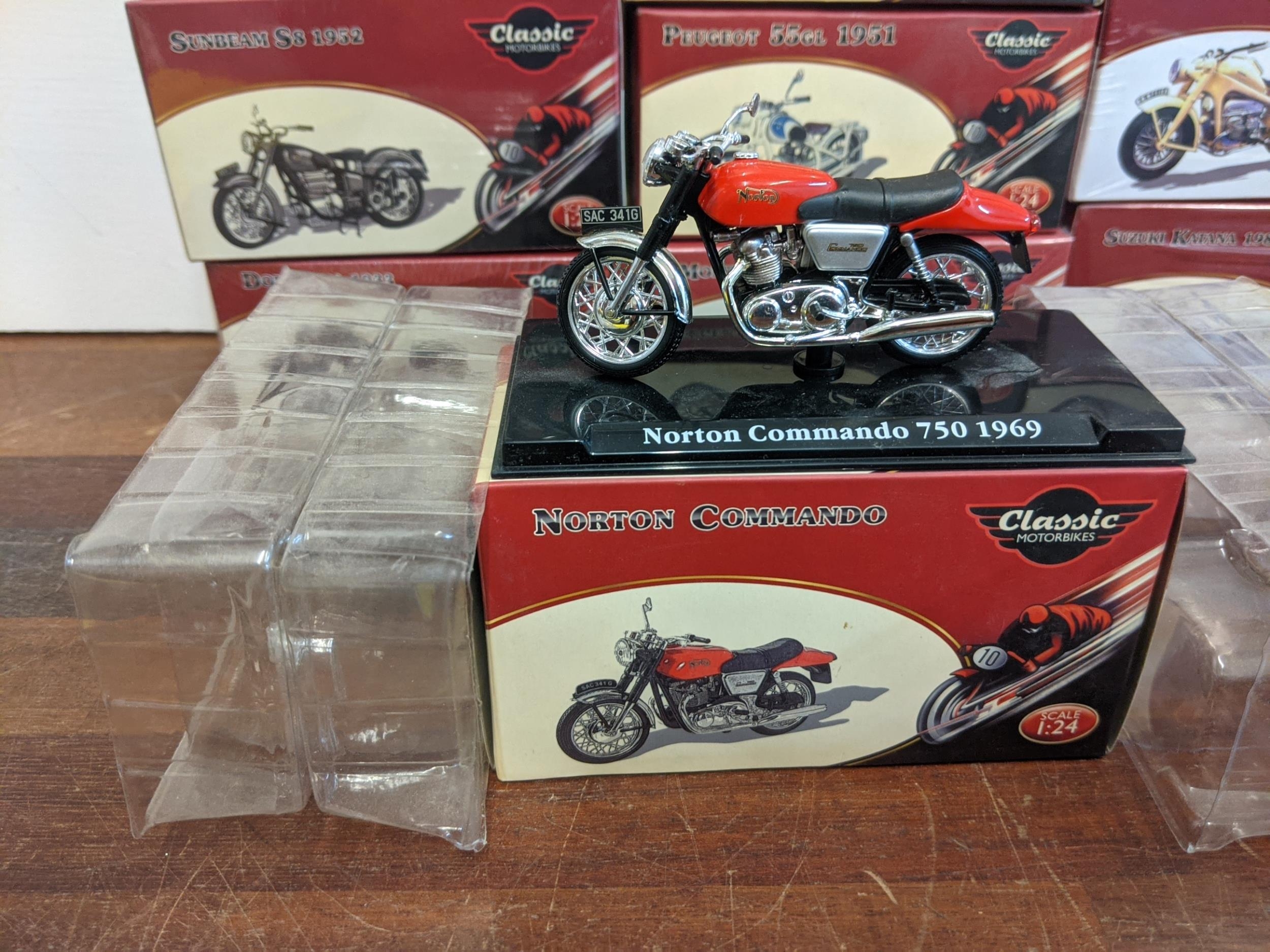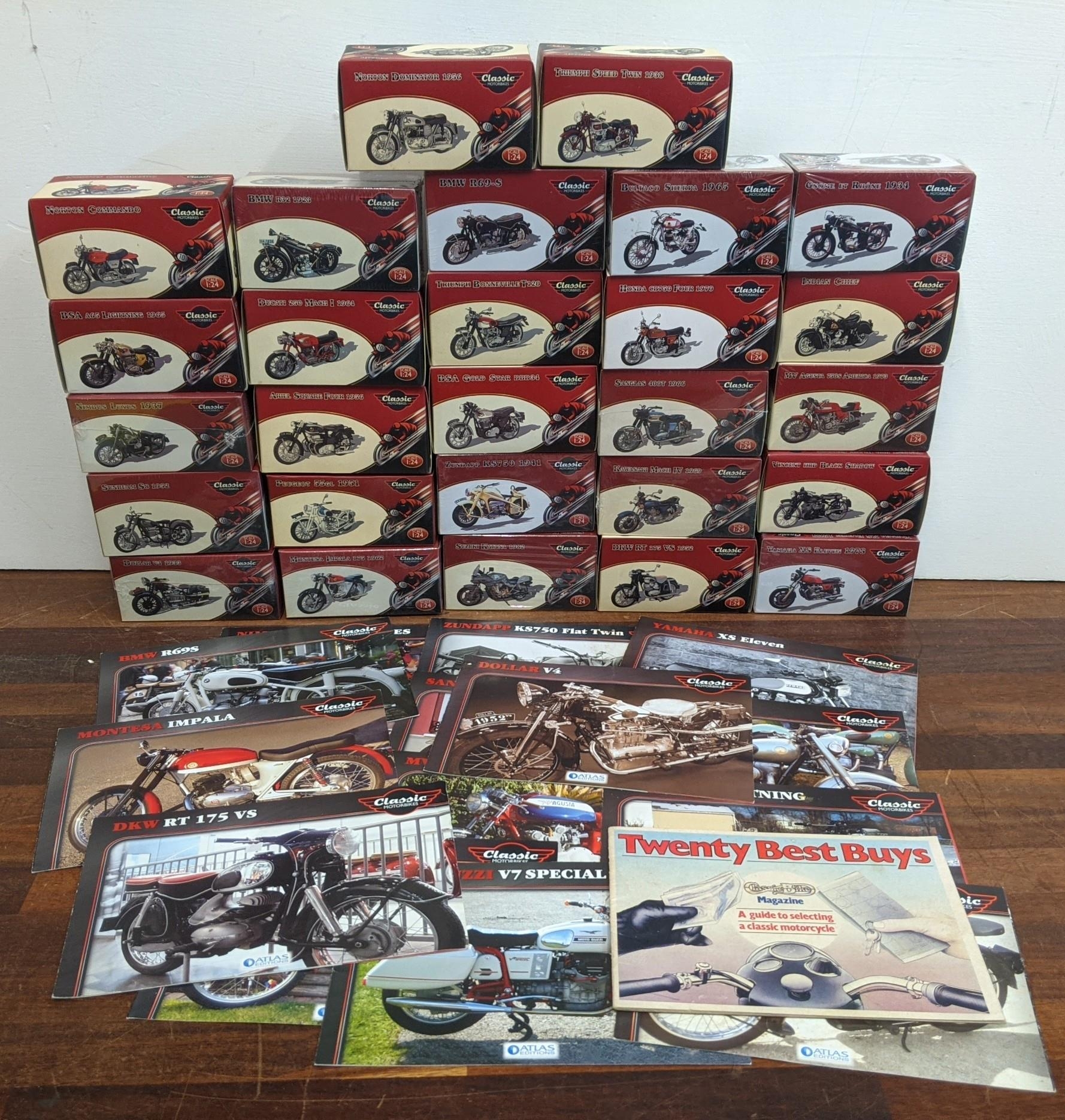 A group of twenty-seven Classic Motorbike models from the Atlas Collection, thirteen are sealed, to include; a Norton Commando 750 (1969), a Norton Dominator (1956), a Triumph Speed Twin (1938) and others