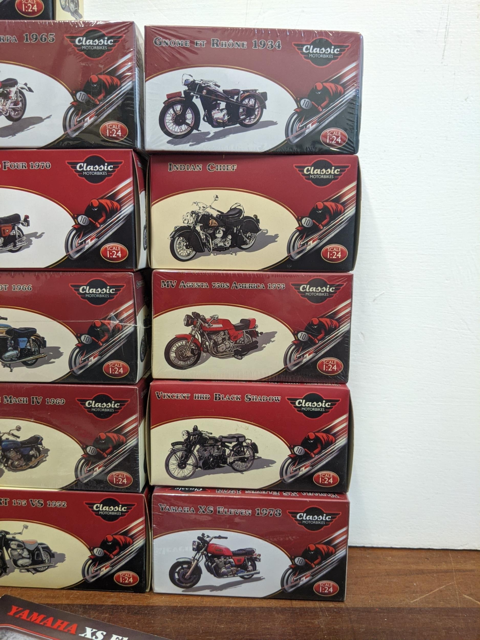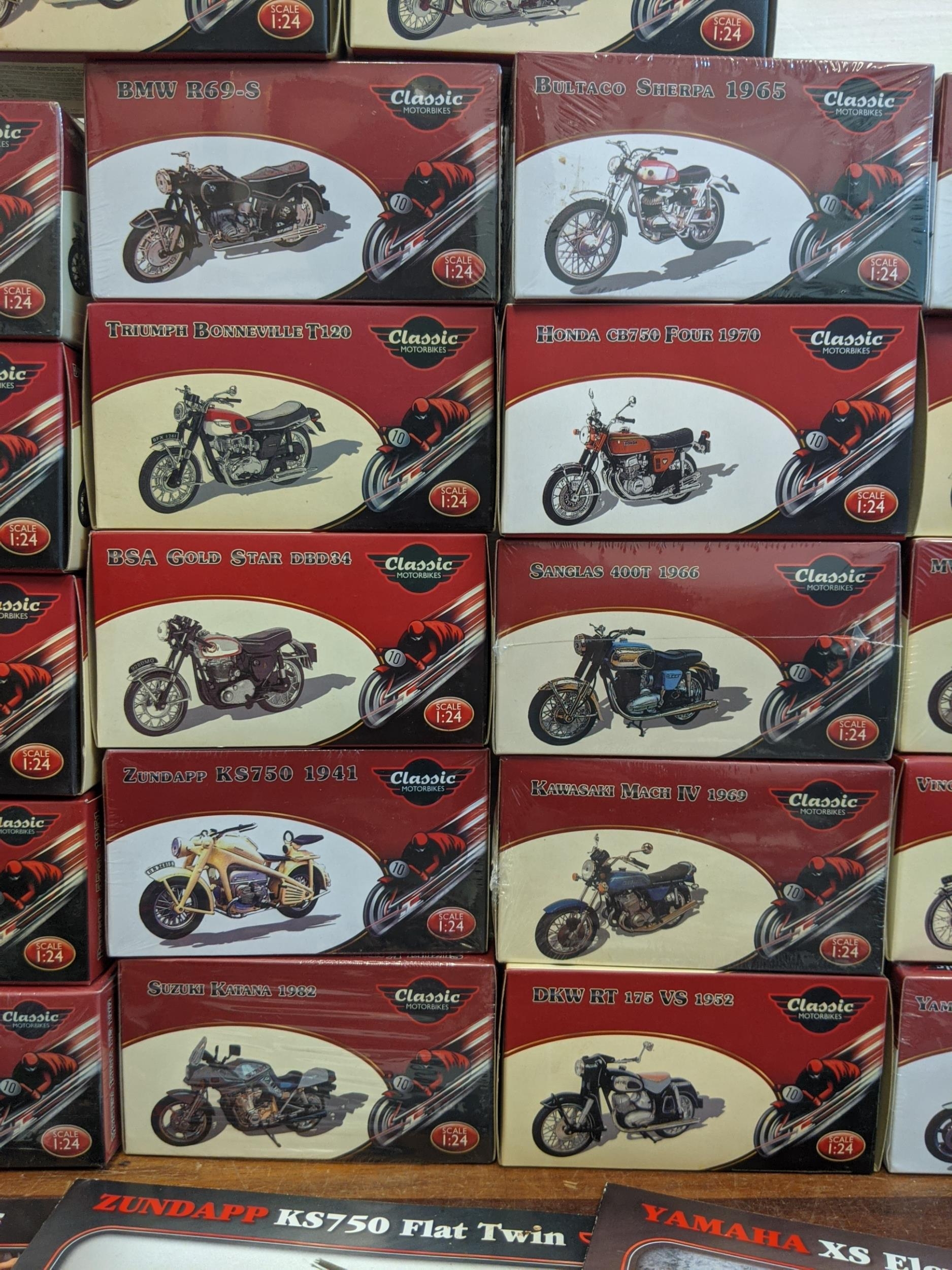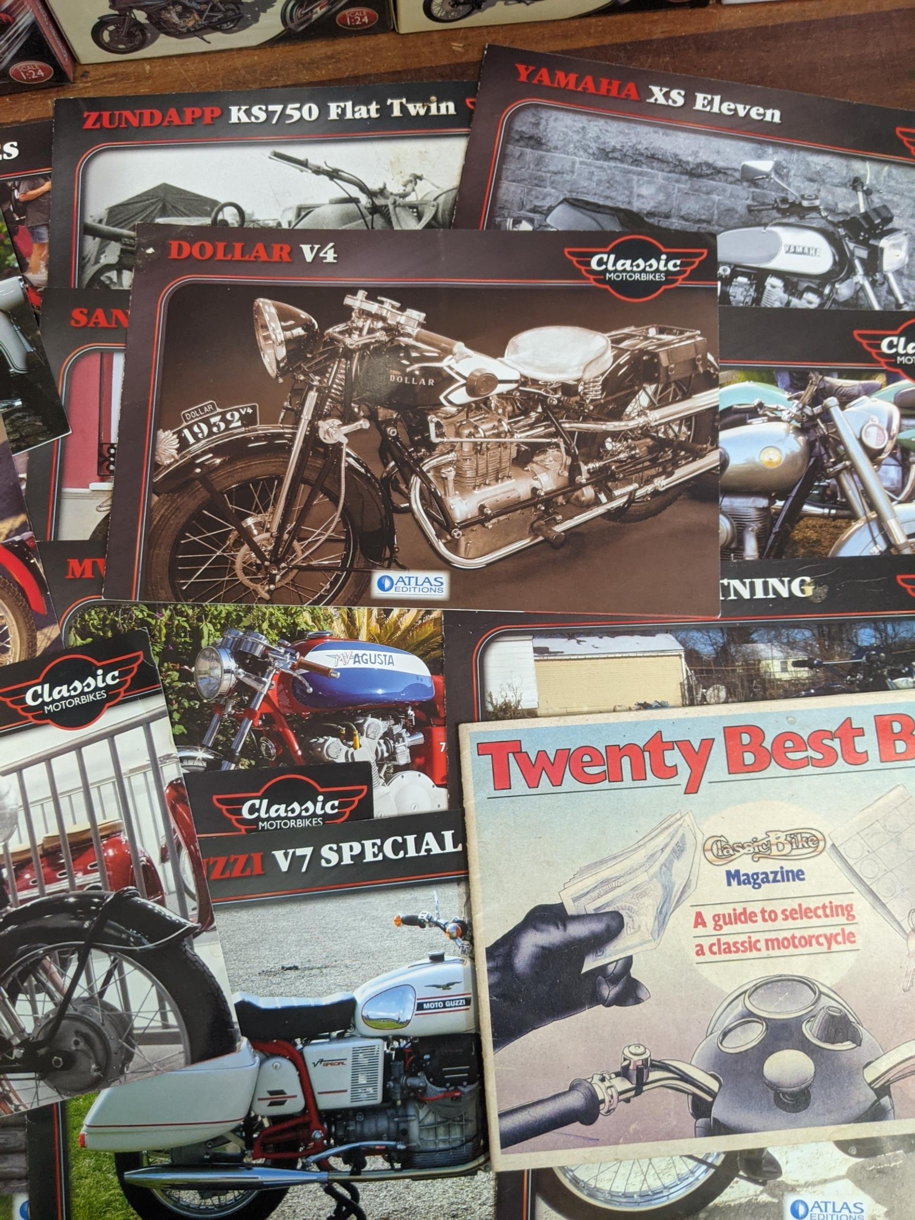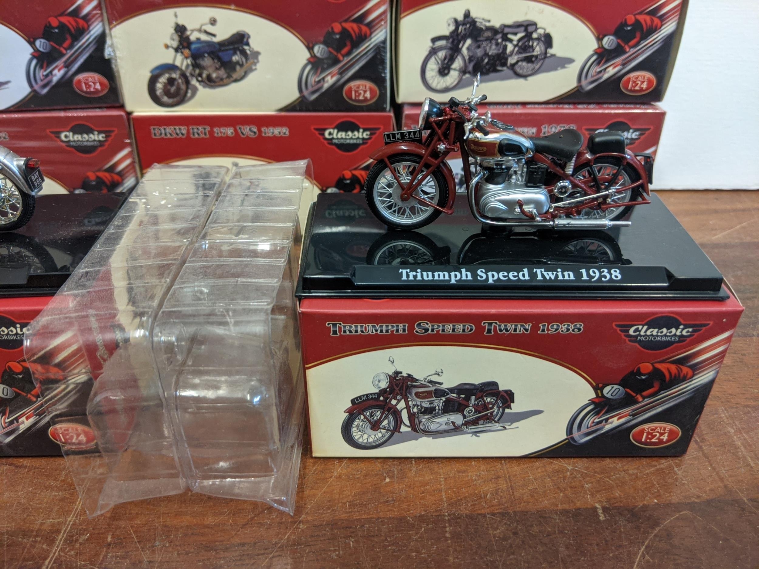 A group of twenty-seven Classic Motorbike models from the Atlas Collection, thirteen are sealed, to include; a Norton Commando 750 (1969), a Norton Dominator (1956), a Triumph Speed Twin (1938) and others