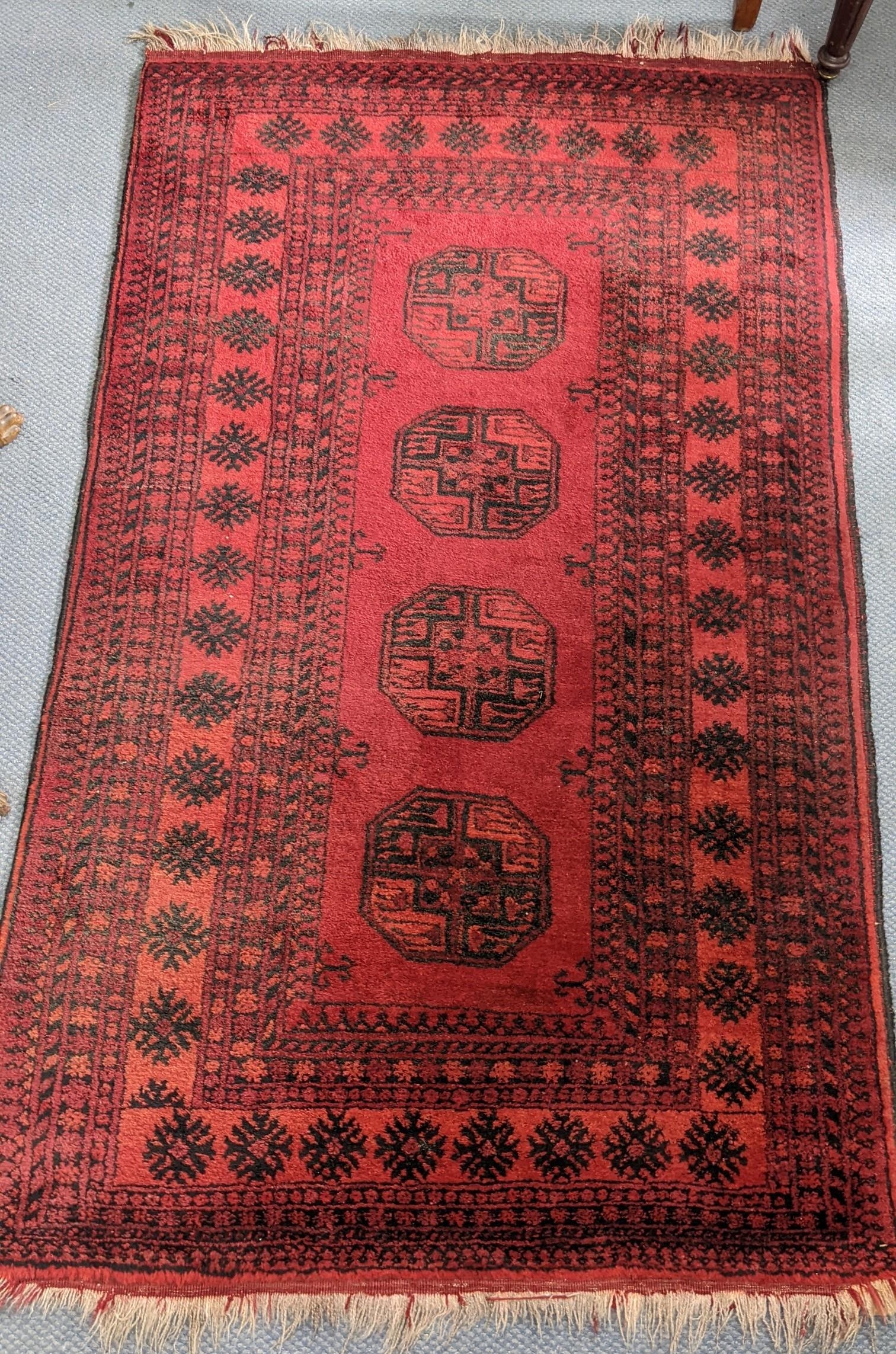 A Middle Eastern handwoven red ground rug 188cm x 114cm Location: RAB