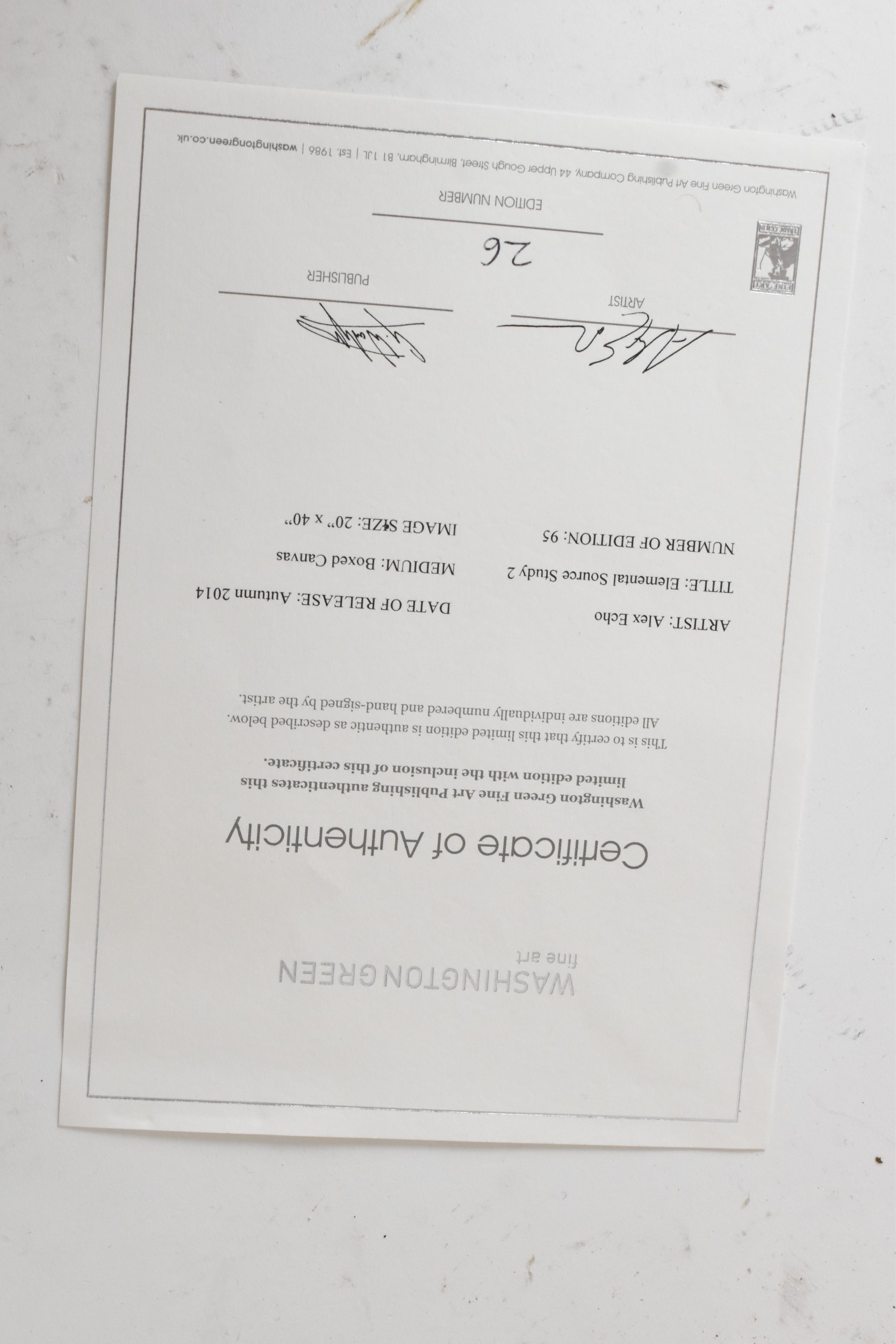 Alex Echo (B.1958) A boxed canvas entitled 'Elemental Source Study 2', limited edition numbered 26/95, with certificate of authenticity, 51cm x 101.5cm, framed