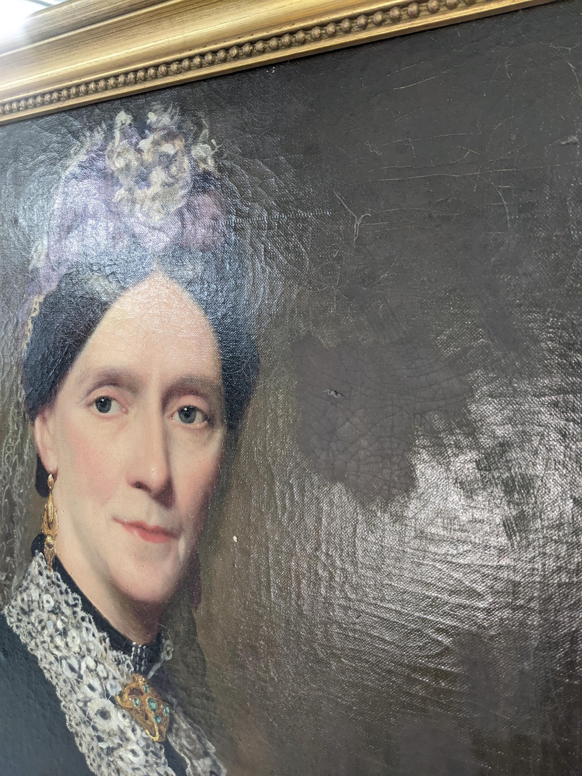 An early/mid 20th century oil on panel depicting a lady in traditional dress, unsigned, framed, not glazed A/F, 52 cm W x 68 cm H