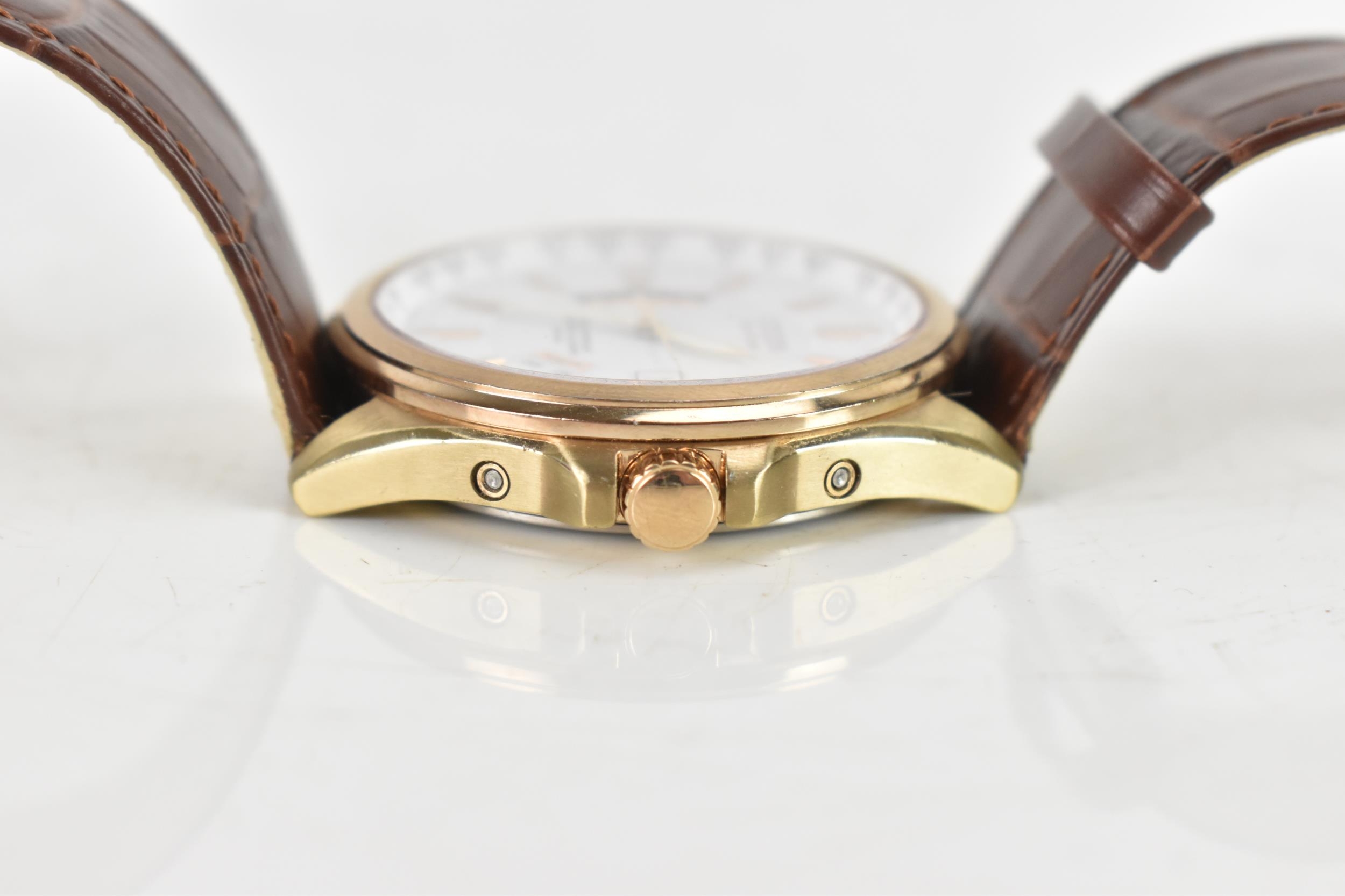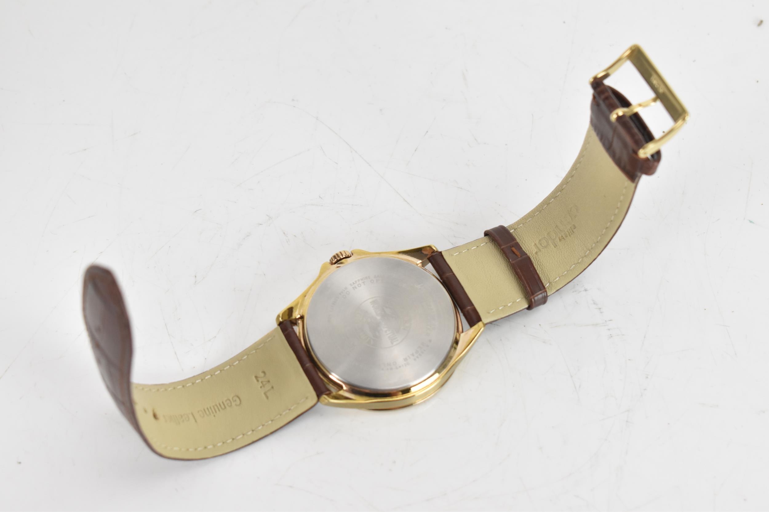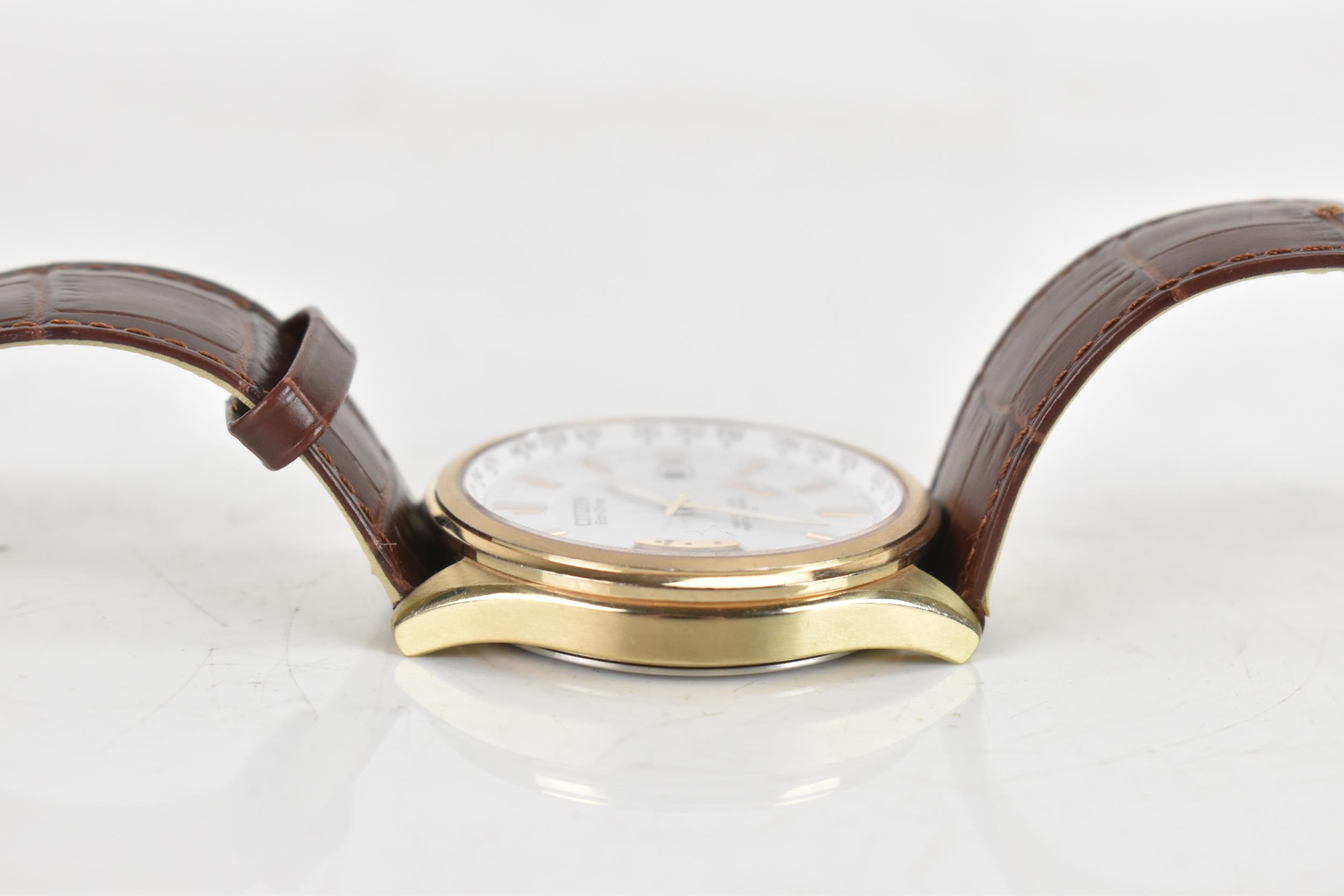 A Citizen Eco-Drive Radio Controlled Perpetual Calender WR100, quartz, gents wristwatch, the white dial having a date aperture at 3, synchronised time adjustment in 26 time zones, on a brown leather strap, with original box, 43mm