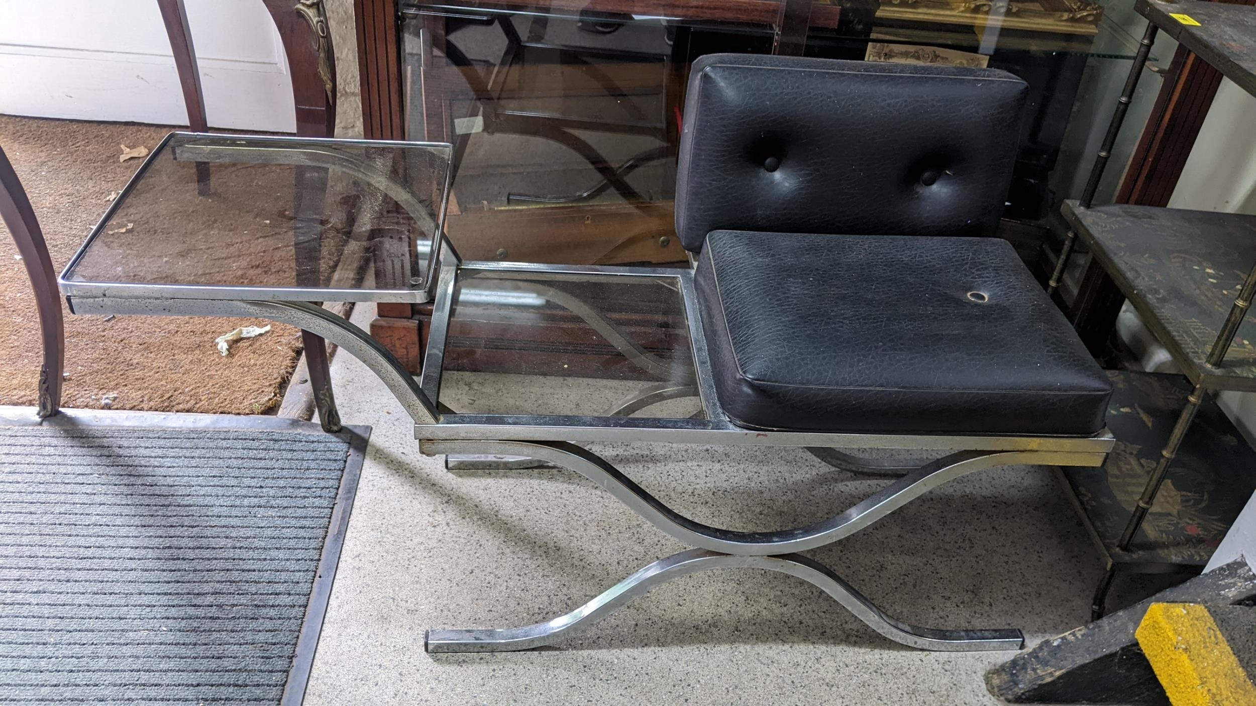 A mid-20th century leather and chrome telephone table 58cm h x 102cm w Location:GL