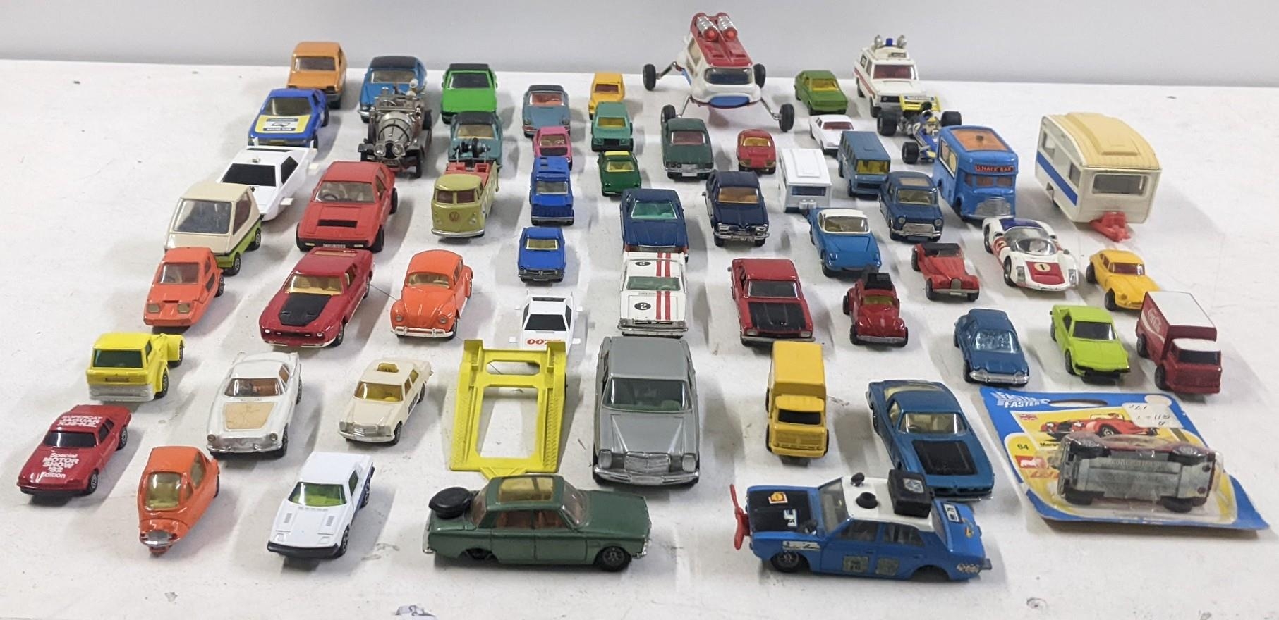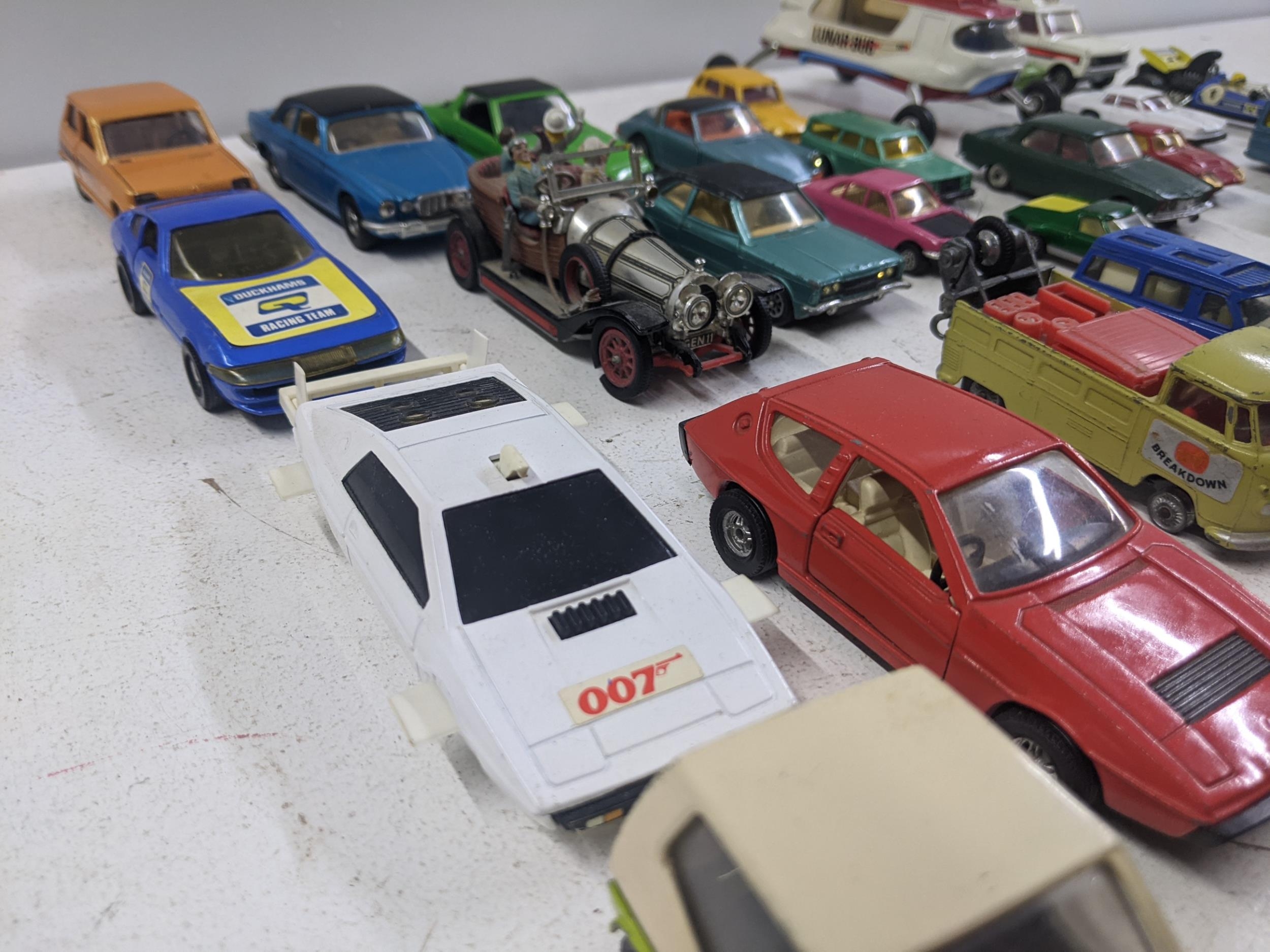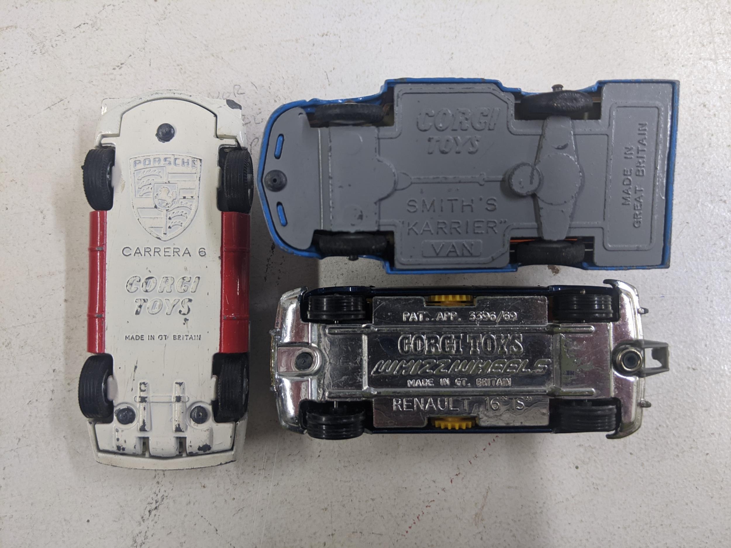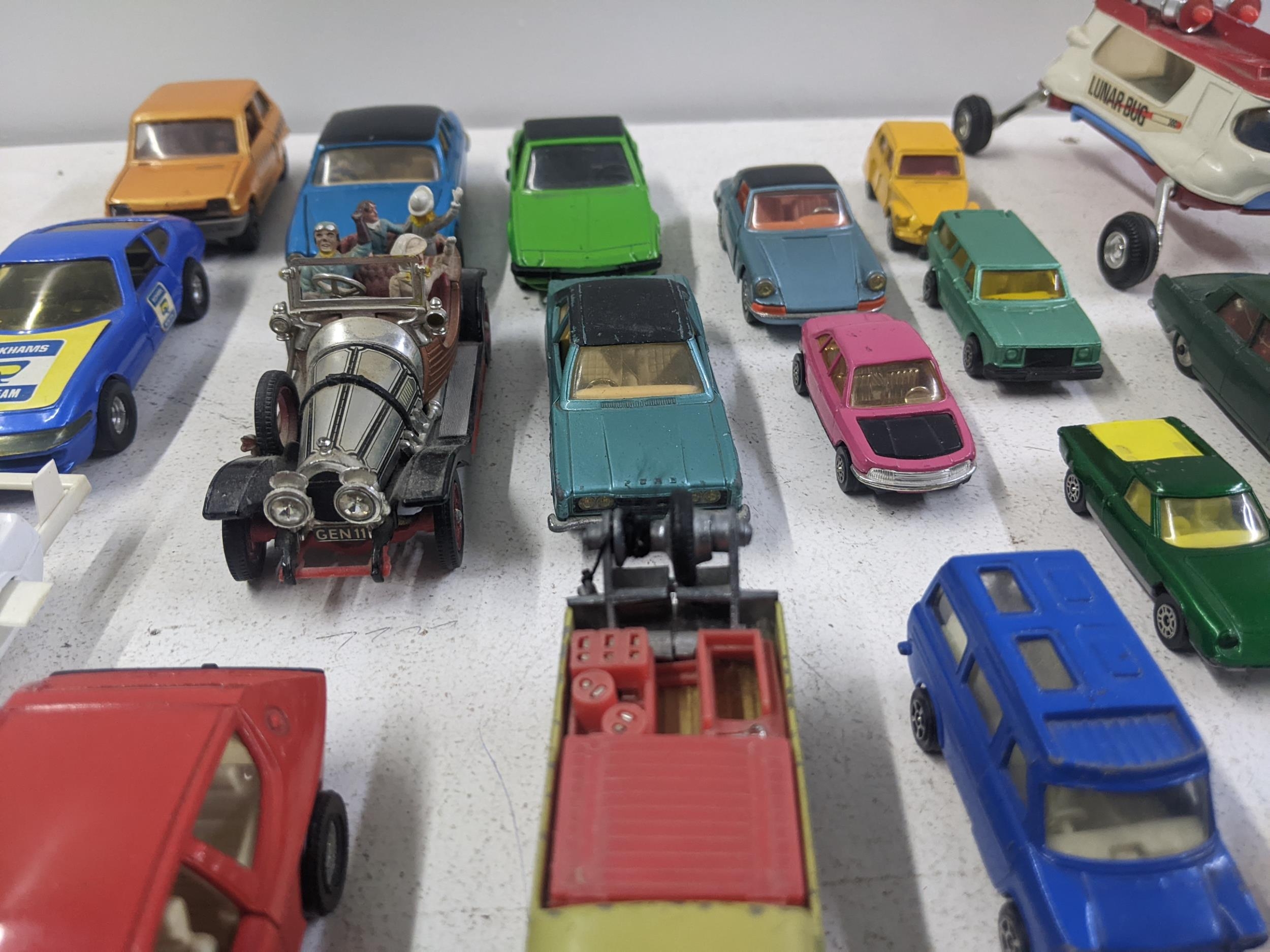 A collection of Corgi model vehicles to include a Lunar Buggy, a Smith's Karrier van, a Ferrari Daytona, a Mercedes Benz 240D and other models