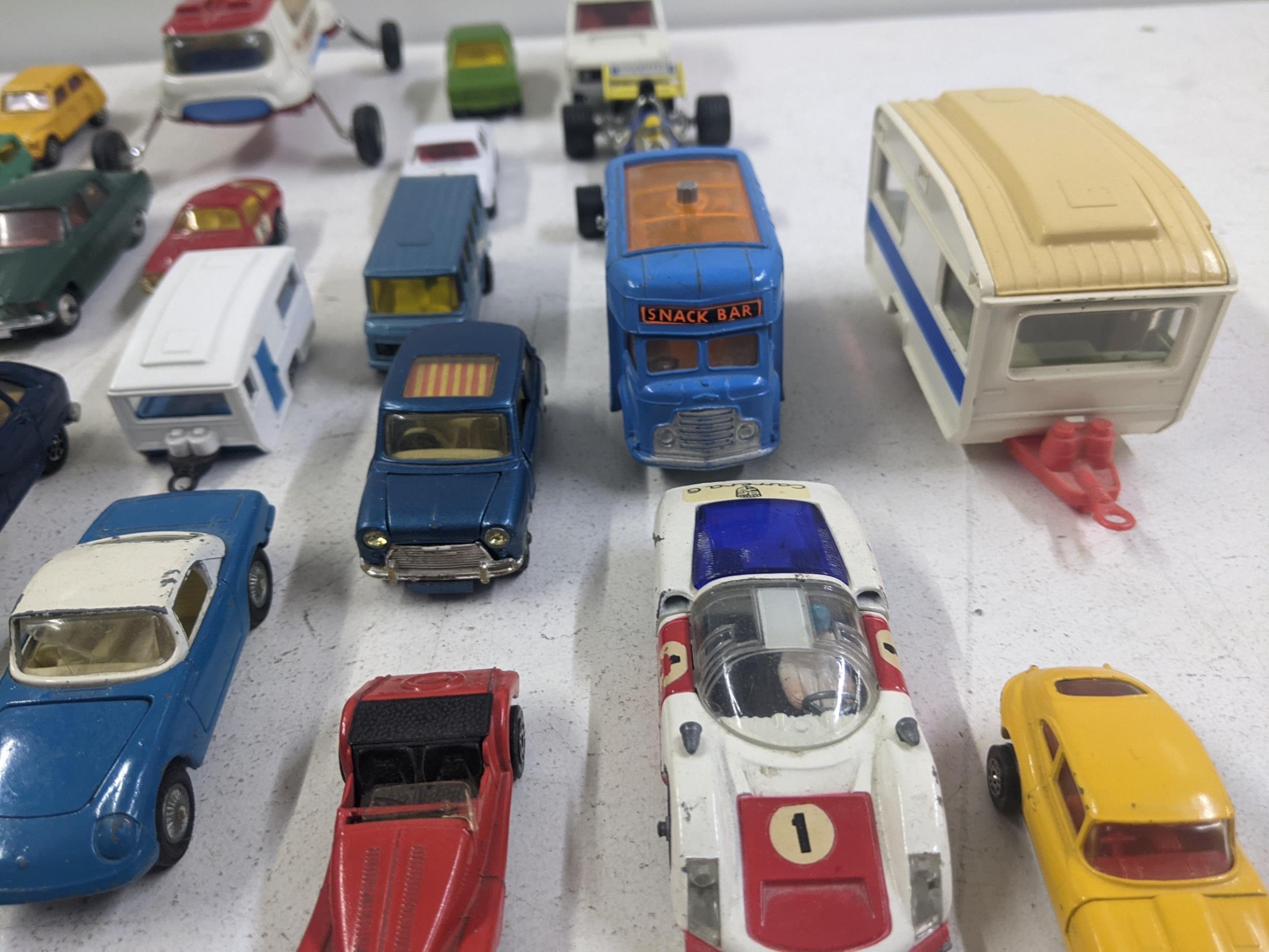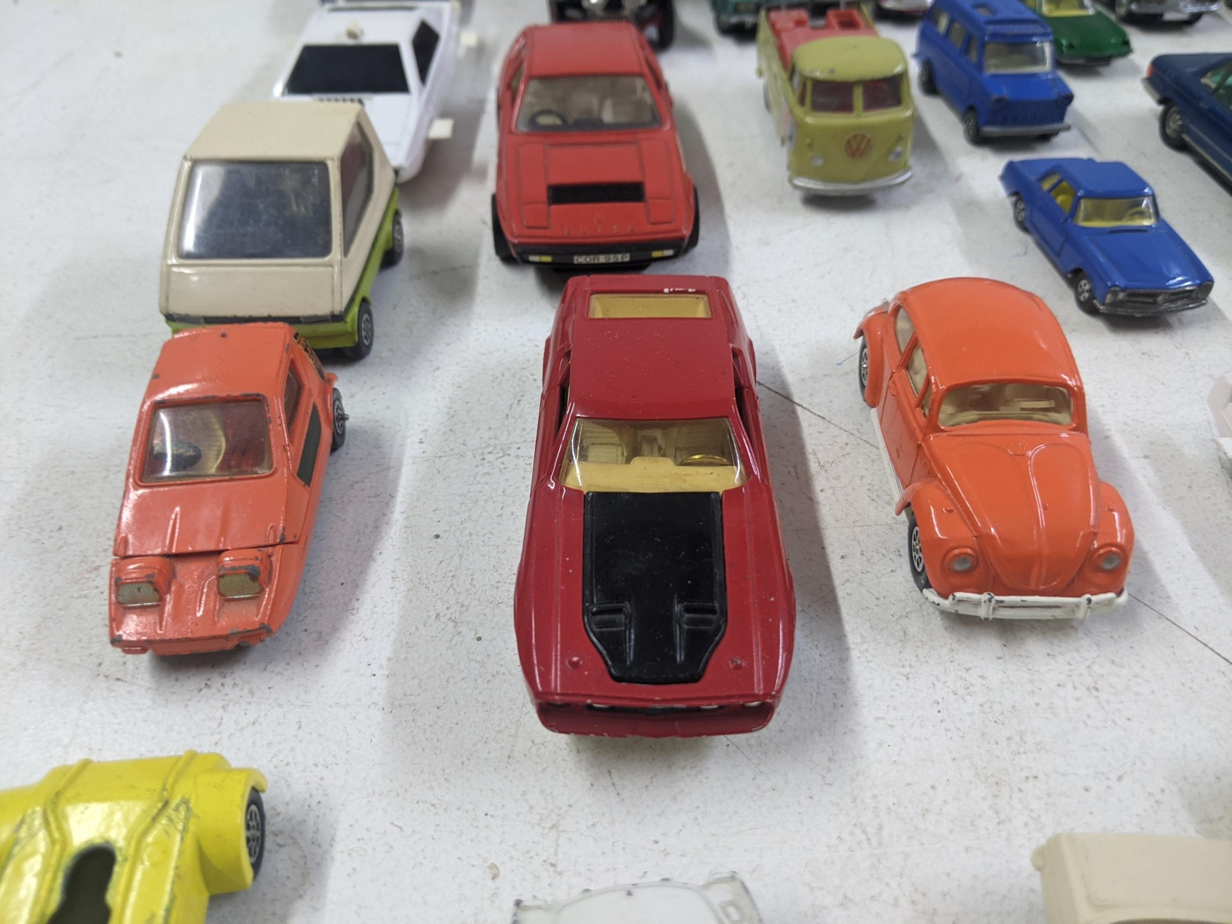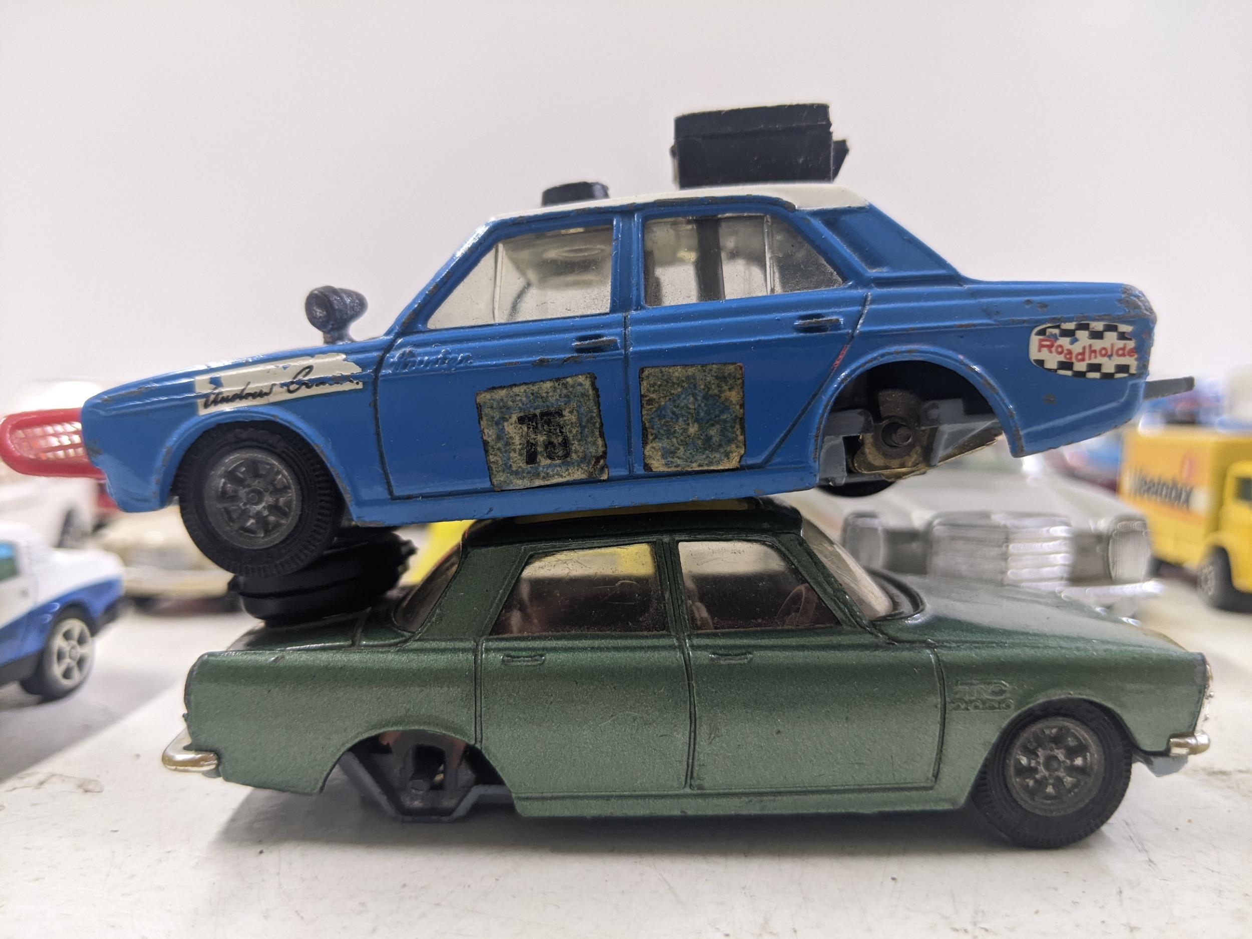 A collection of Corgi model vehicles to include a Lunar Buggy, a Smith's Karrier van, a Ferrari Daytona, a Mercedes Benz 240D and other models