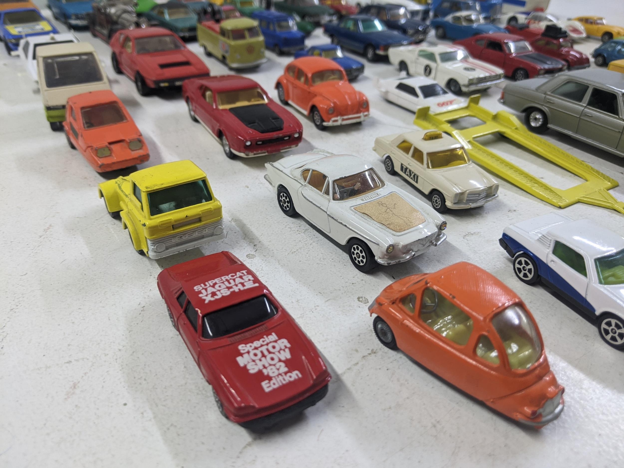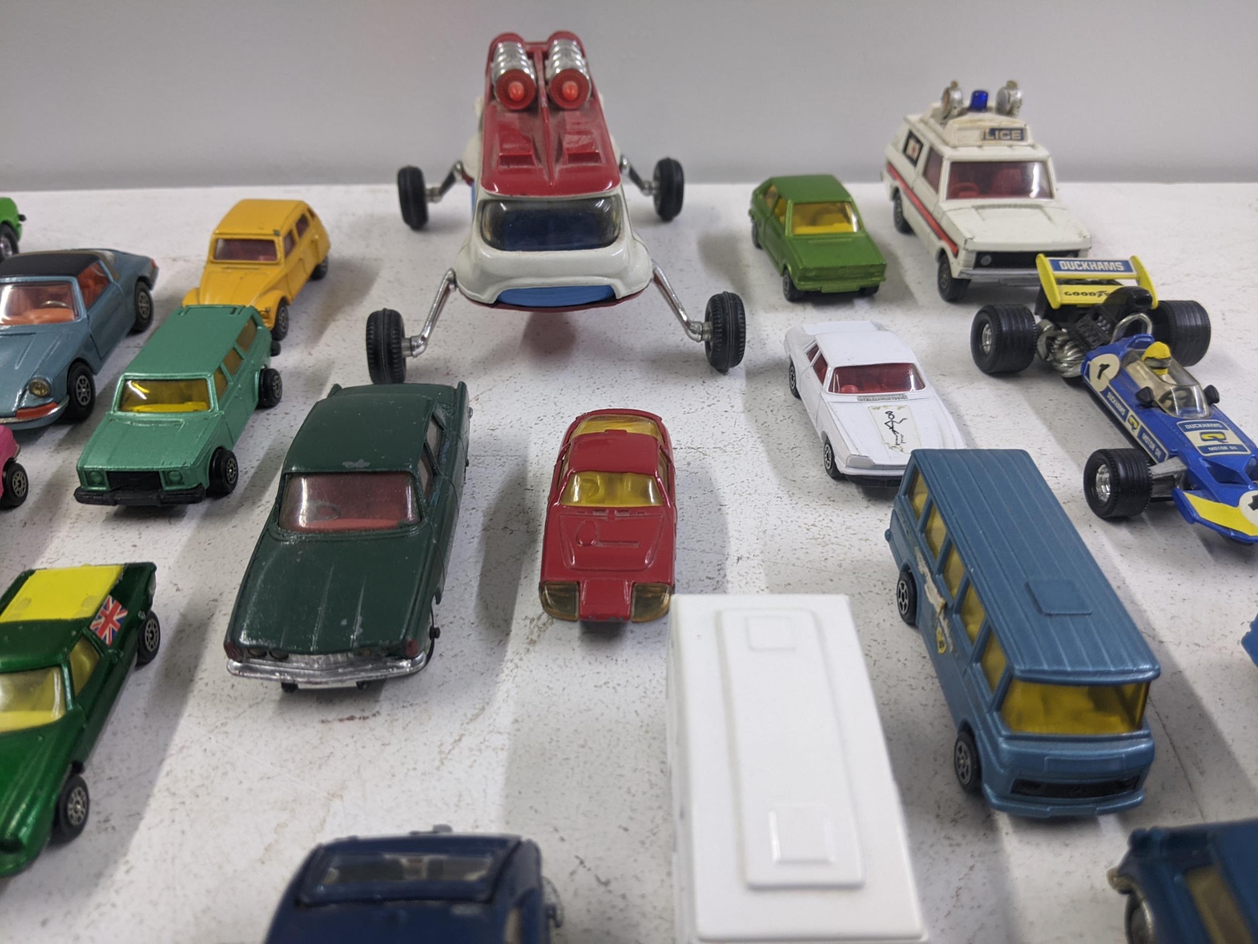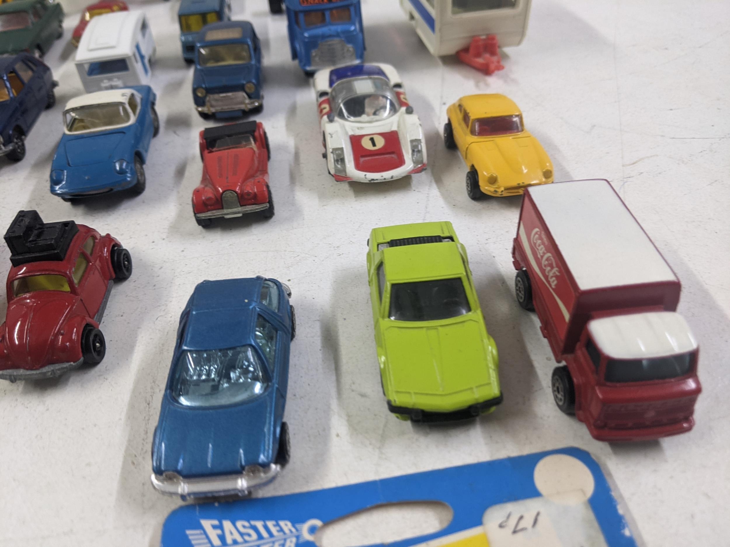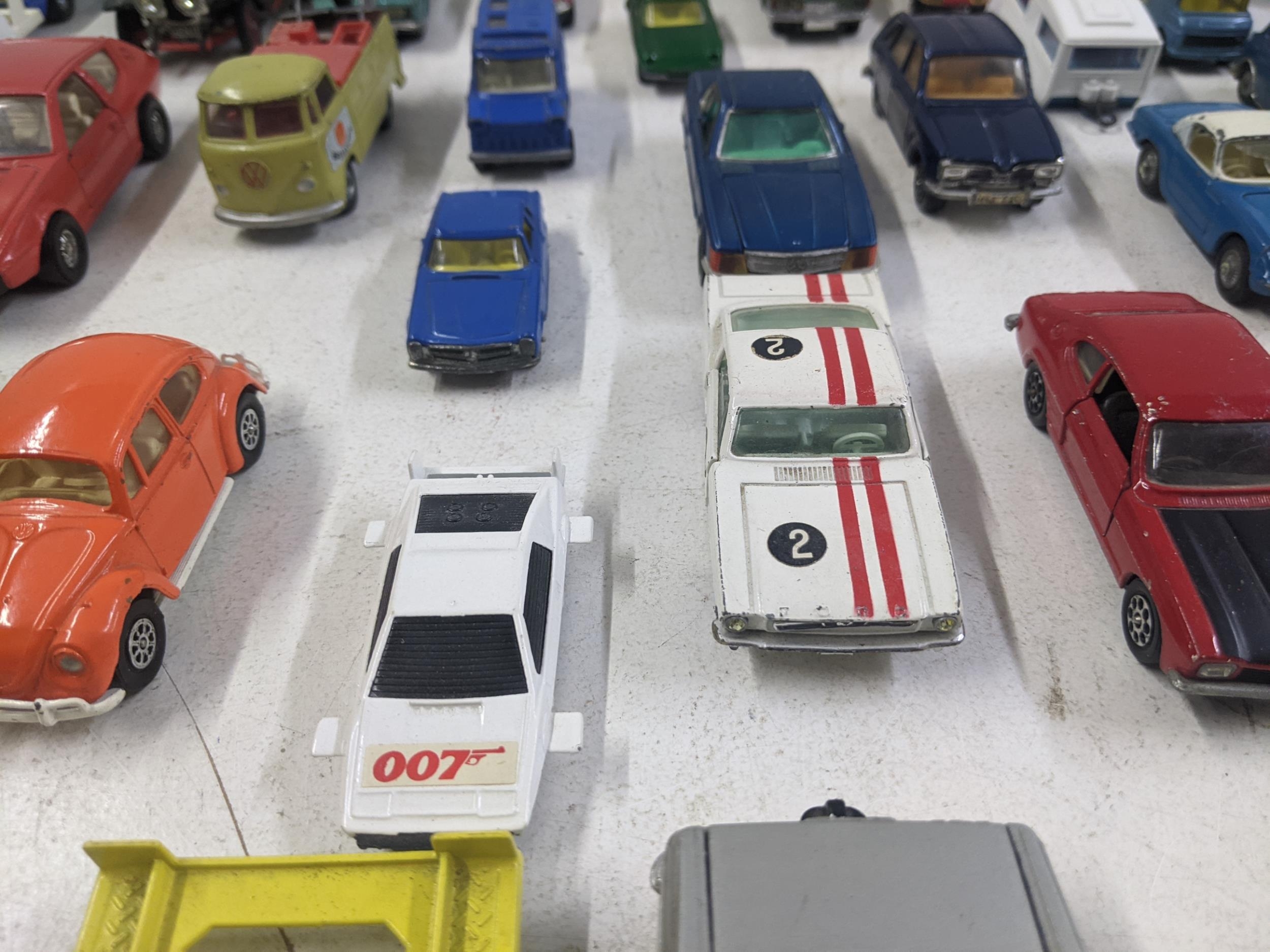 A collection of Corgi model vehicles to include a Lunar Buggy, a Smith's Karrier van, a Ferrari Daytona, a Mercedes Benz 240D and other models