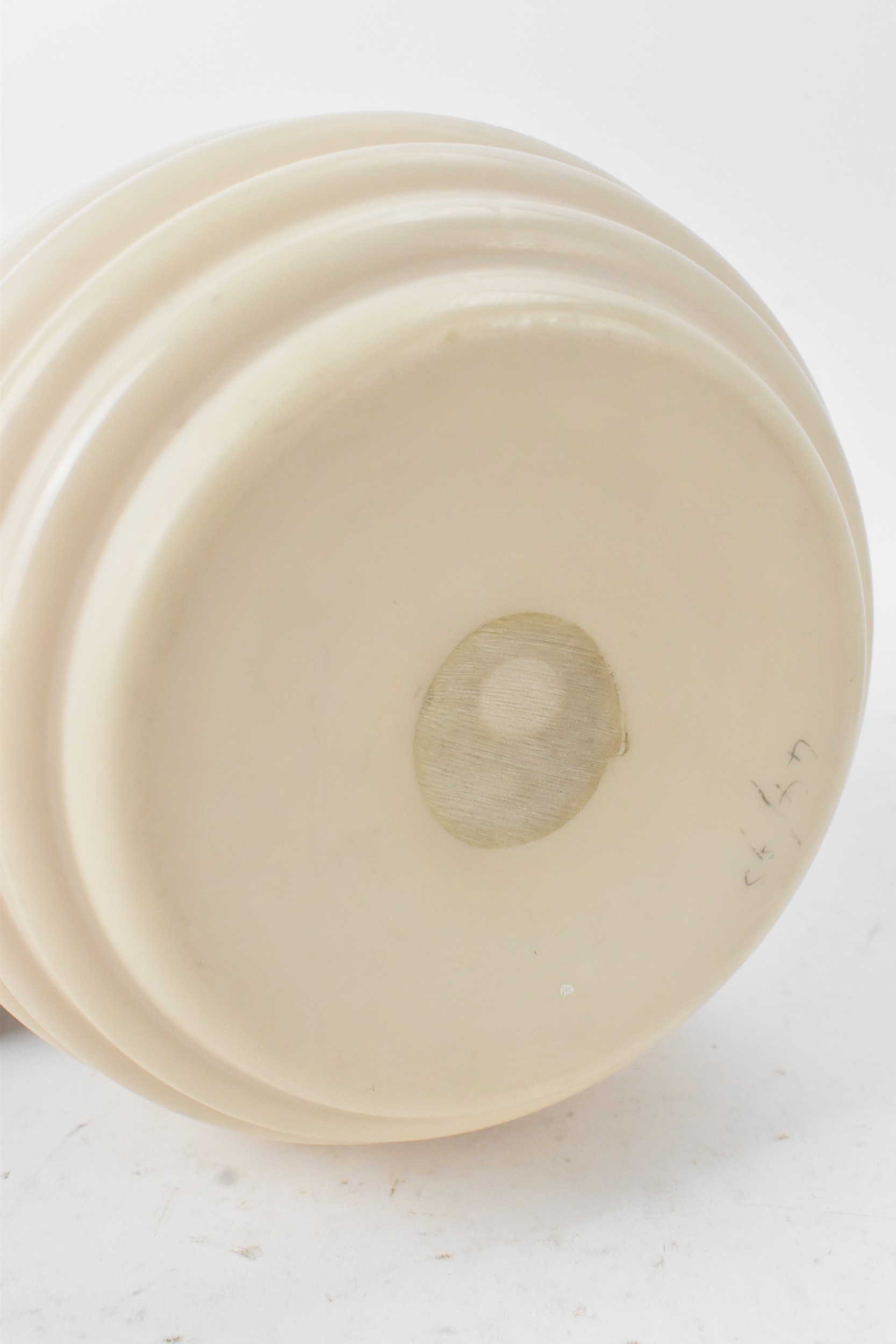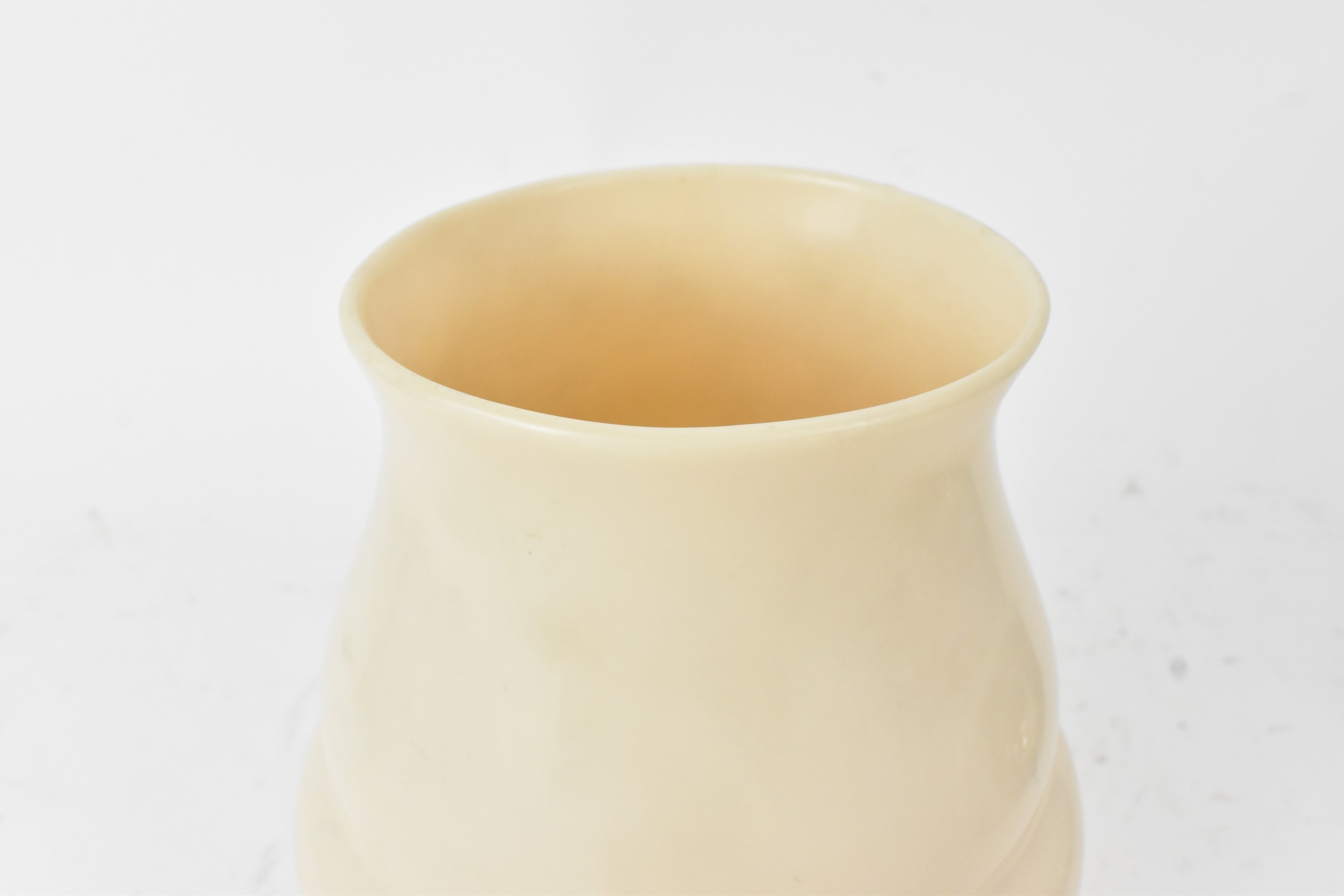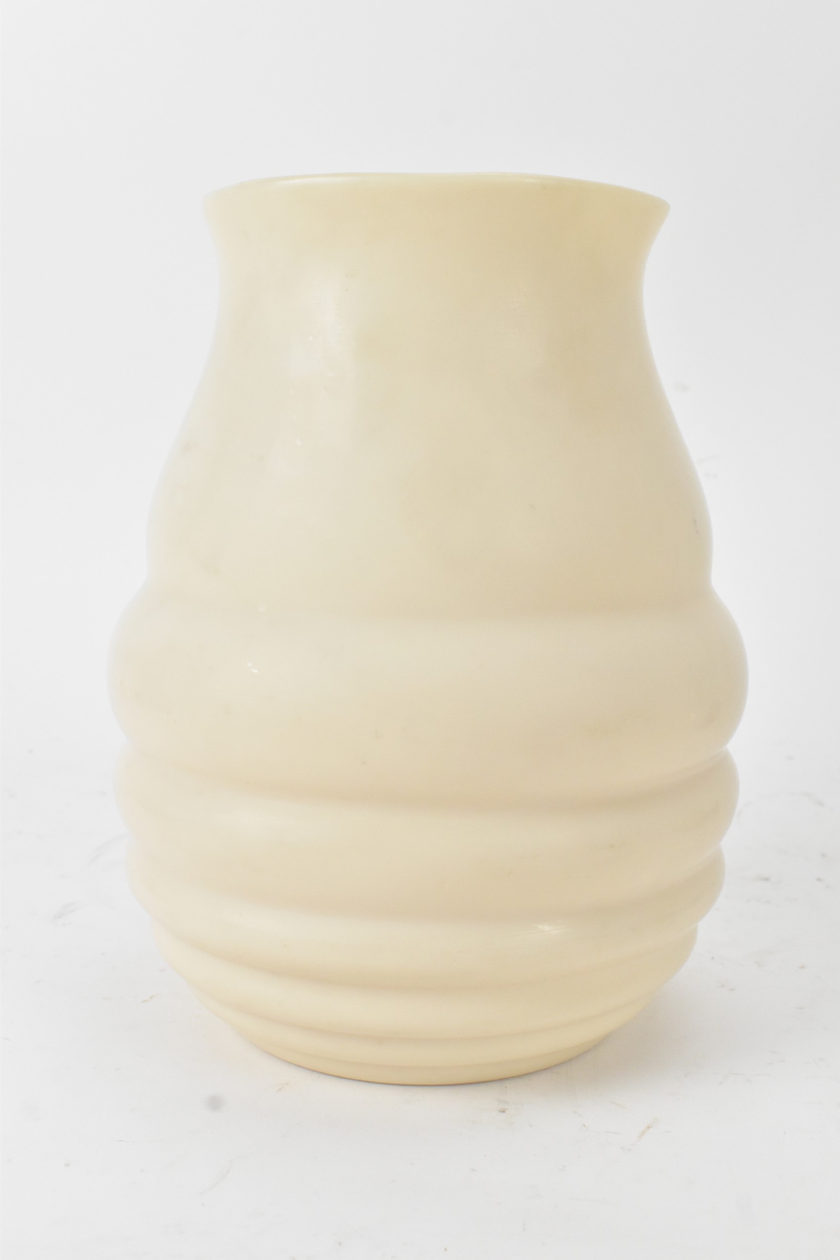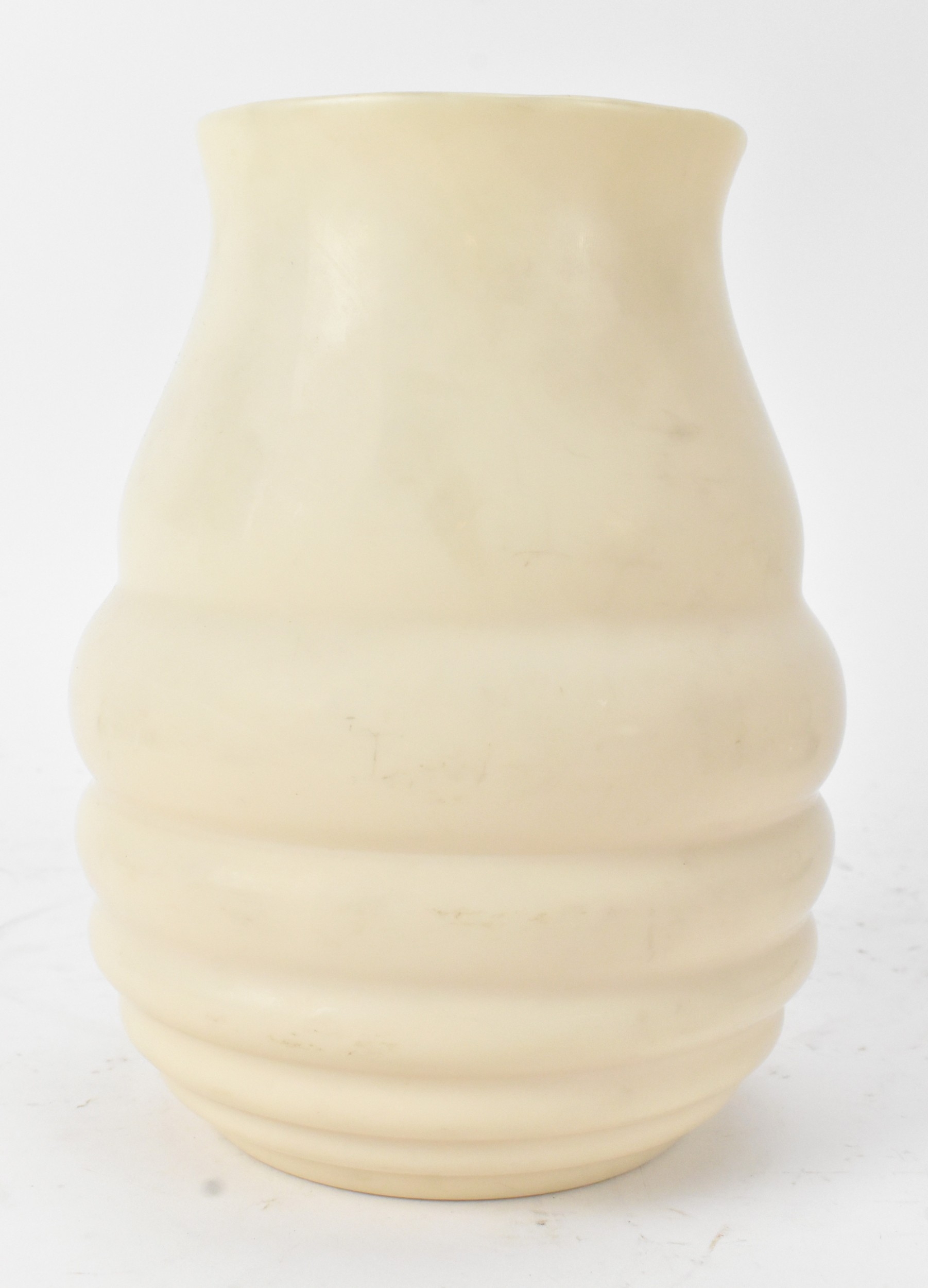 An Art Deco glass vase, of ribbed baluster form with a flared rim, unsigned, 21.5cm high