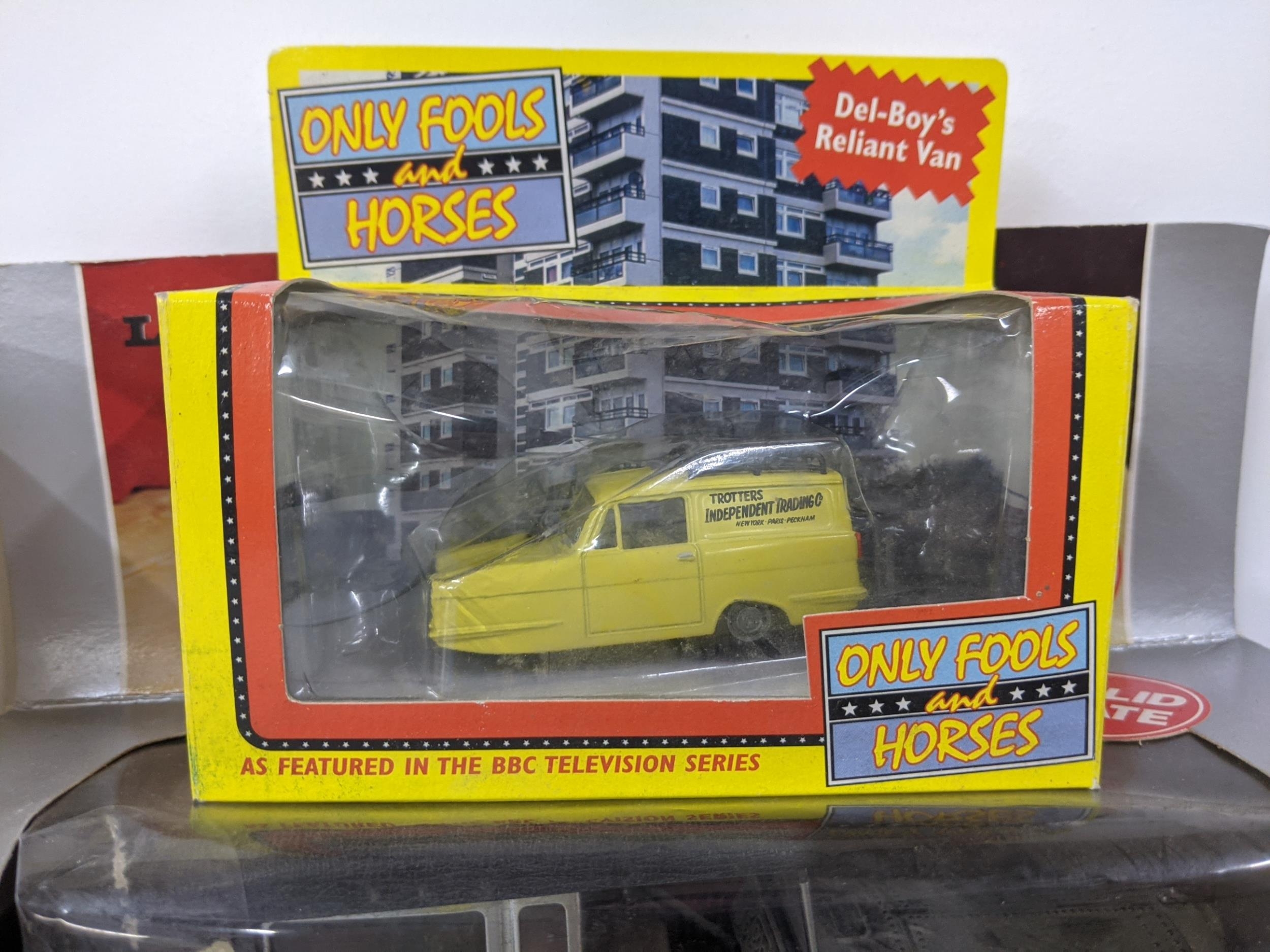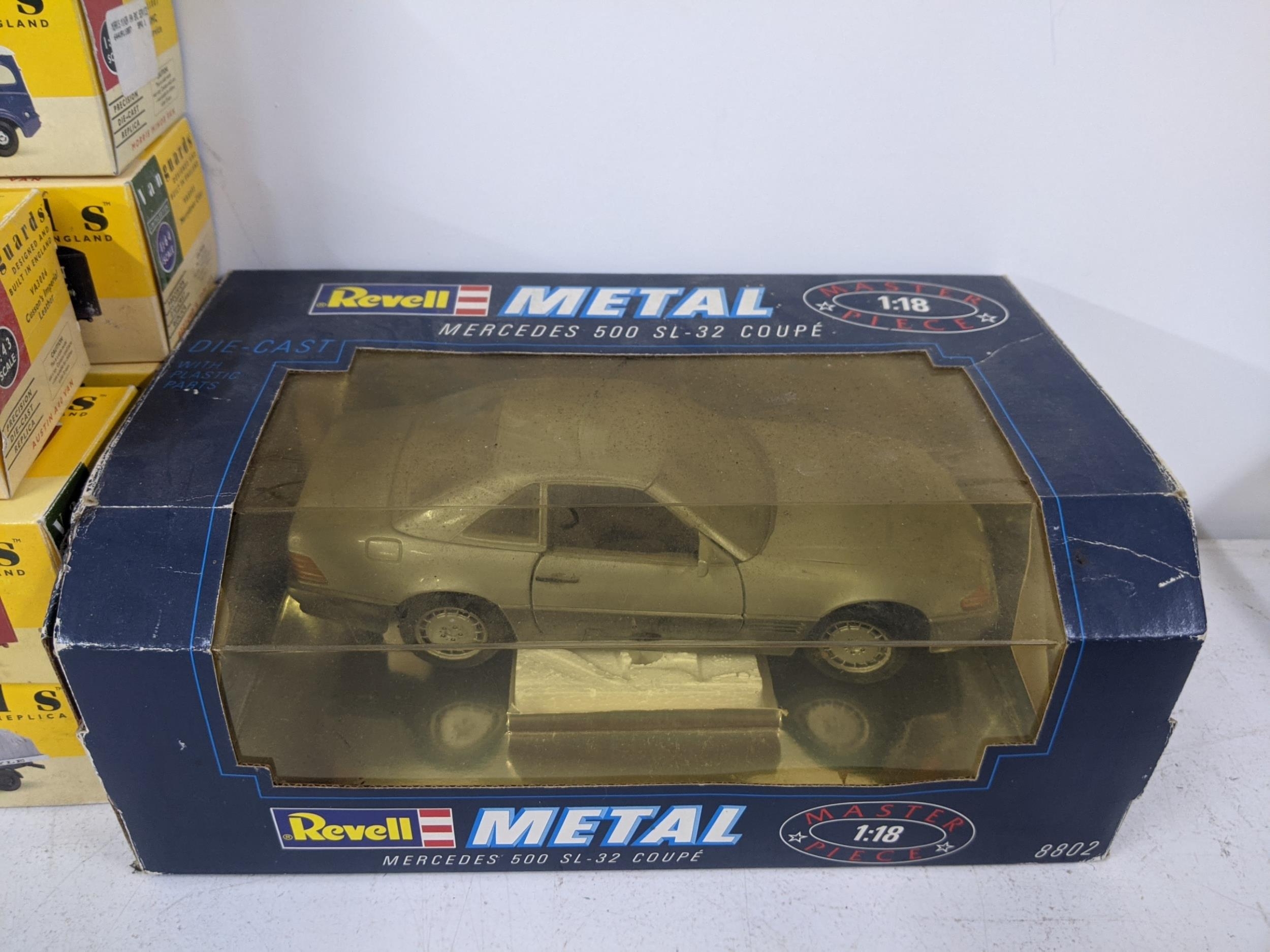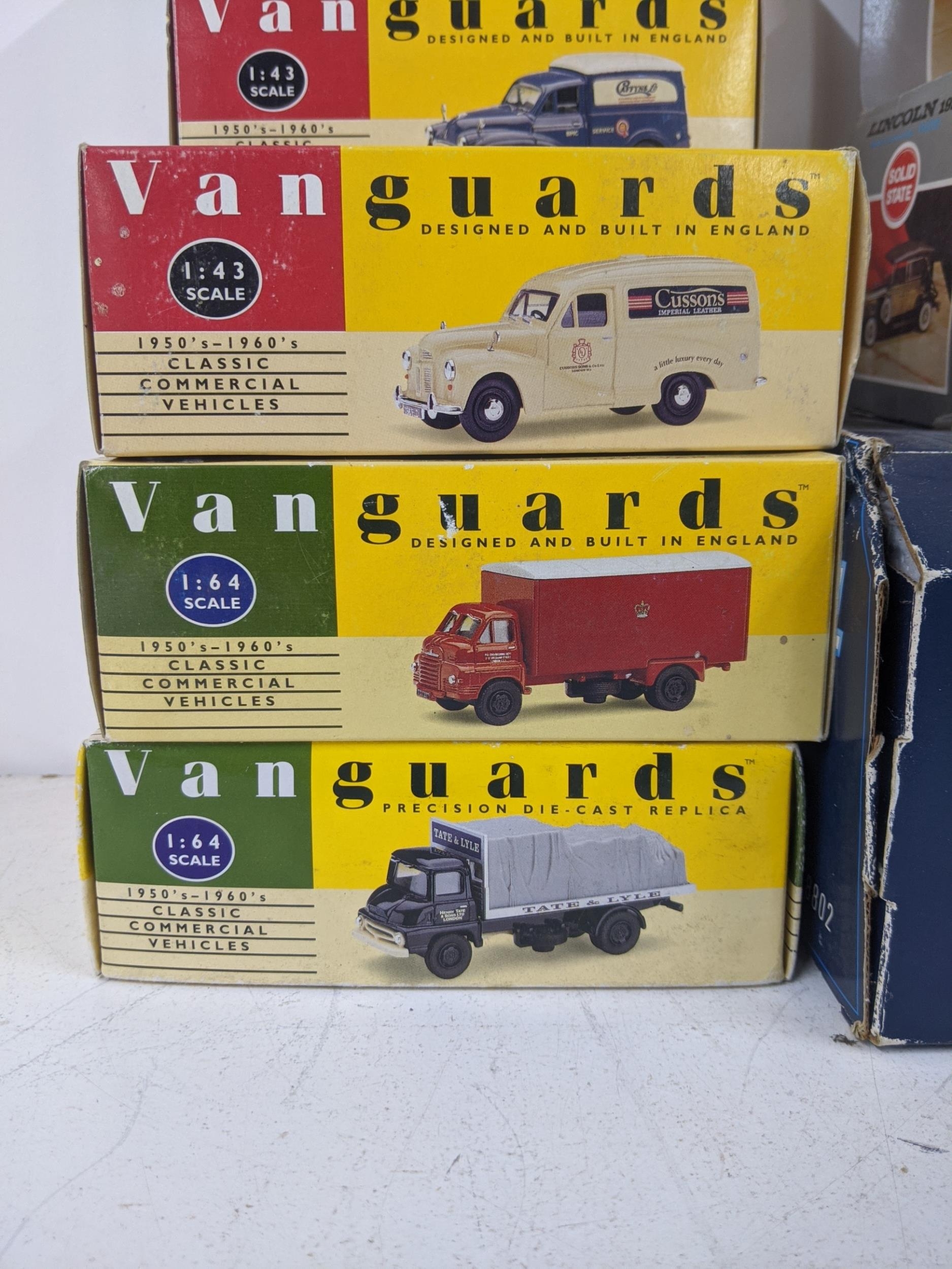 Eight Vanguard boxed models along with a Revell metal model of a Mercedes 500 SL – 32 Coupe 1/18 scale, number 8802, a radio fashioned as a 1928 Lincoln Knight and Del Boy’s Reliant Regal Supervan III as featured in Only Fools & Horses, all boxed