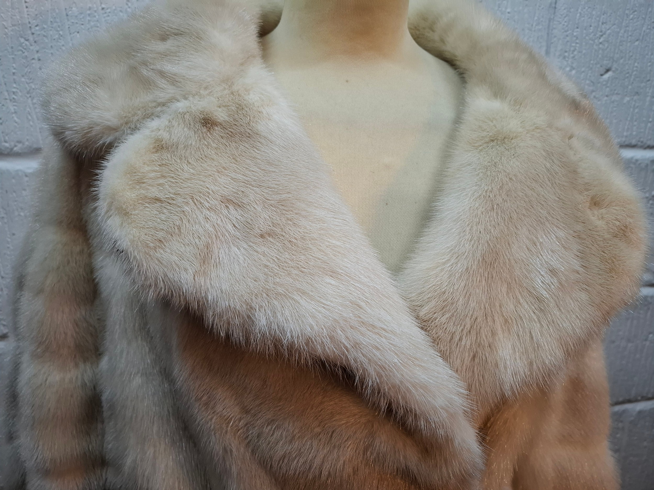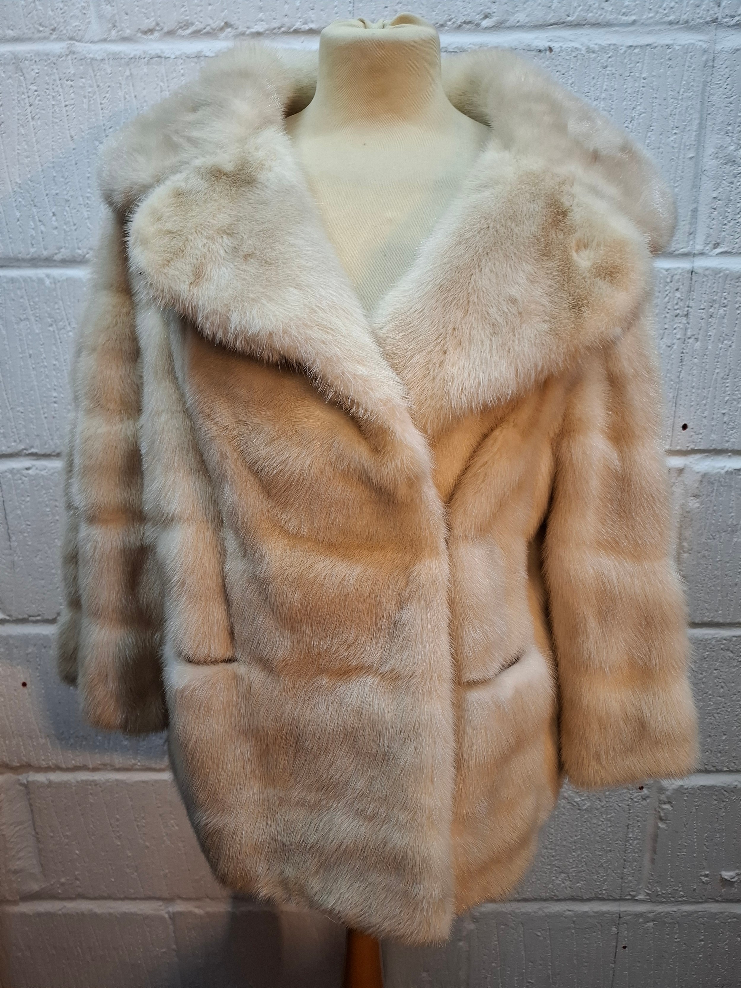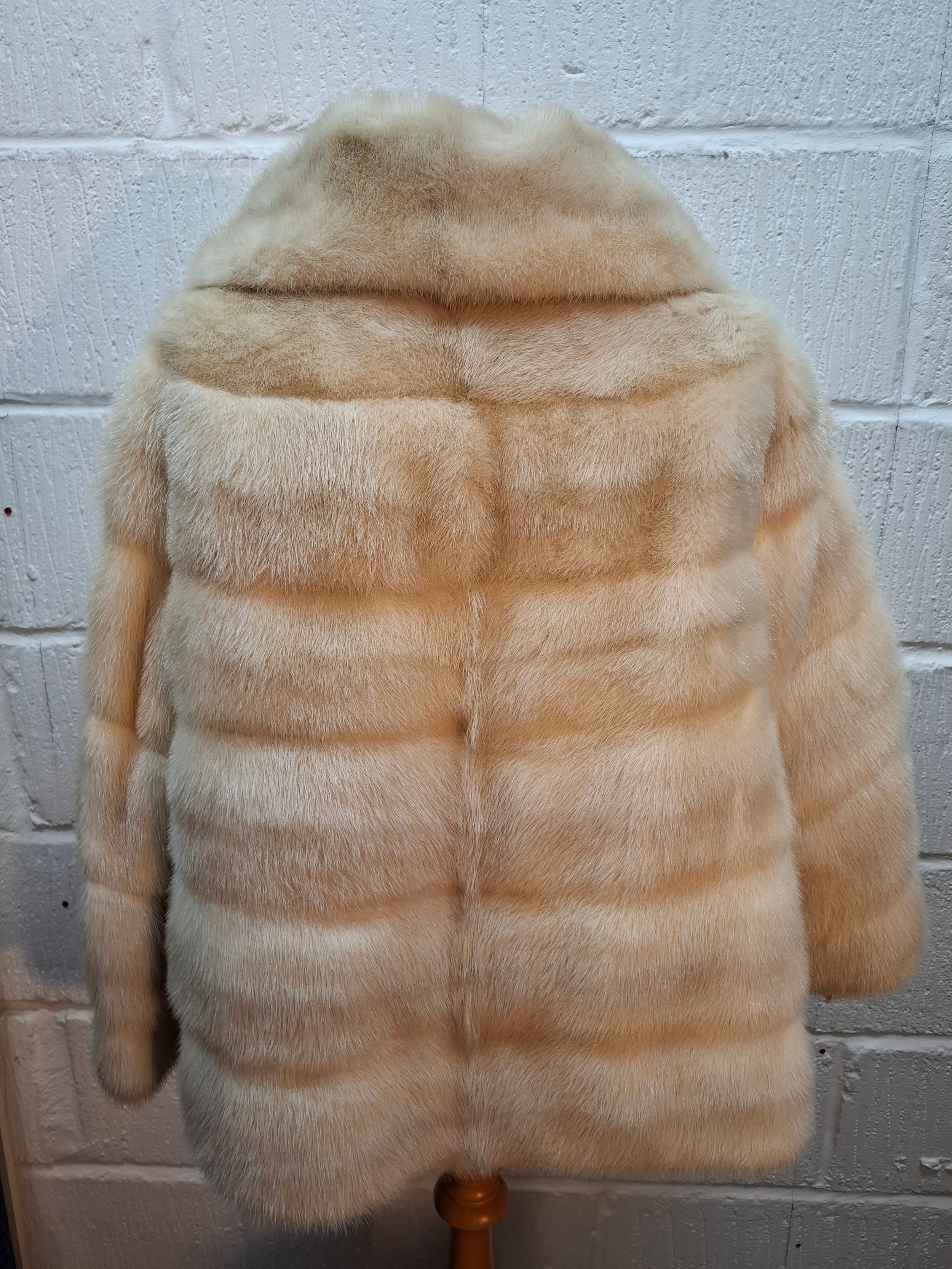 A vintage arctic mink swing jacket with ¾ length flared sleeves, approx 36" chest x 24" long and cream embroidered lining together with an arctic fur collar and cuffs. Location:Rail