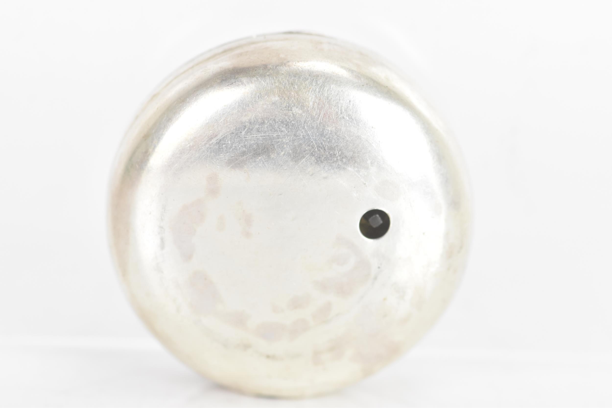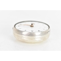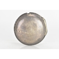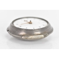 It has a 6cm diameter. It is missing the winder and the glass and the dial is cracked and worn and the back of the case has a small hole and dents.