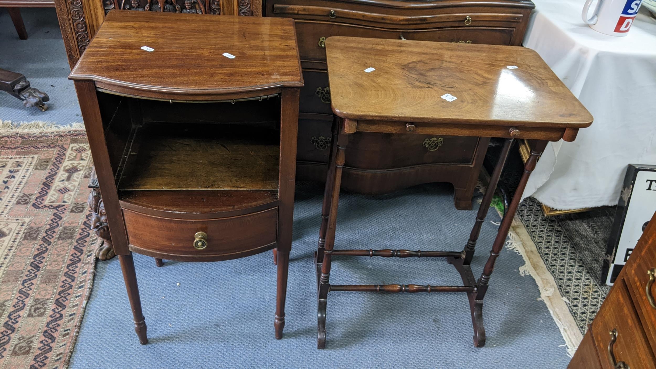 An early 19th century mahogany pot cupboard, together with an early 20th century side table inset with a drawer Location:RWM