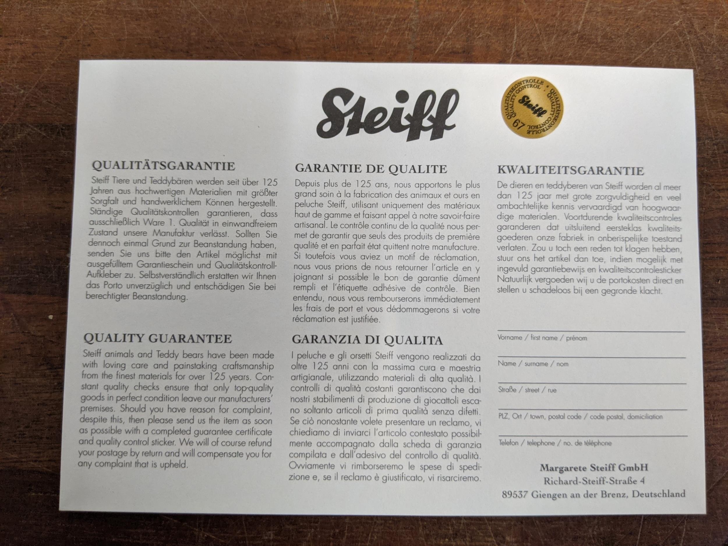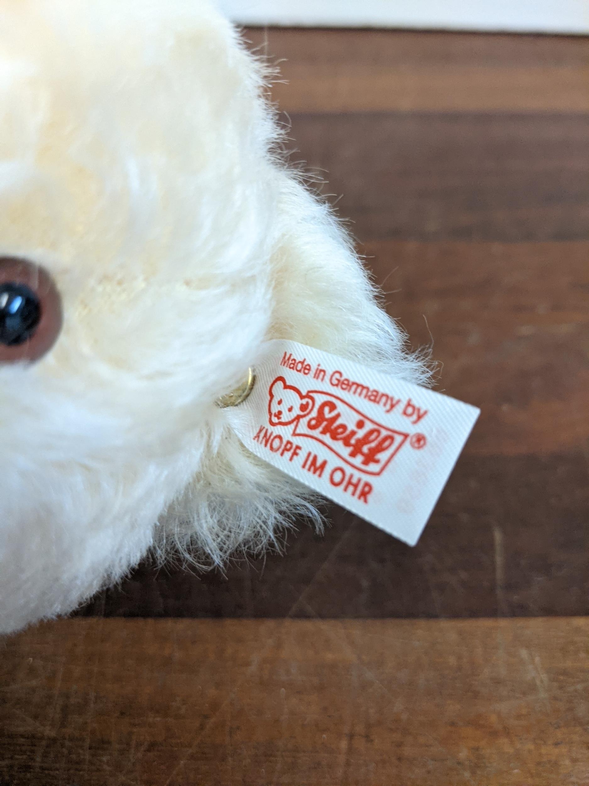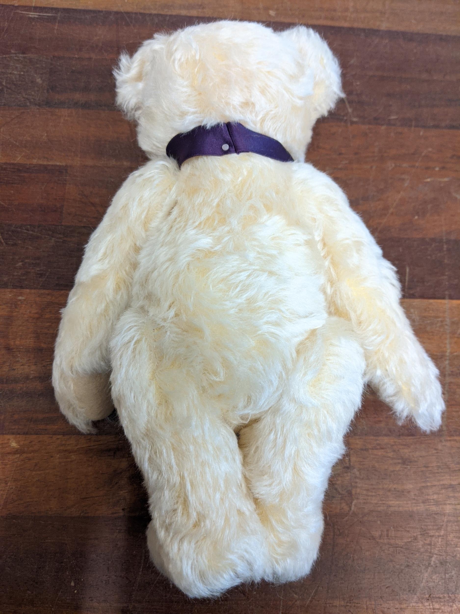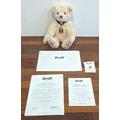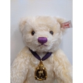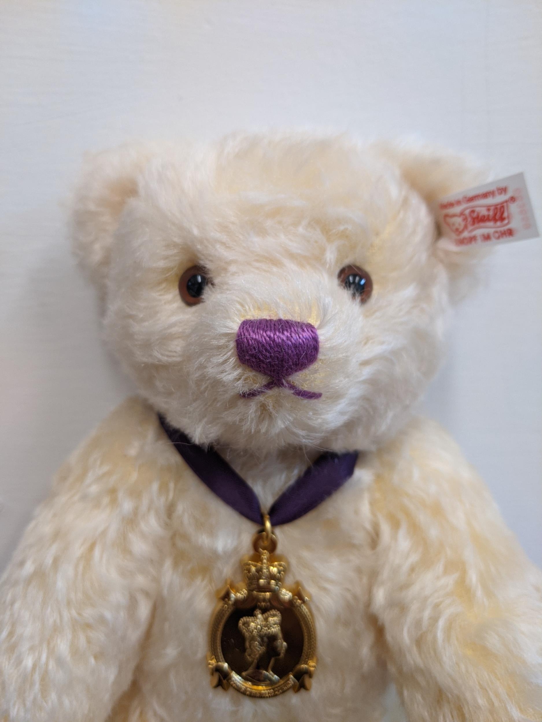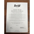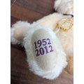 A Steiff Danbury Mint Diamond Jubilee Teddy Bear, with commemorative years on his left foot (1952 – 2012) and ER on the right foot also wearing a Queen Elizabeth pendant (production limited to the year 2012) number 227 with the certificate, booklet and other paperwork