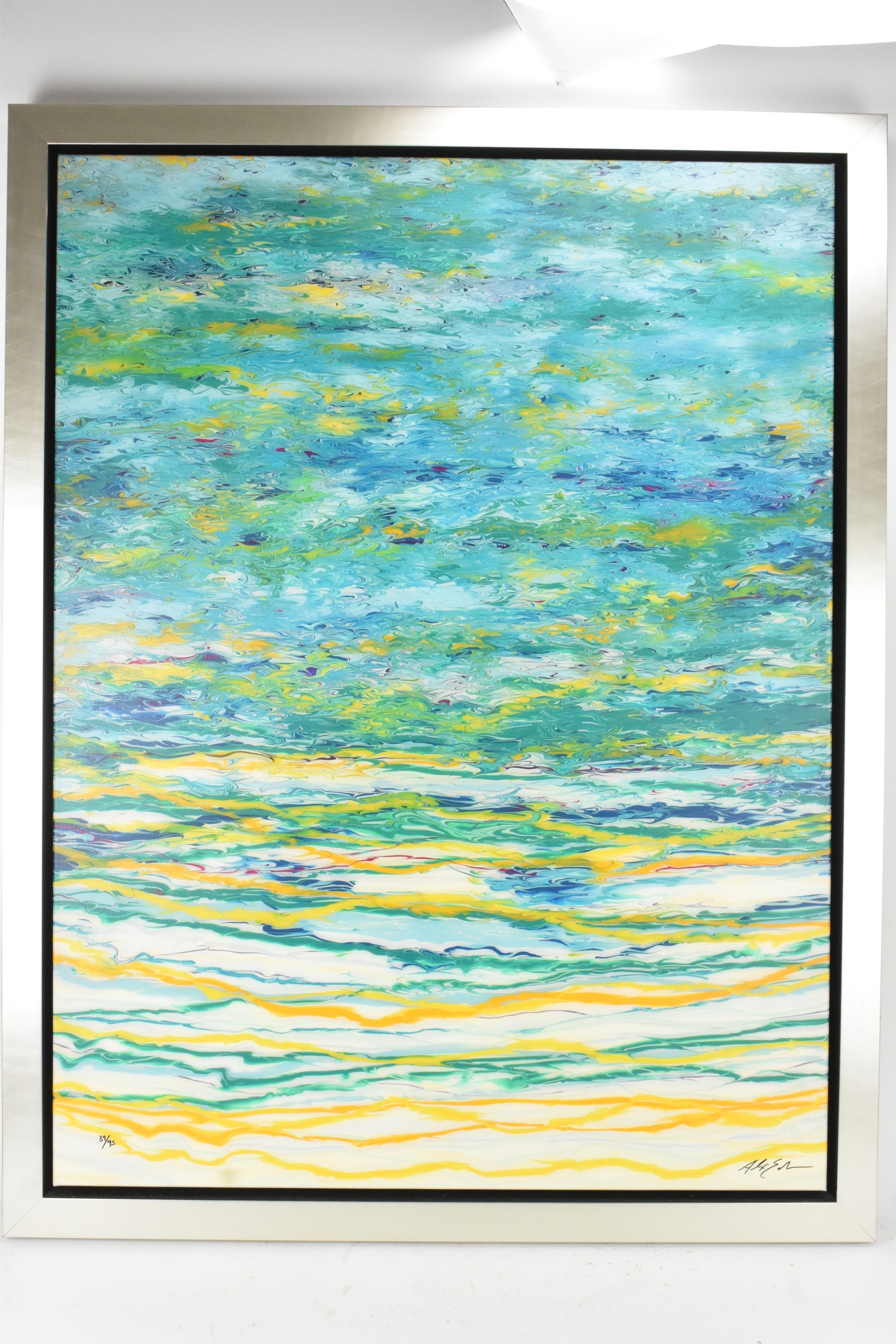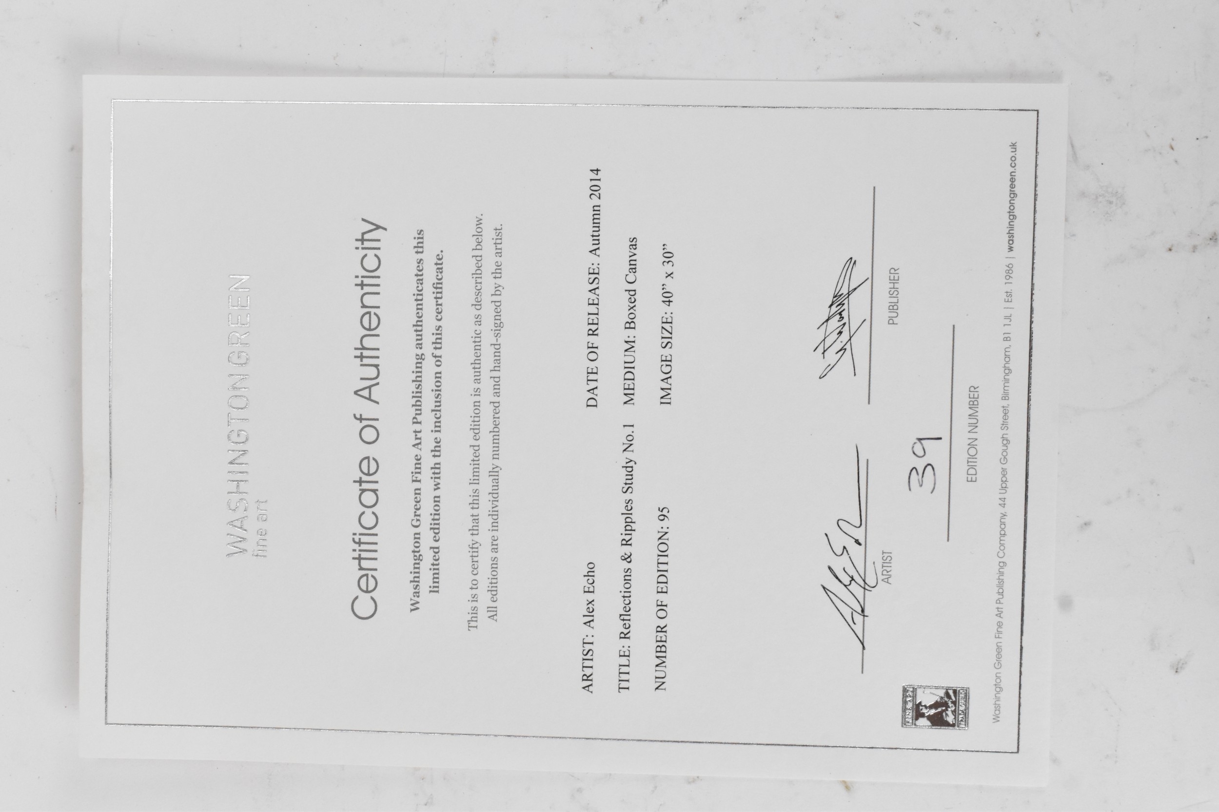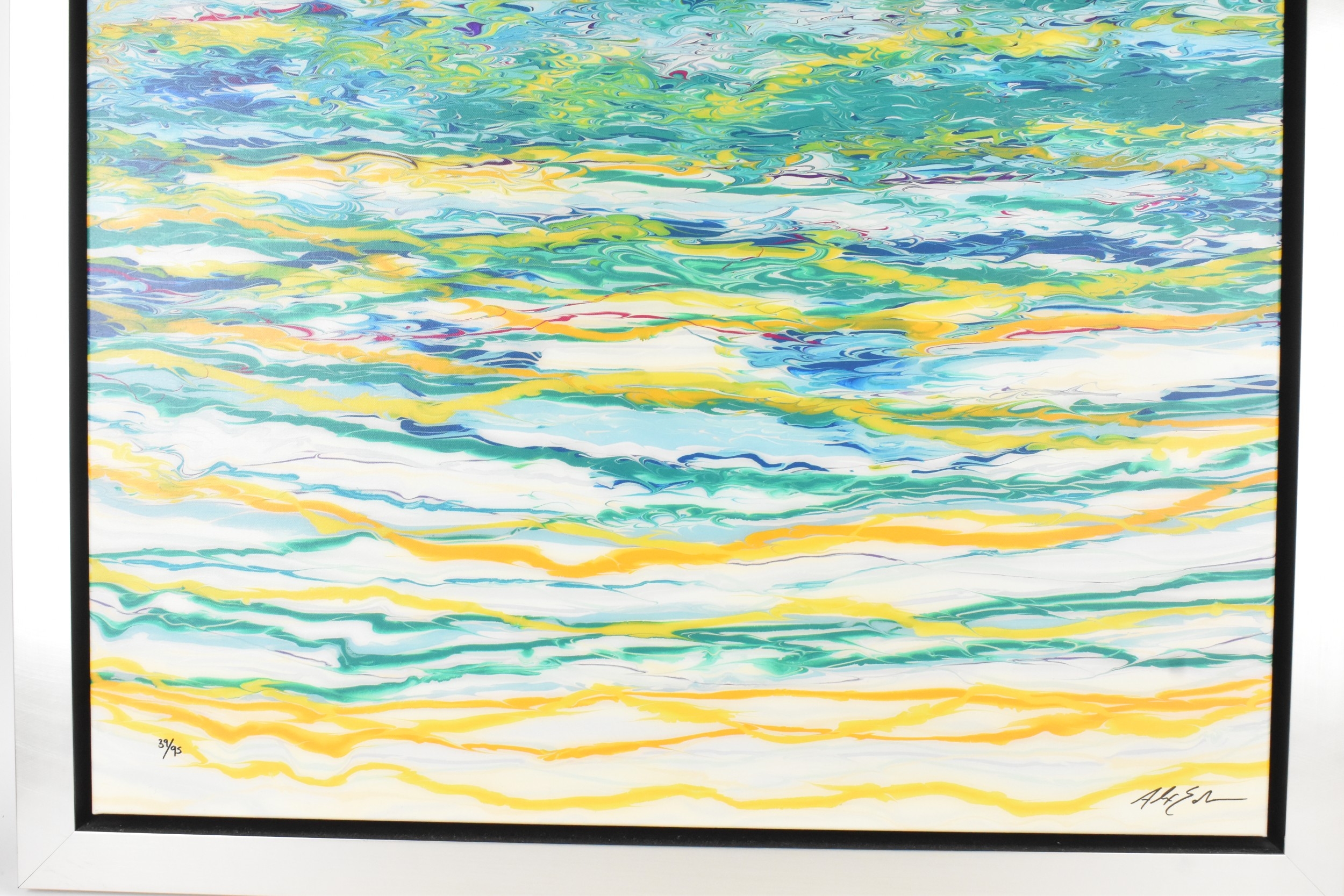 Alex Echo (B.1958) A boxed canvas entitled 'Reflections & Ripples Study No.1', limited edition numbered 39/95, with certificate of authenticity, 76cm x 101.5cm, framed