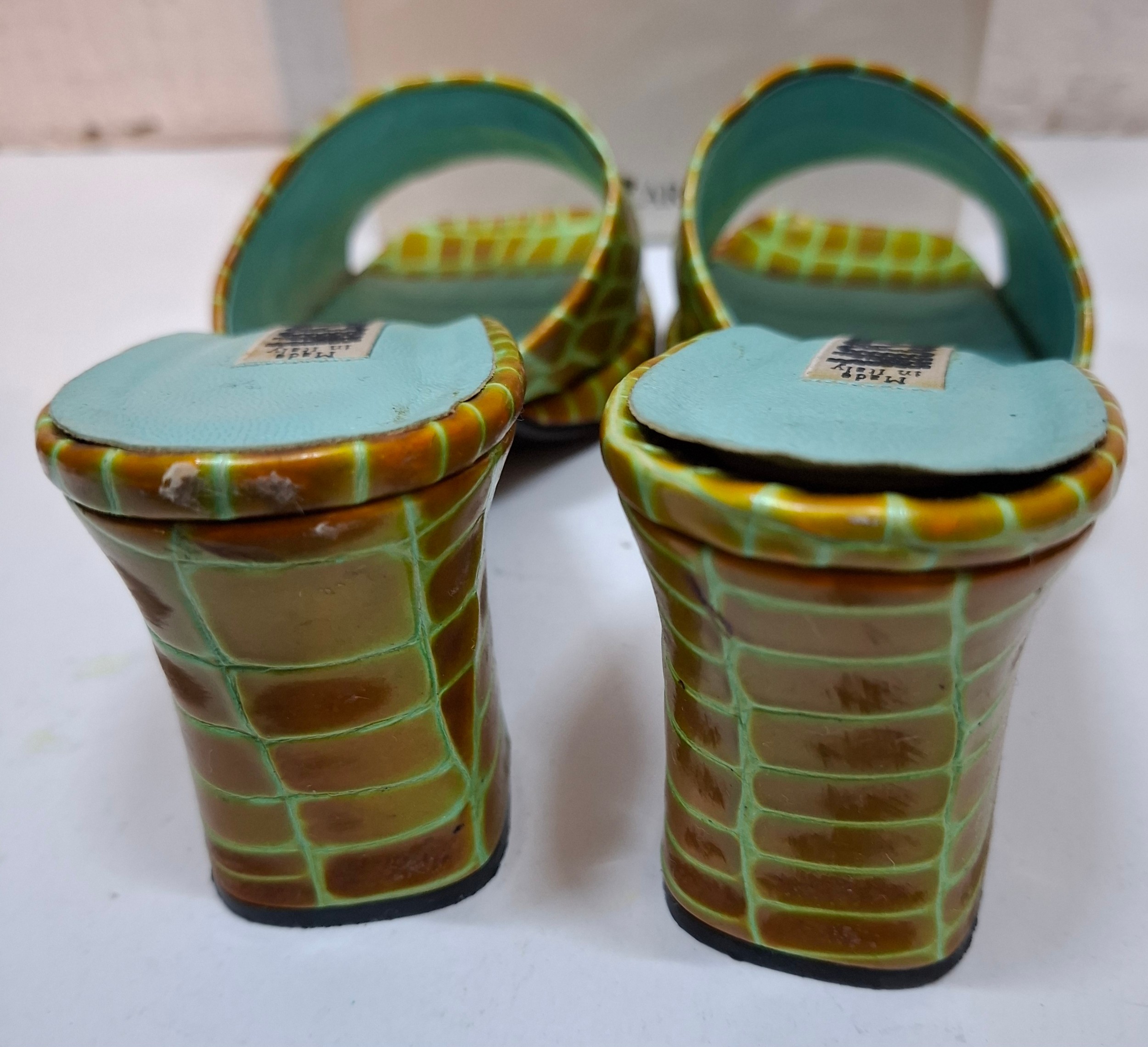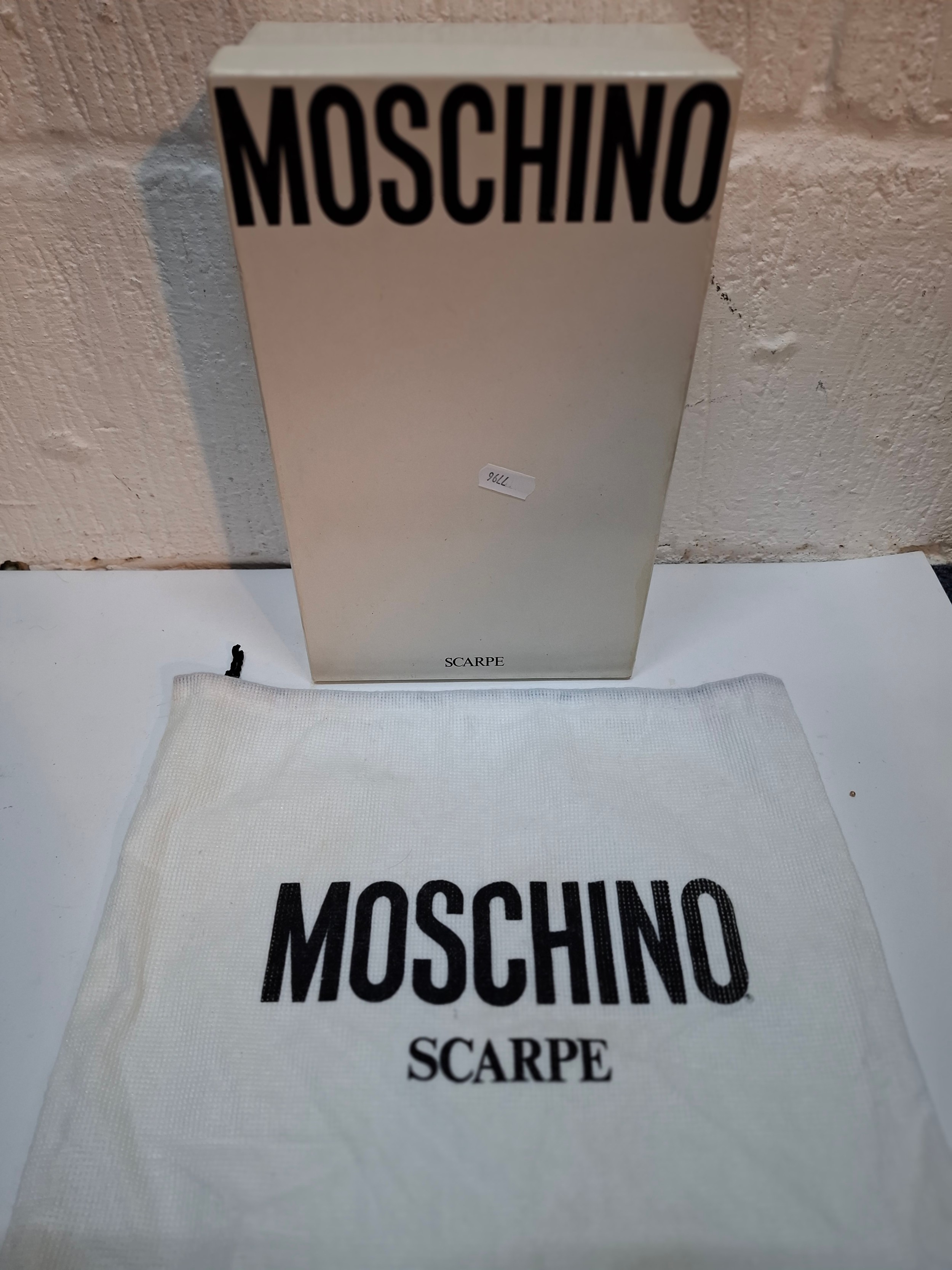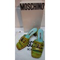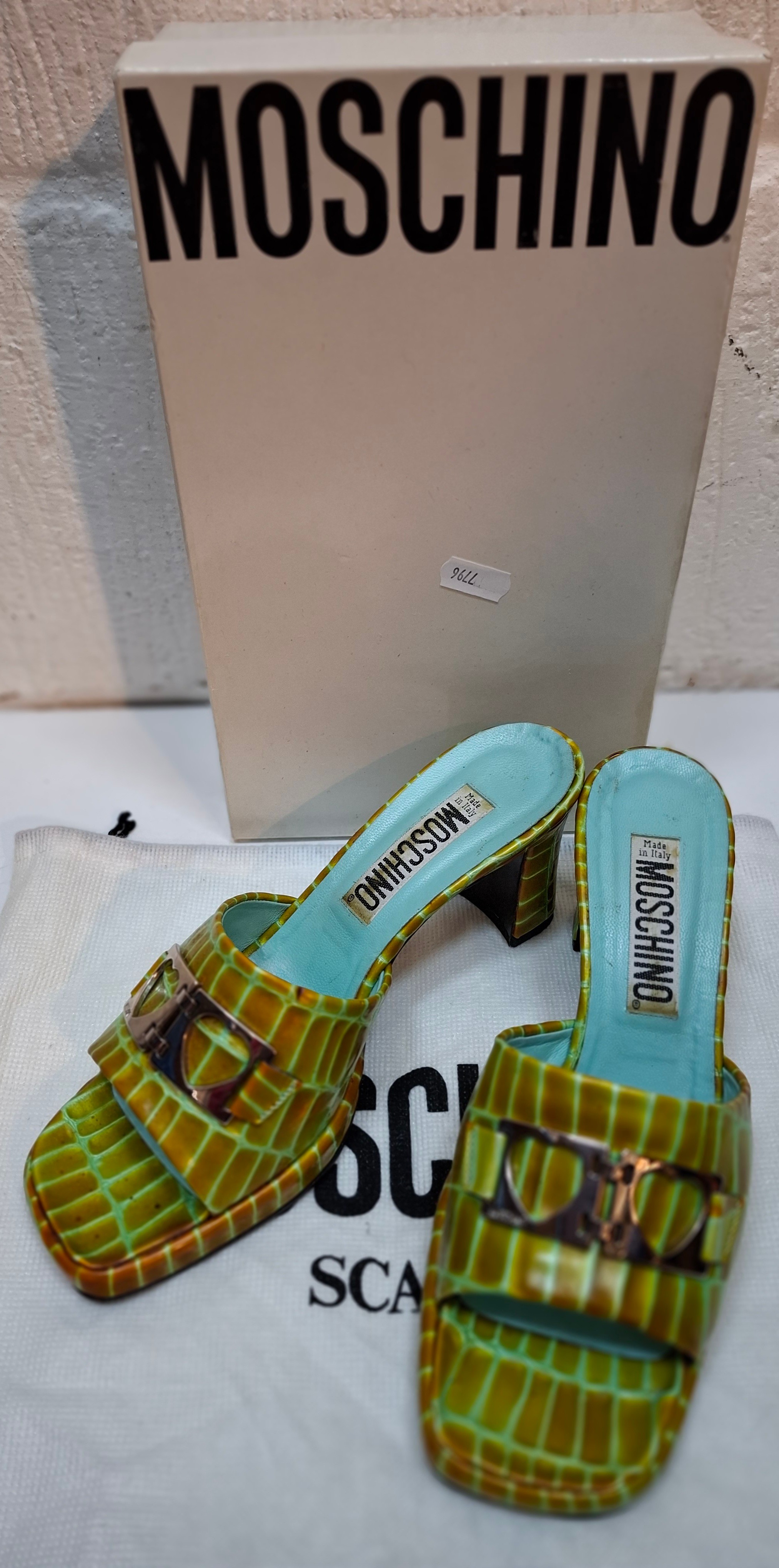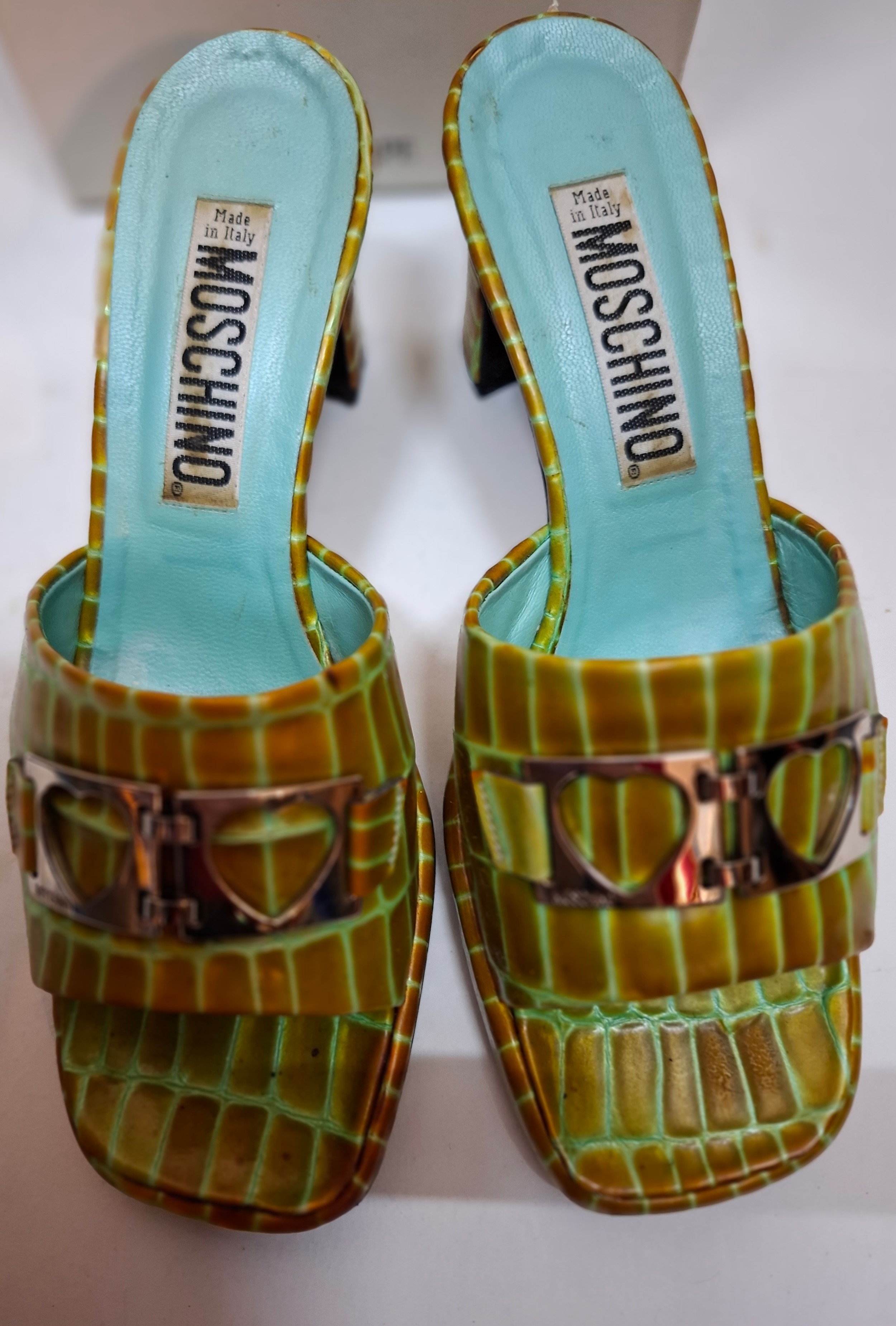 Moschino-A pair of Jenner Coco Turchese peep toe heeled sandals, European size 37 with branded shoe bag and box. Location:R2.4