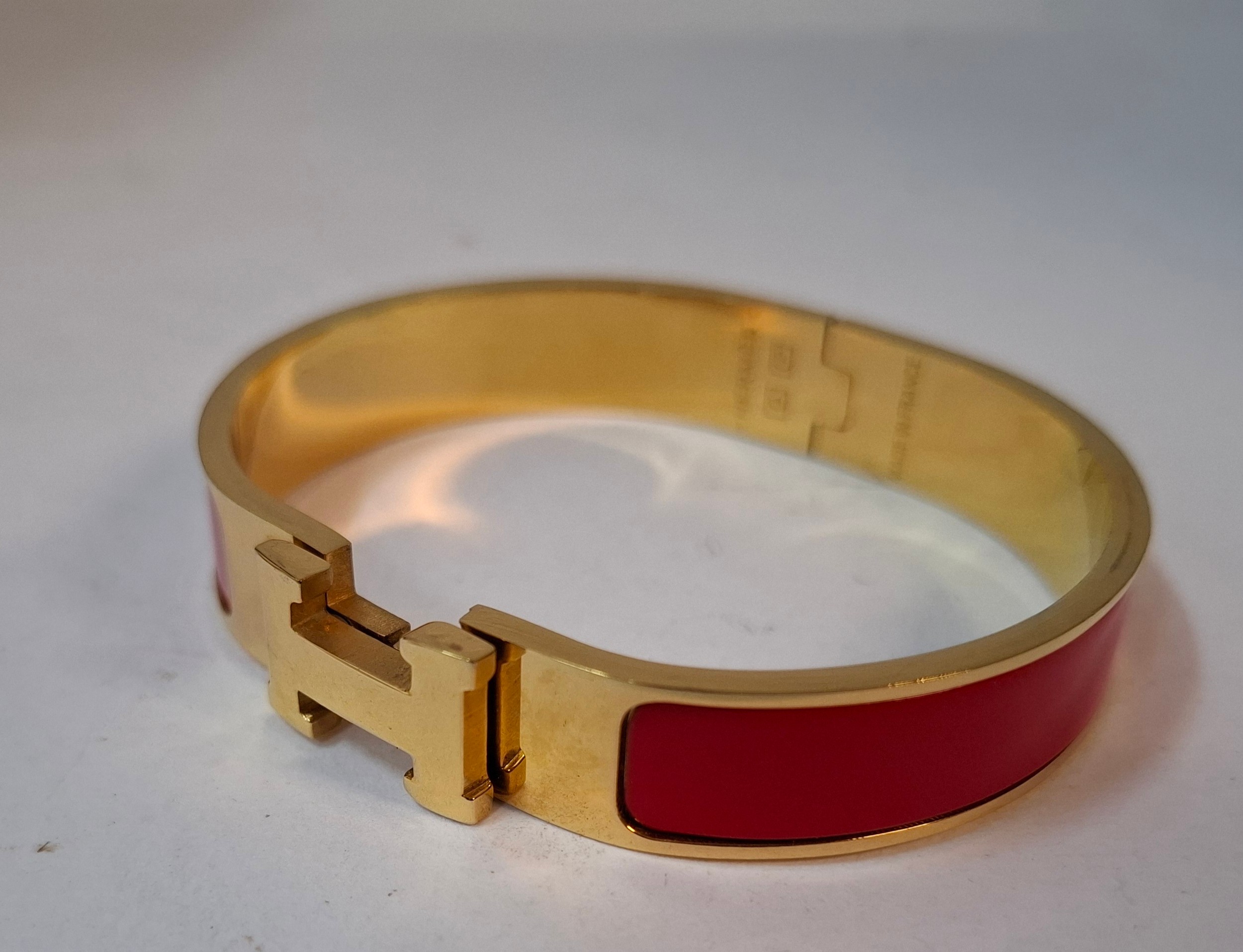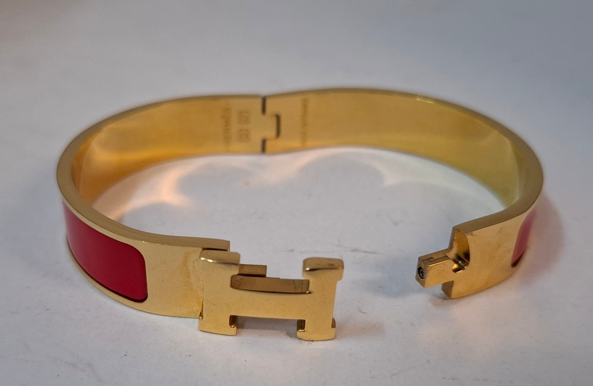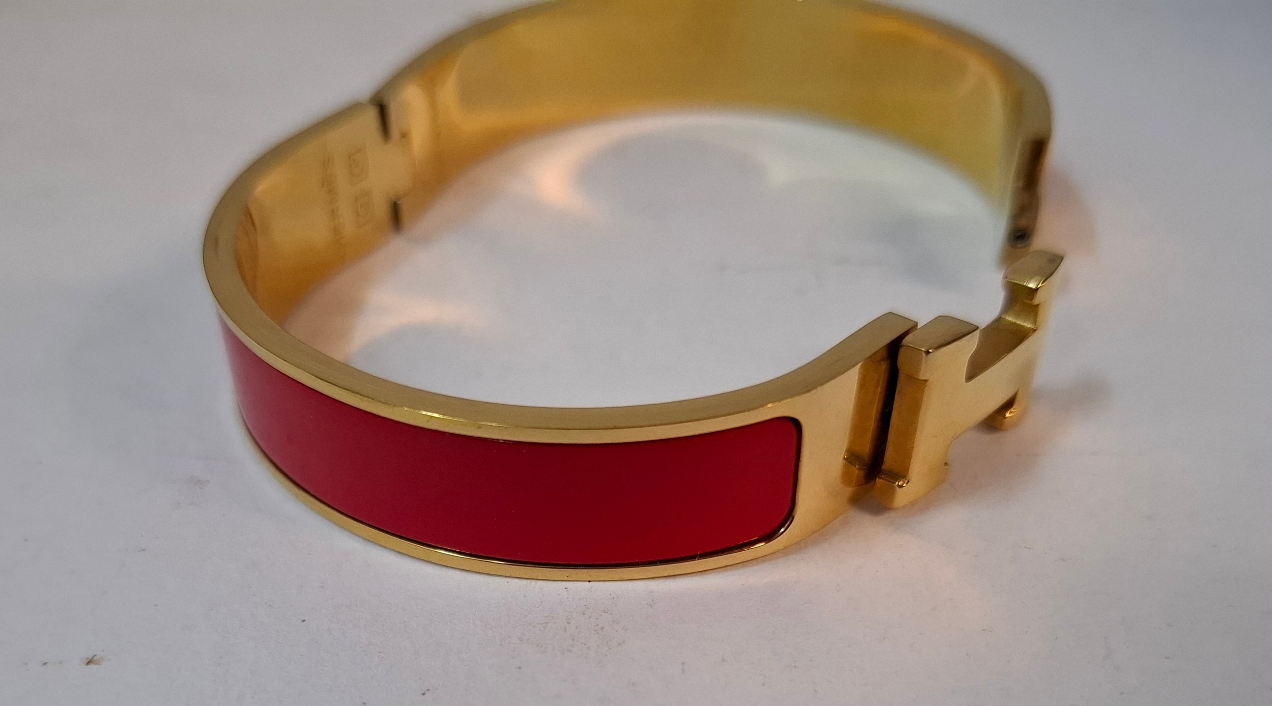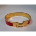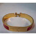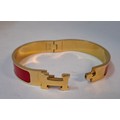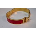 Hermes- A 'Clic H' gold plated and red enamel bracelet, made in France, internal measurement 18cm. Location:Cab