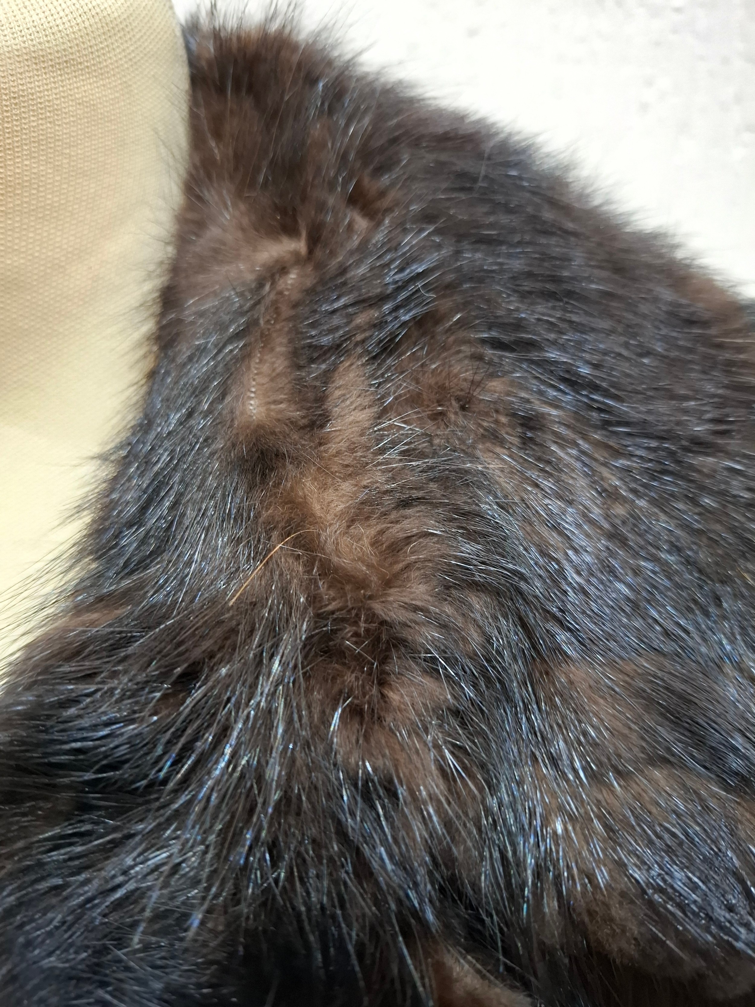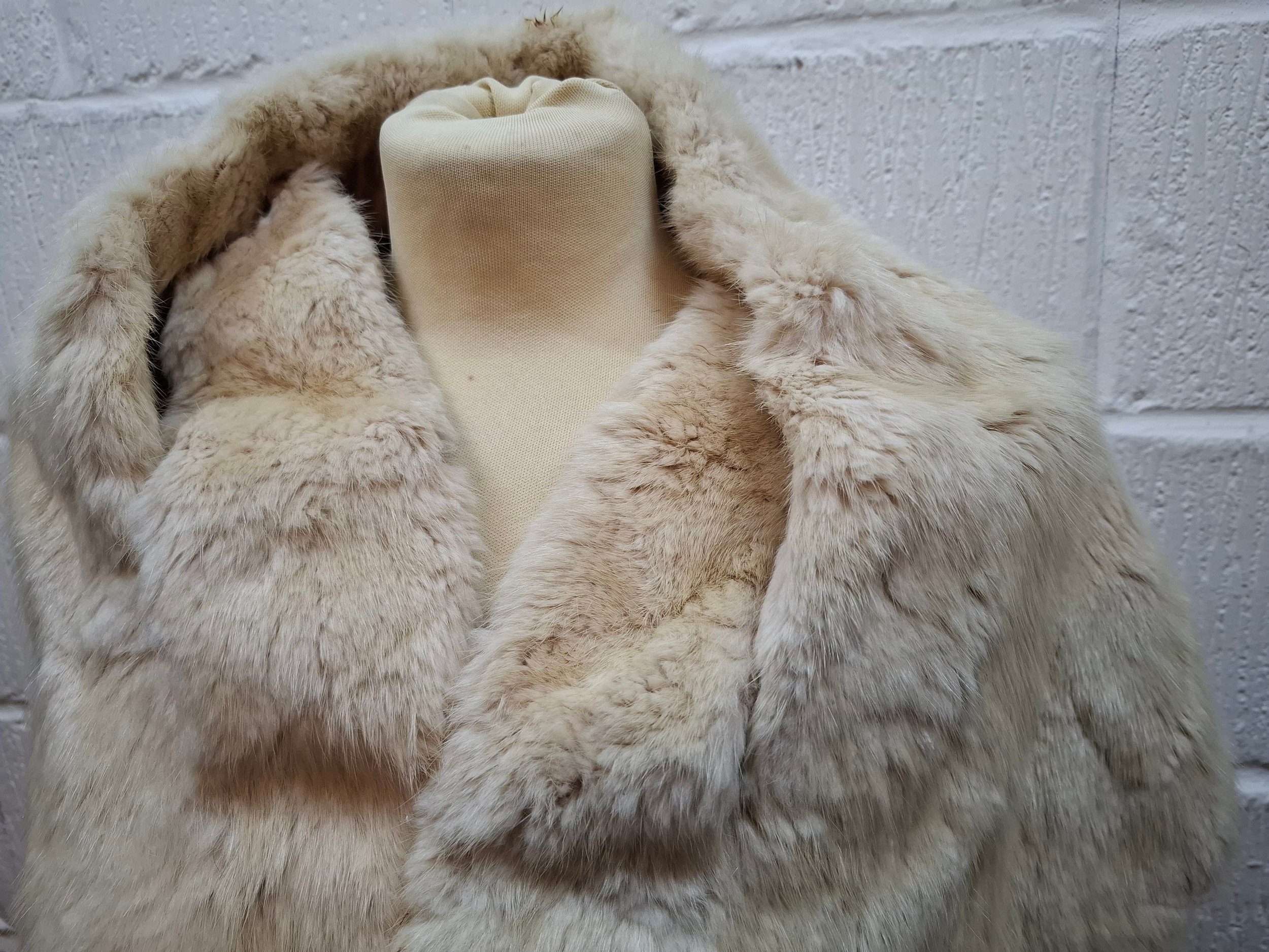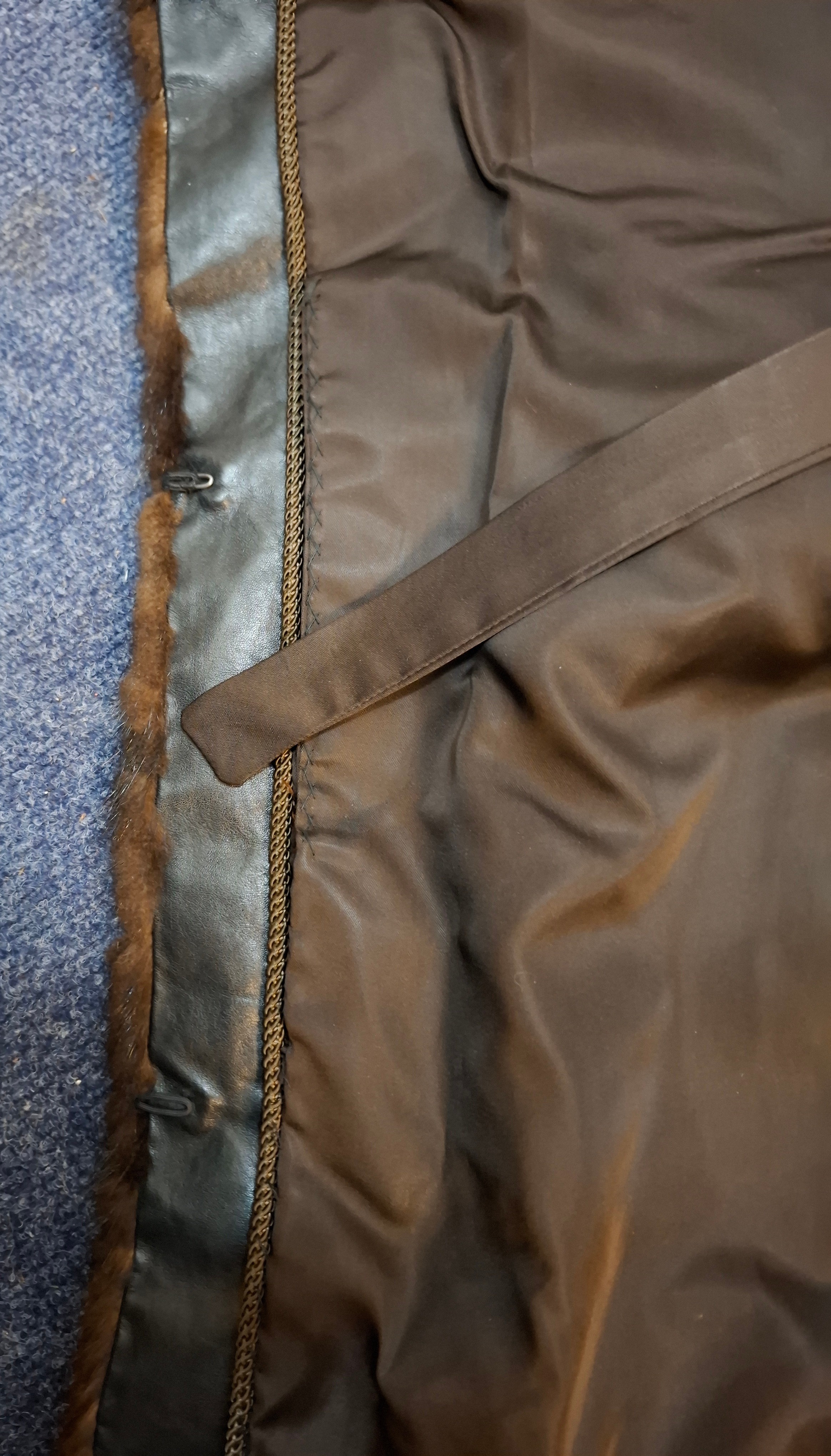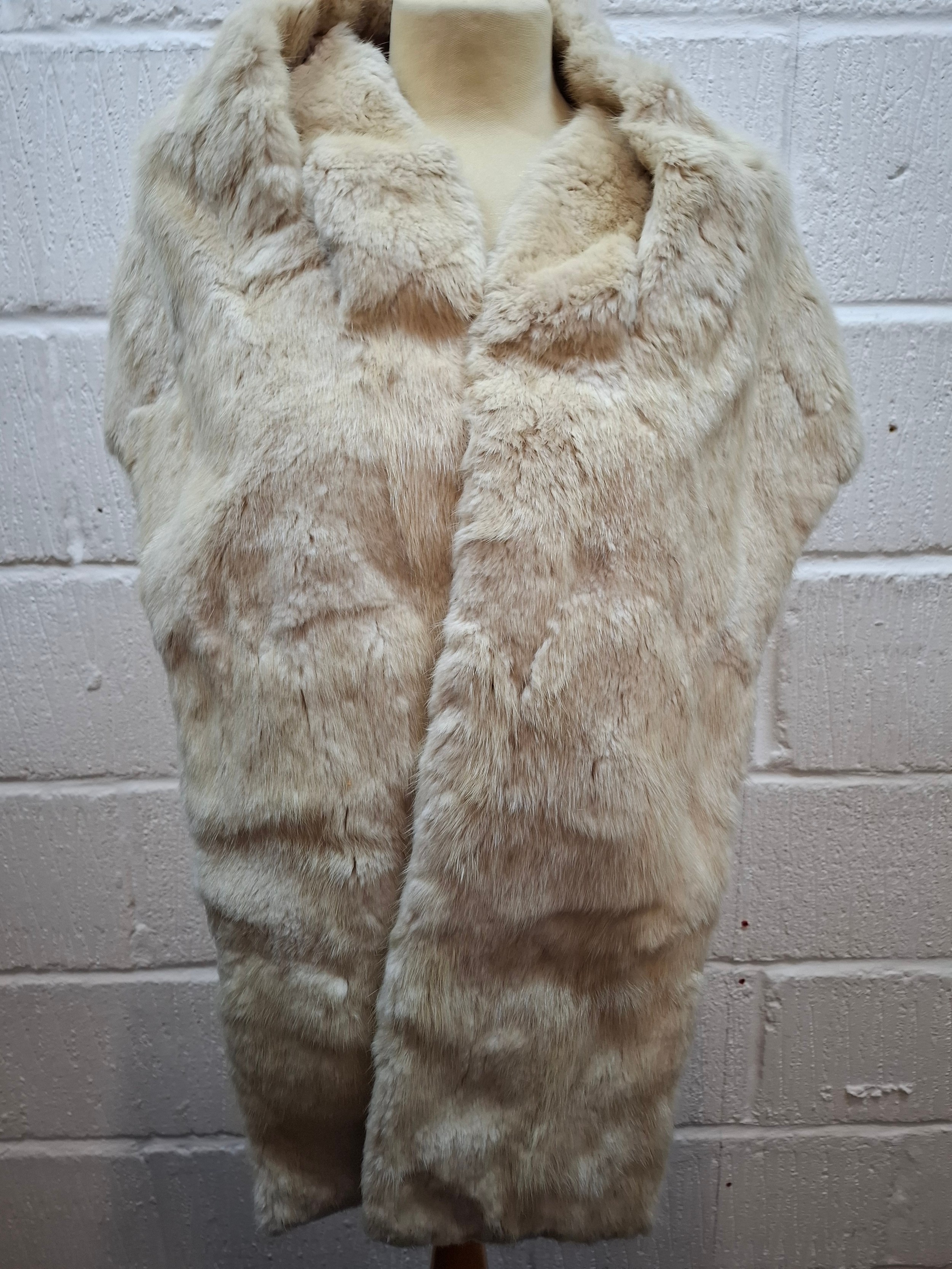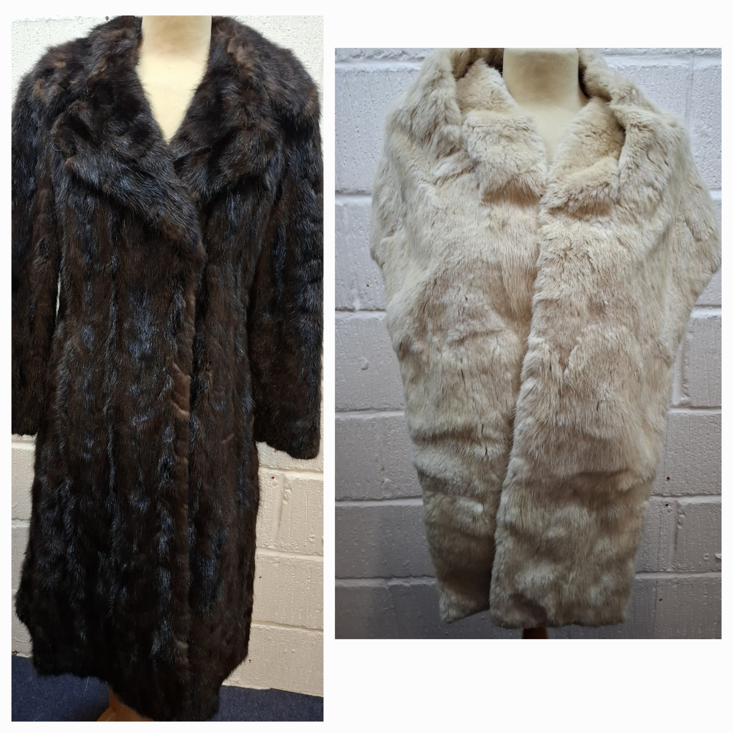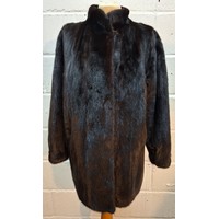 A 1970's dark brown ranch mink coat with matching belt having a shawl collar and tapered waist, approx 36" chest x 44" long together with a vintage cream stole. Location:RWM (original receipts on hangar)