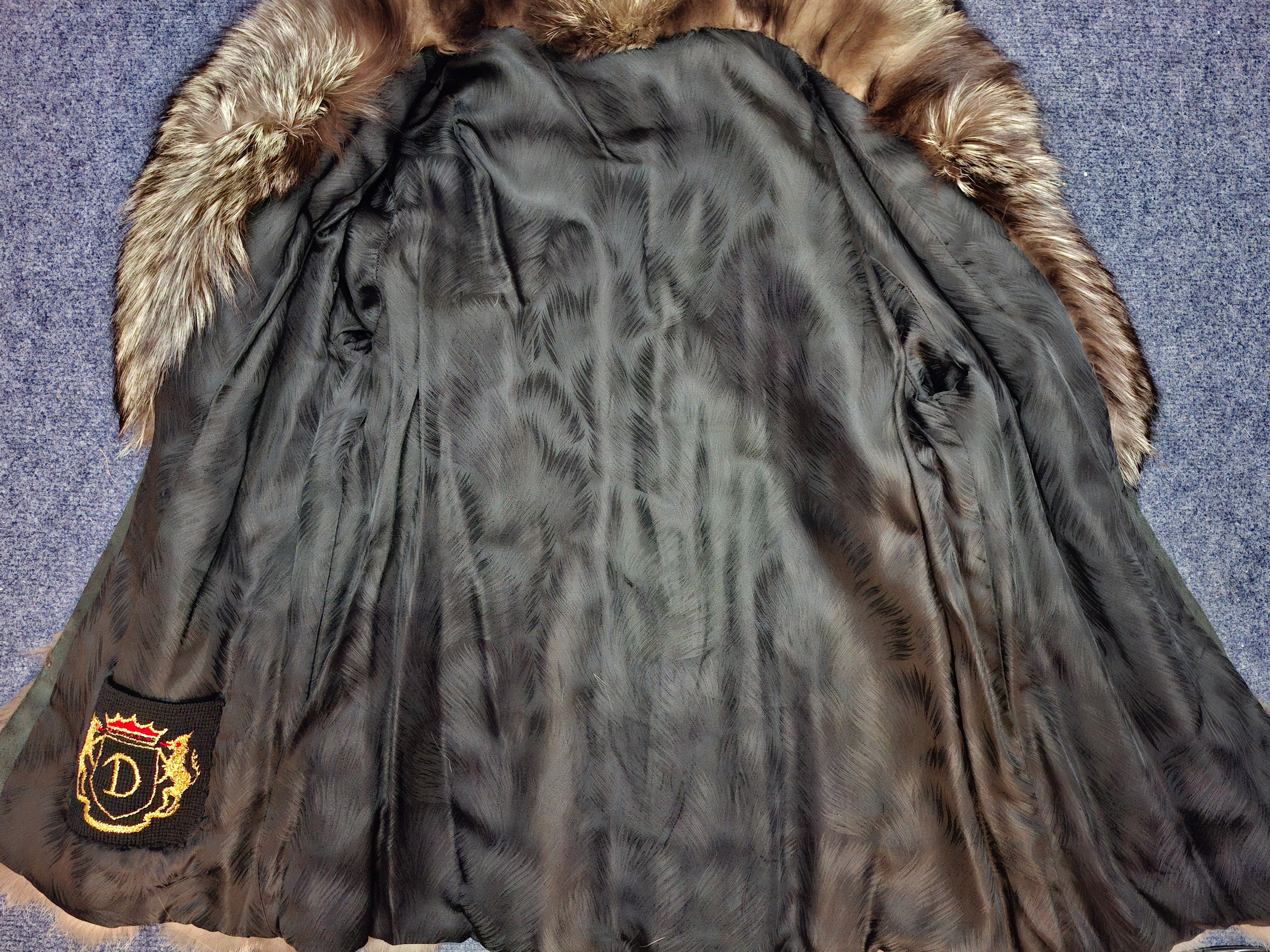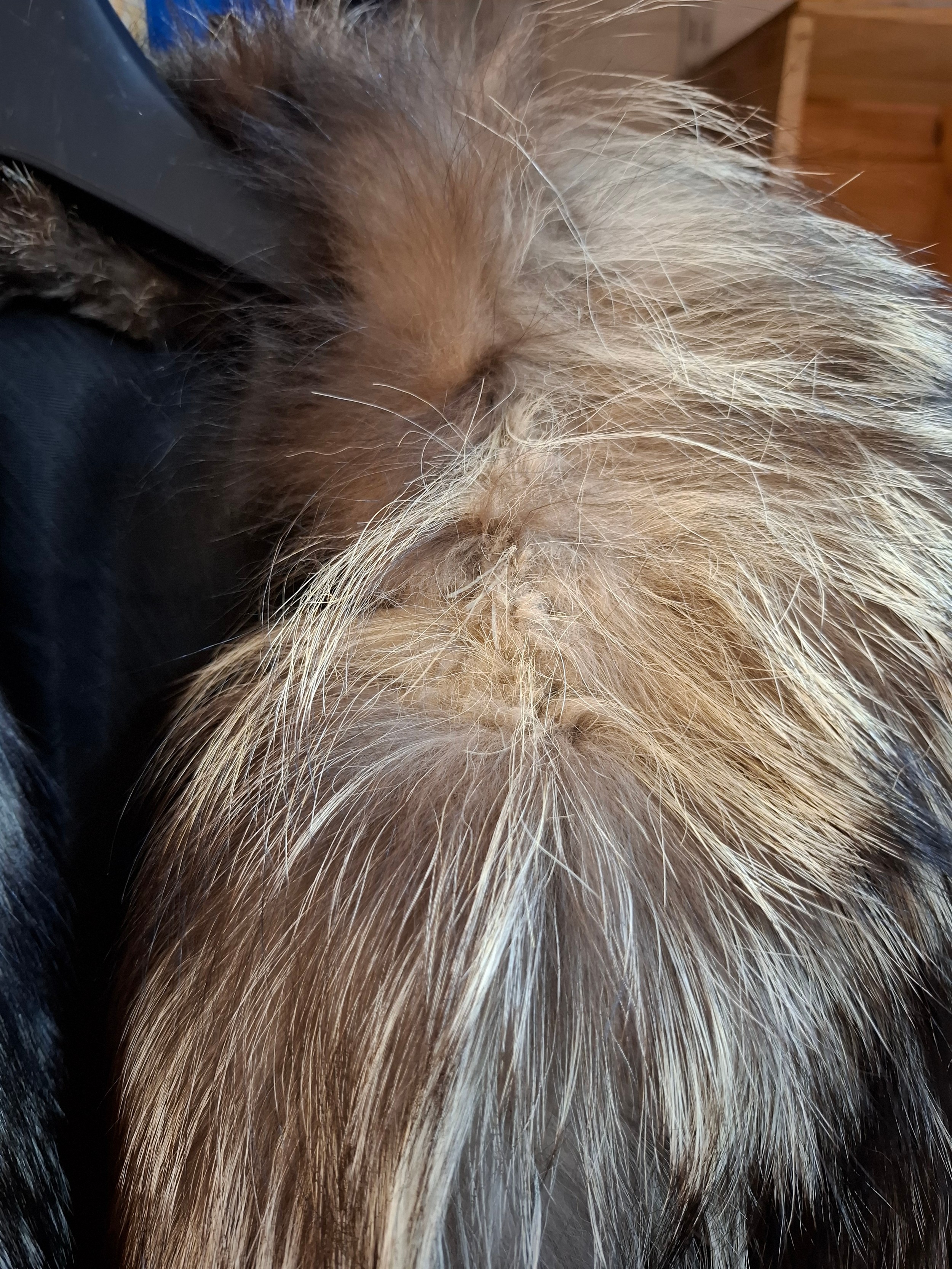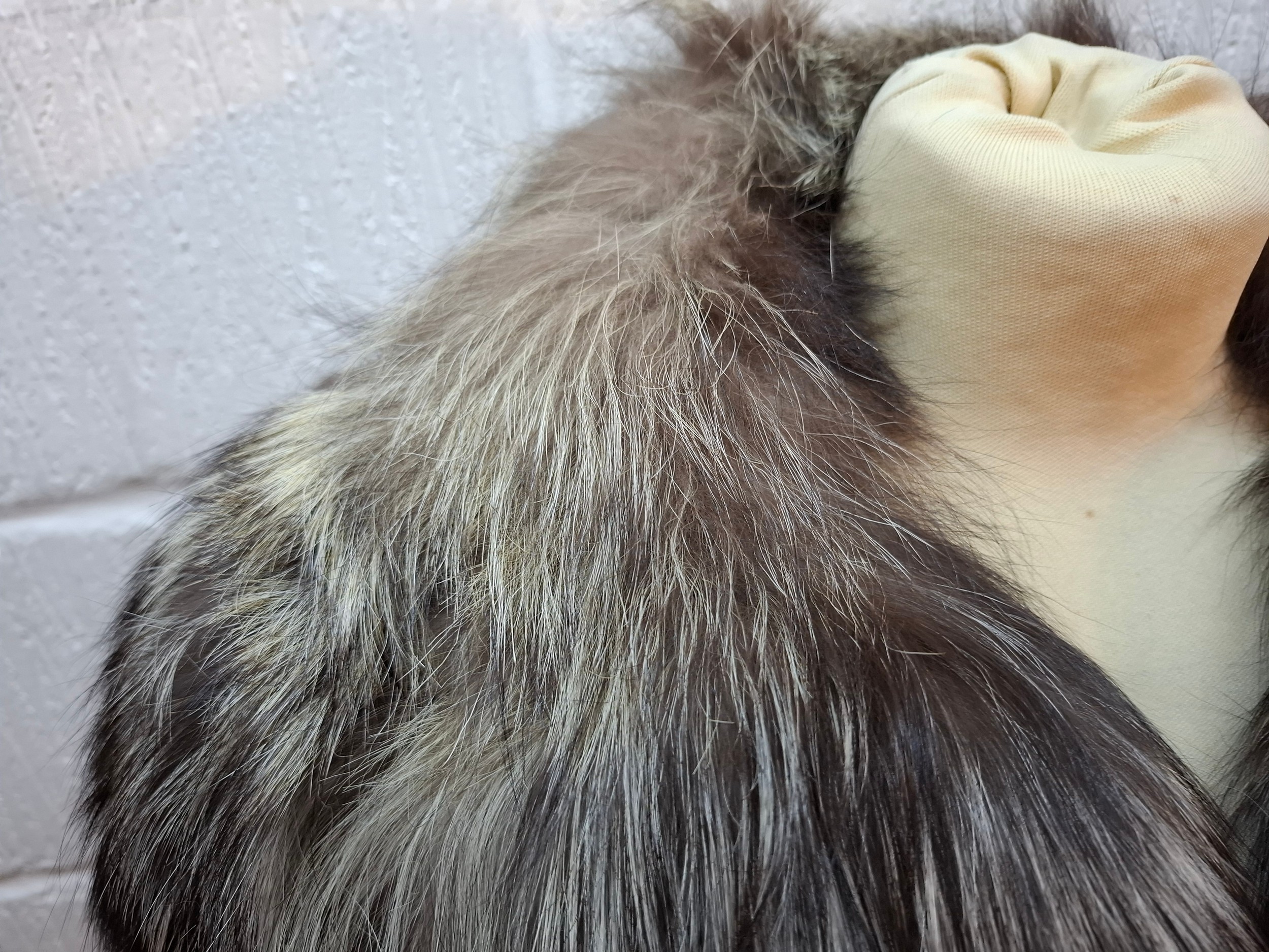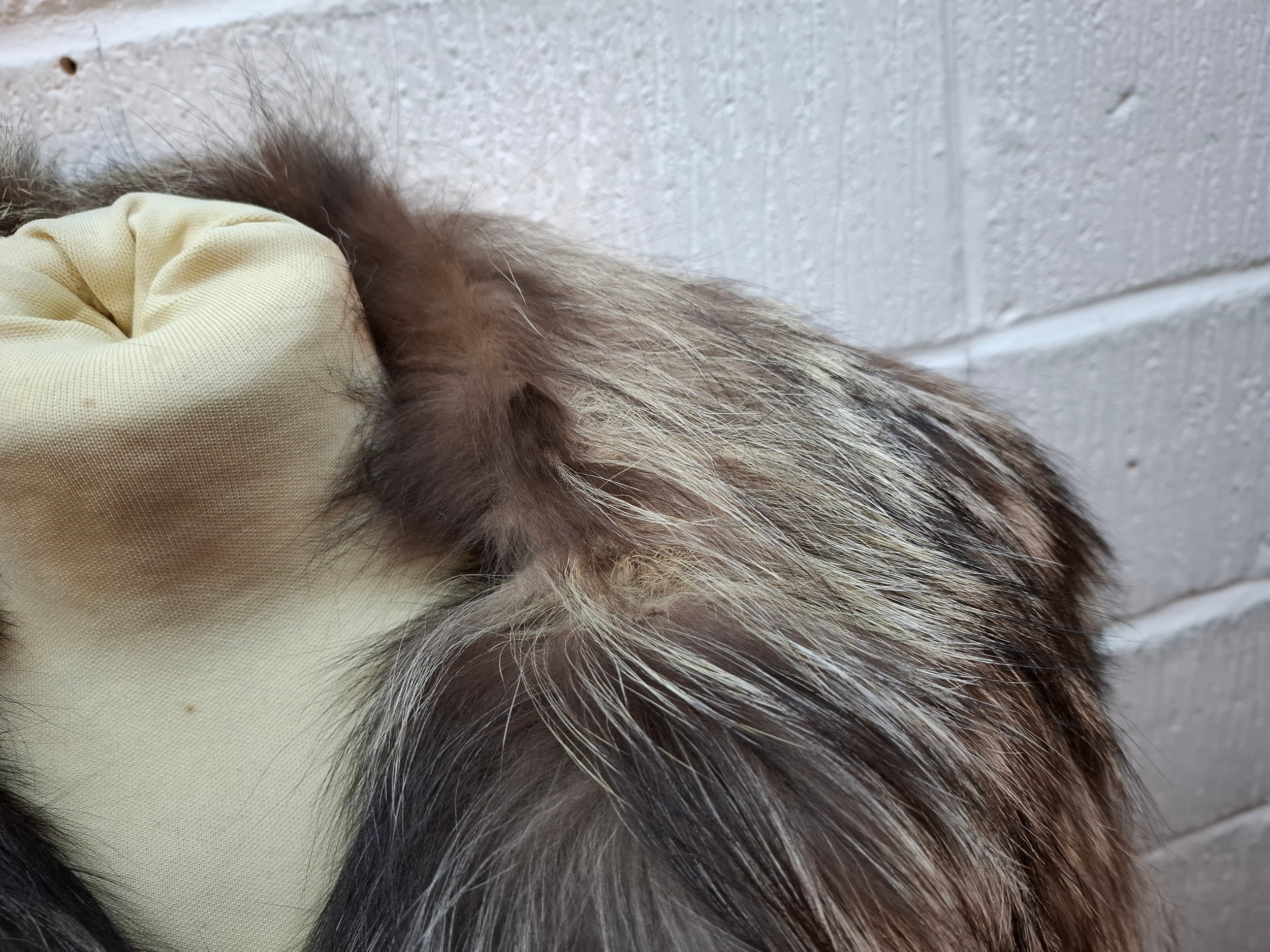 Jacket-Slight flattening and loss of fur to jacket collar, no strong smells, no stiffening, lining stain-free