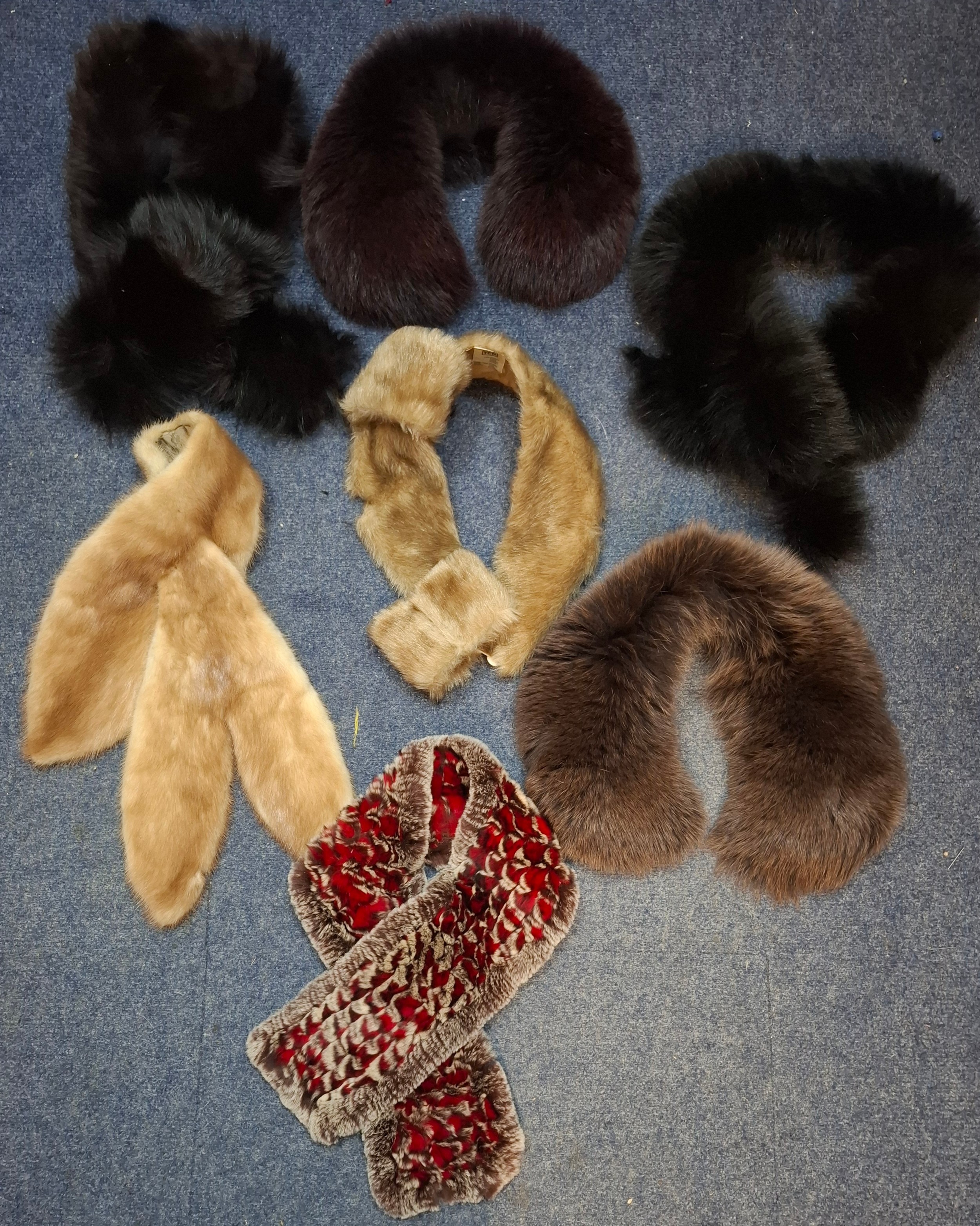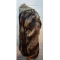 A late 20th century wolf fur jacket with internal pocket embroidered with the letter 'D' and a coat of arms, approx 40" chest x 27" long together with mixed fur and faux fur collars. Location;Rail