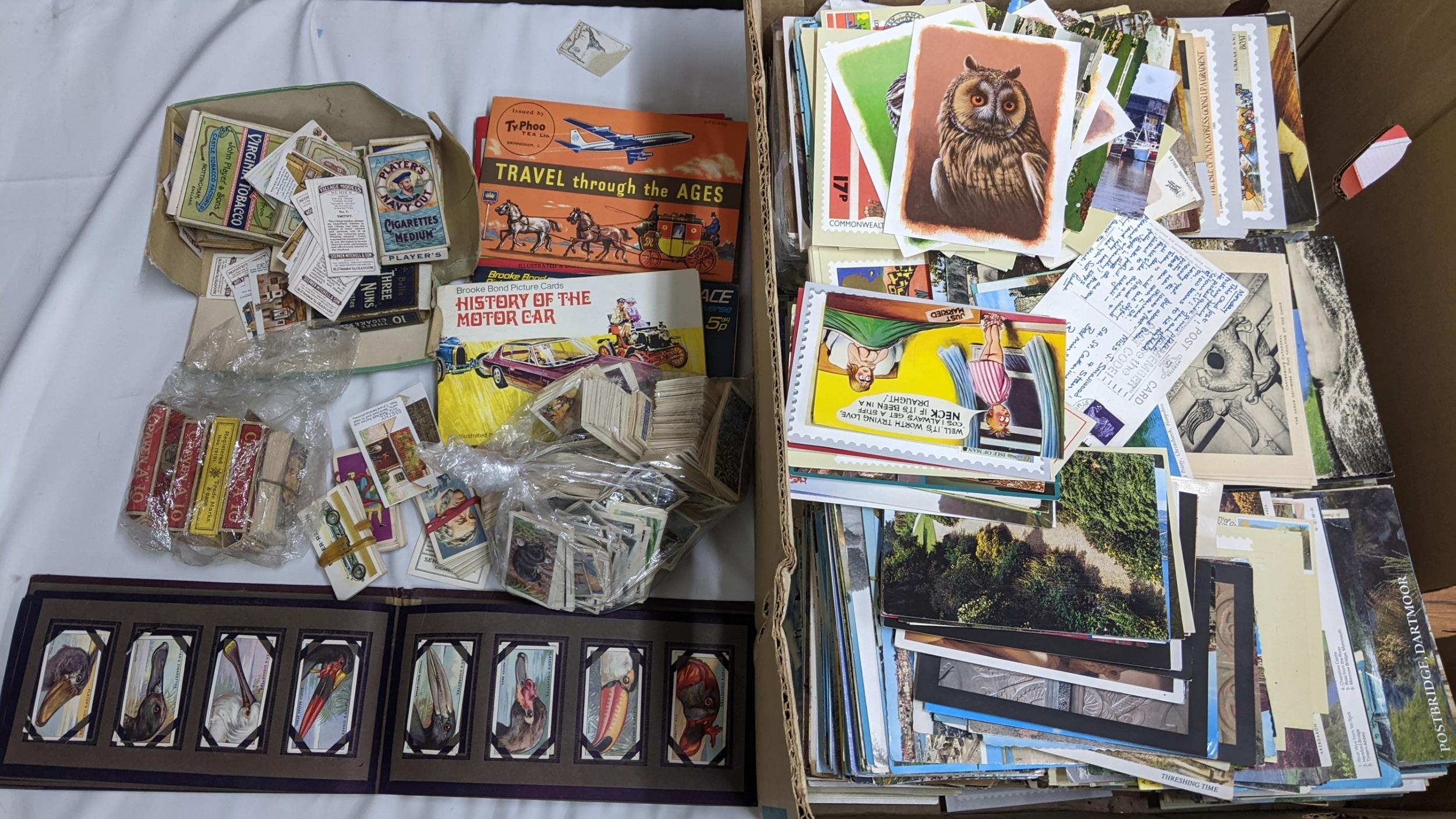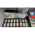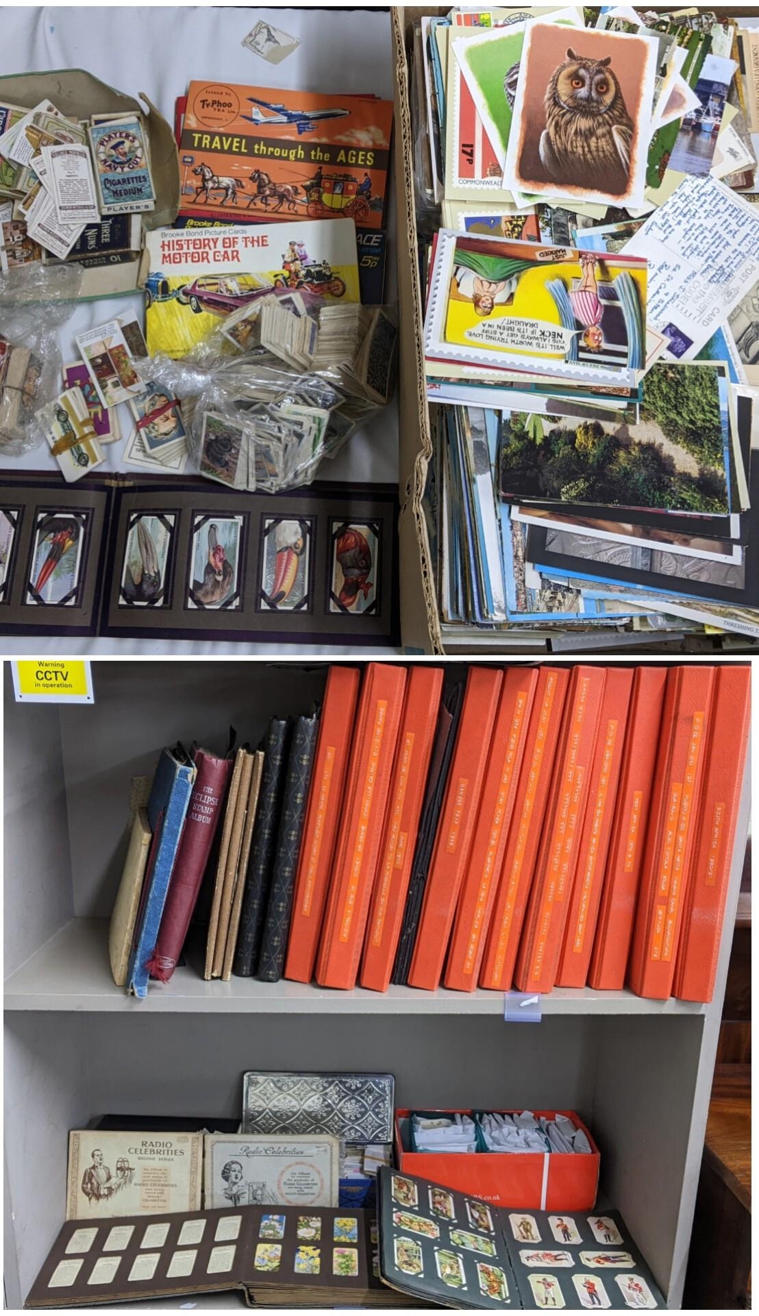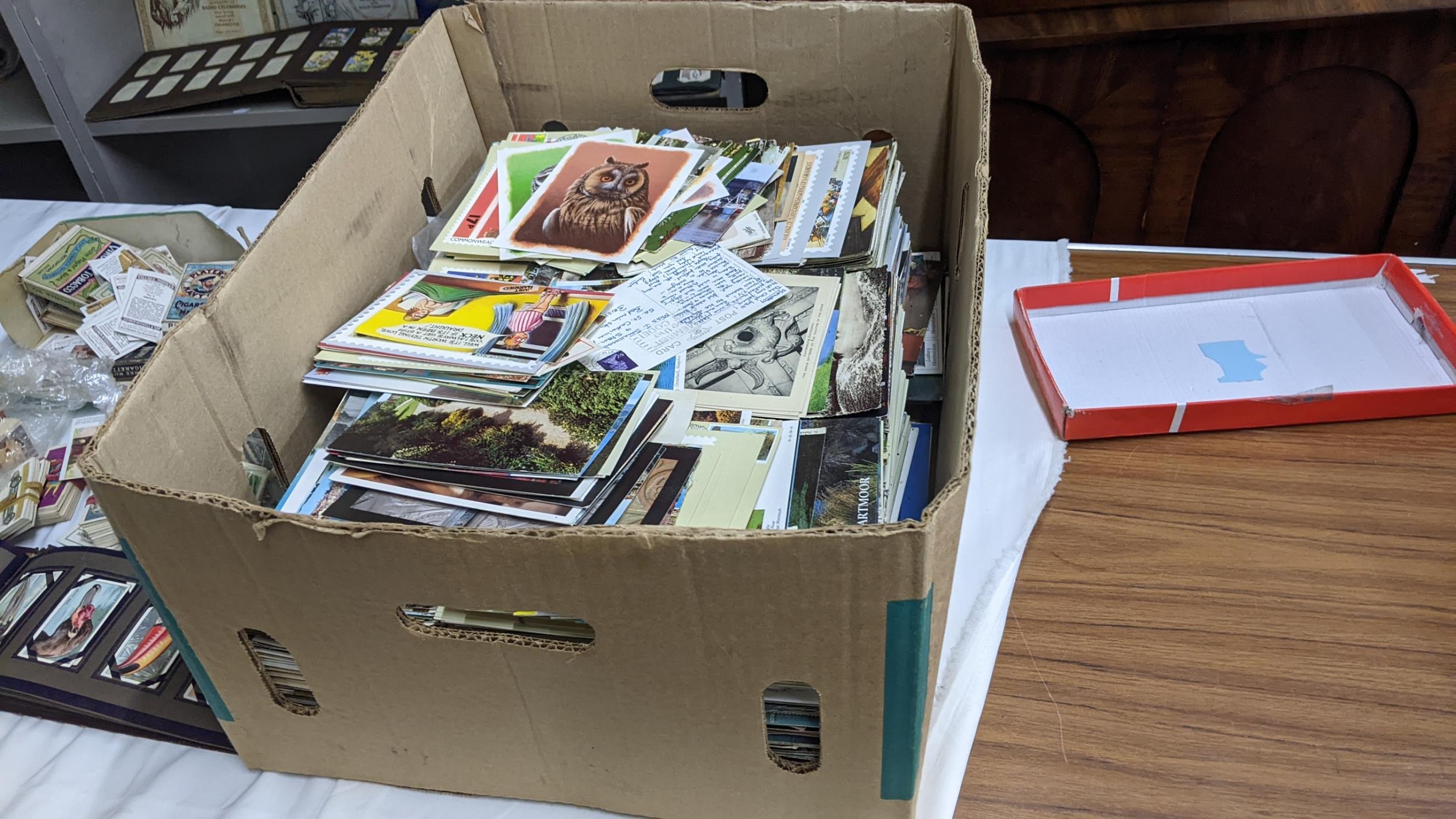 A large mixed lot containing postcards, stamp albums and cigarette cards