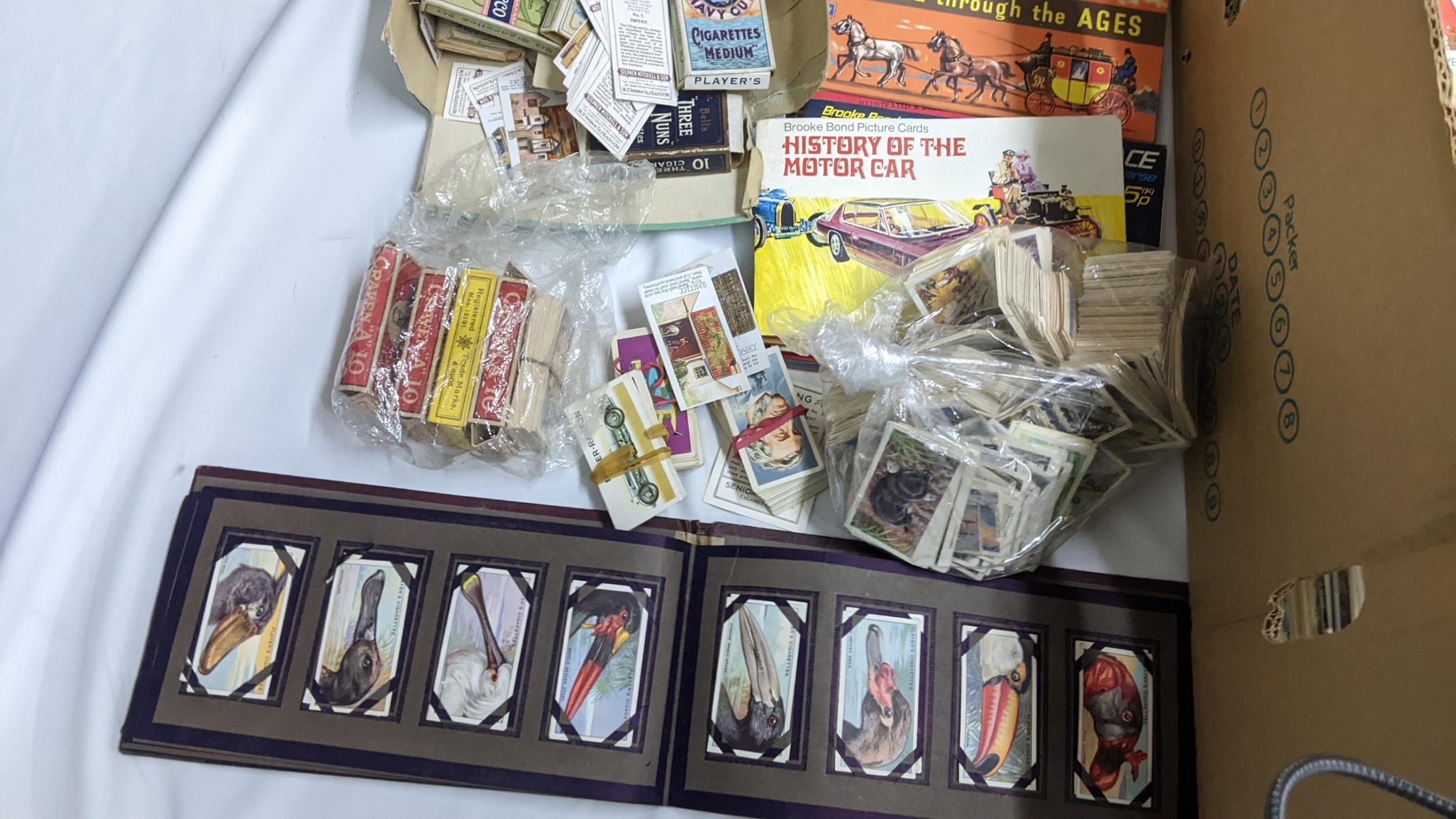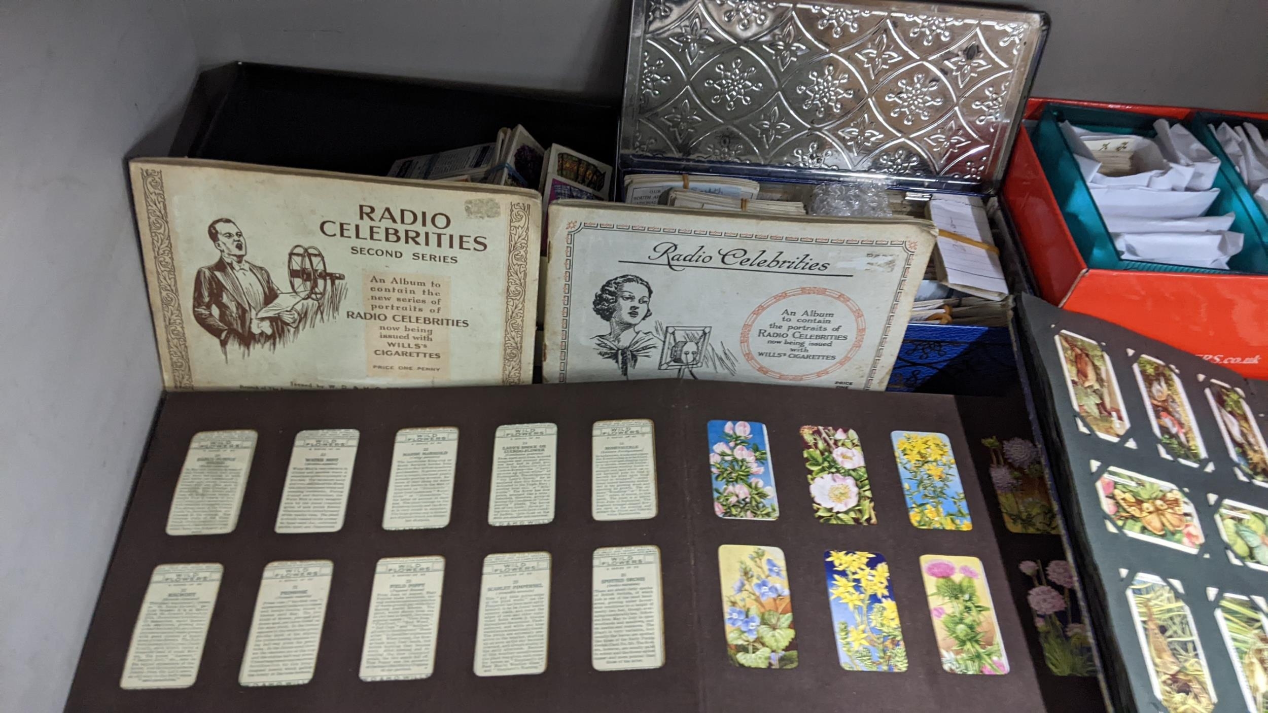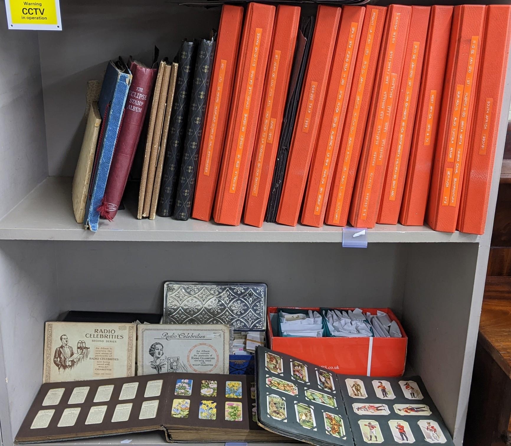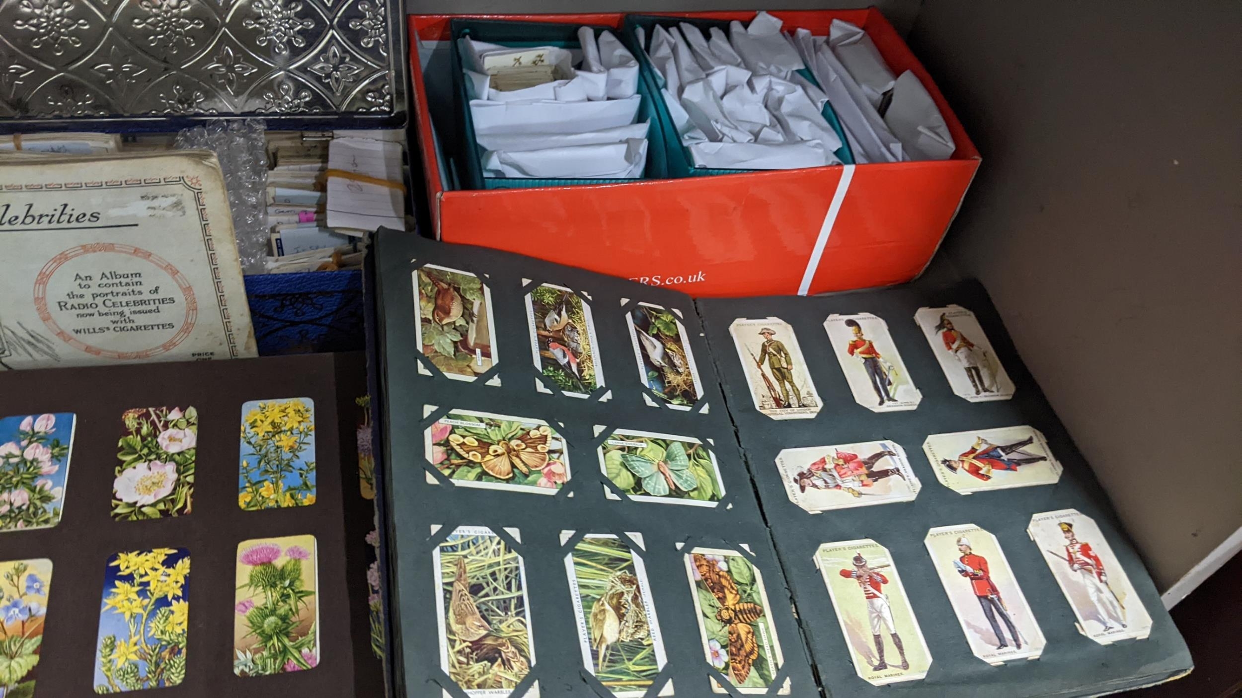 A large mixed lot containing postcards, stamp albums and cigarette cards