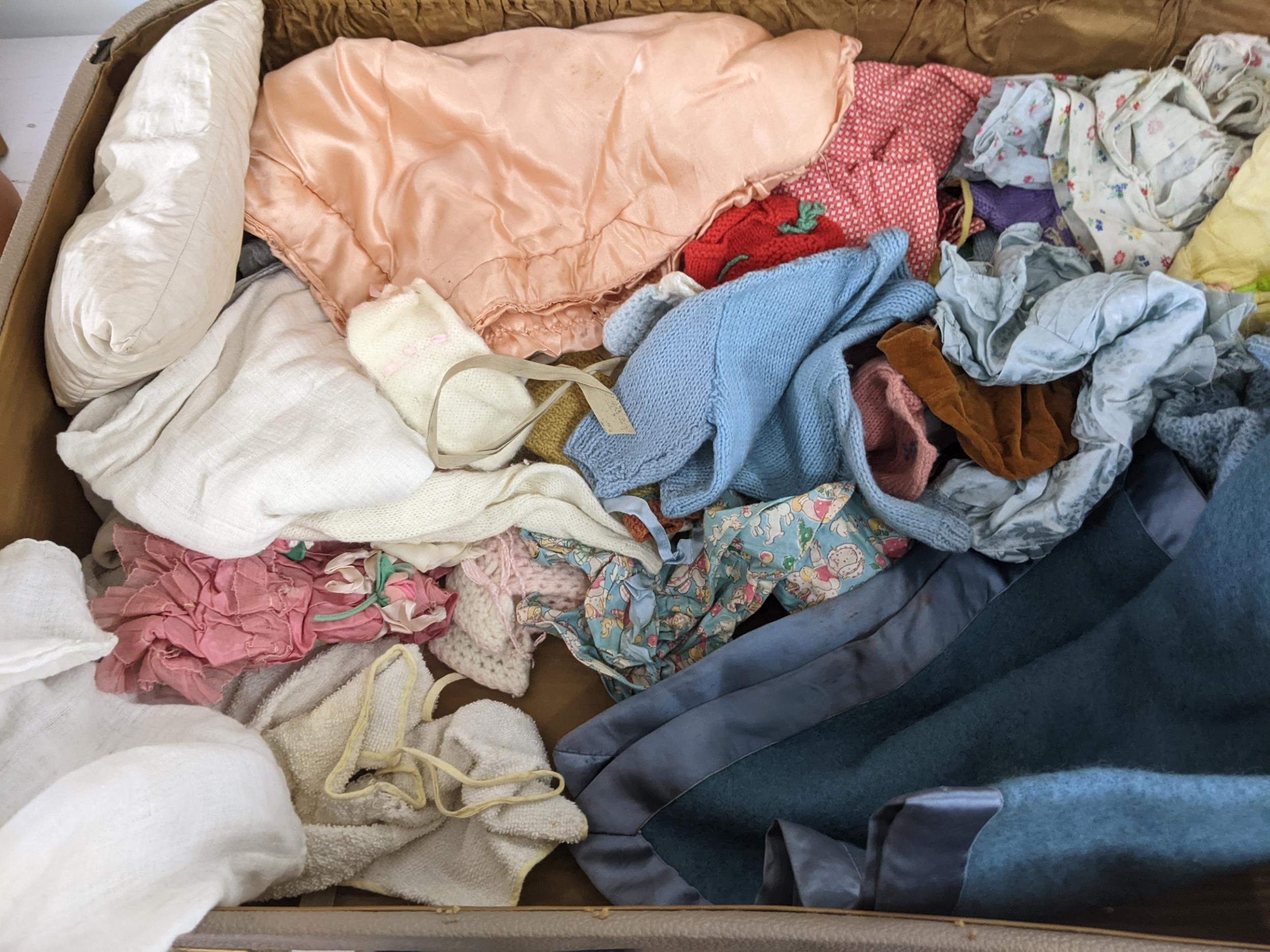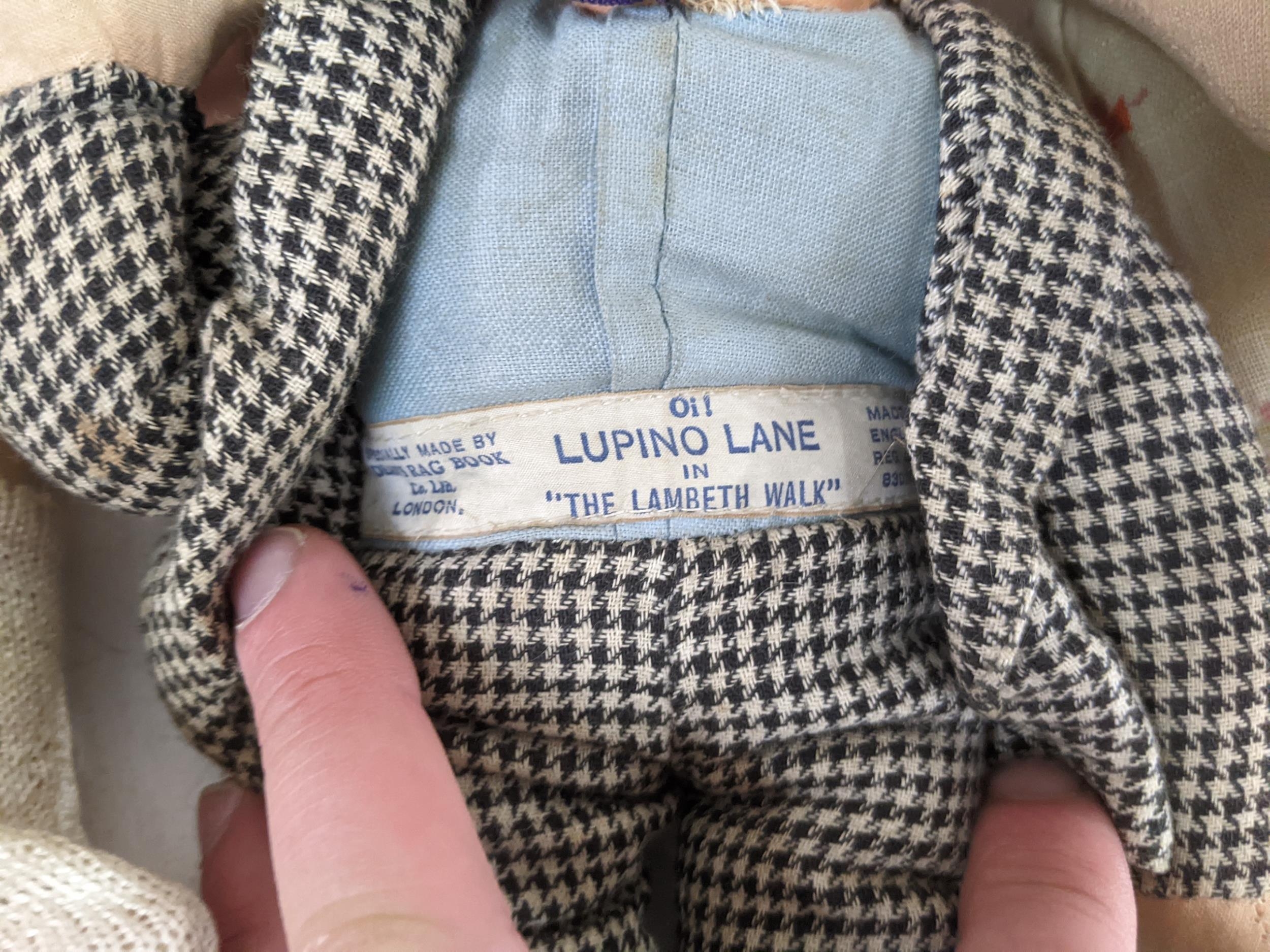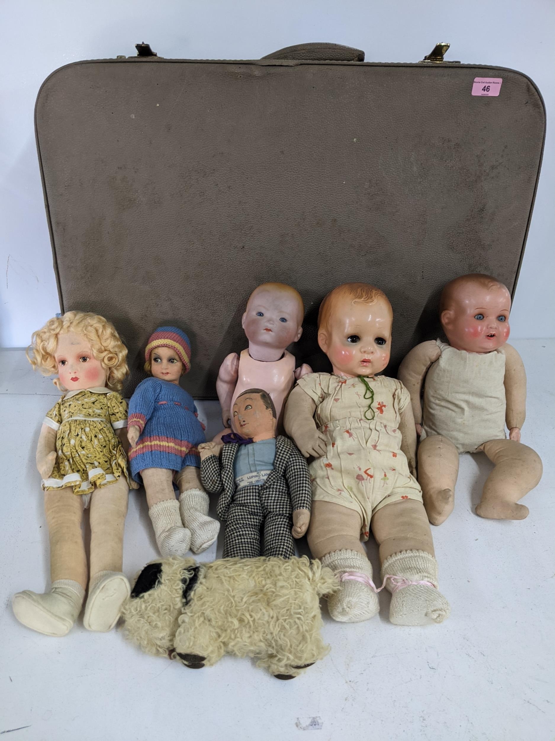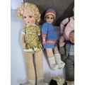 Six dolls and a large collection of accessories and clothing, one of the dolls - A gentleman 011 Lupino Lane in "The Lambeth Walk" and a toy dog