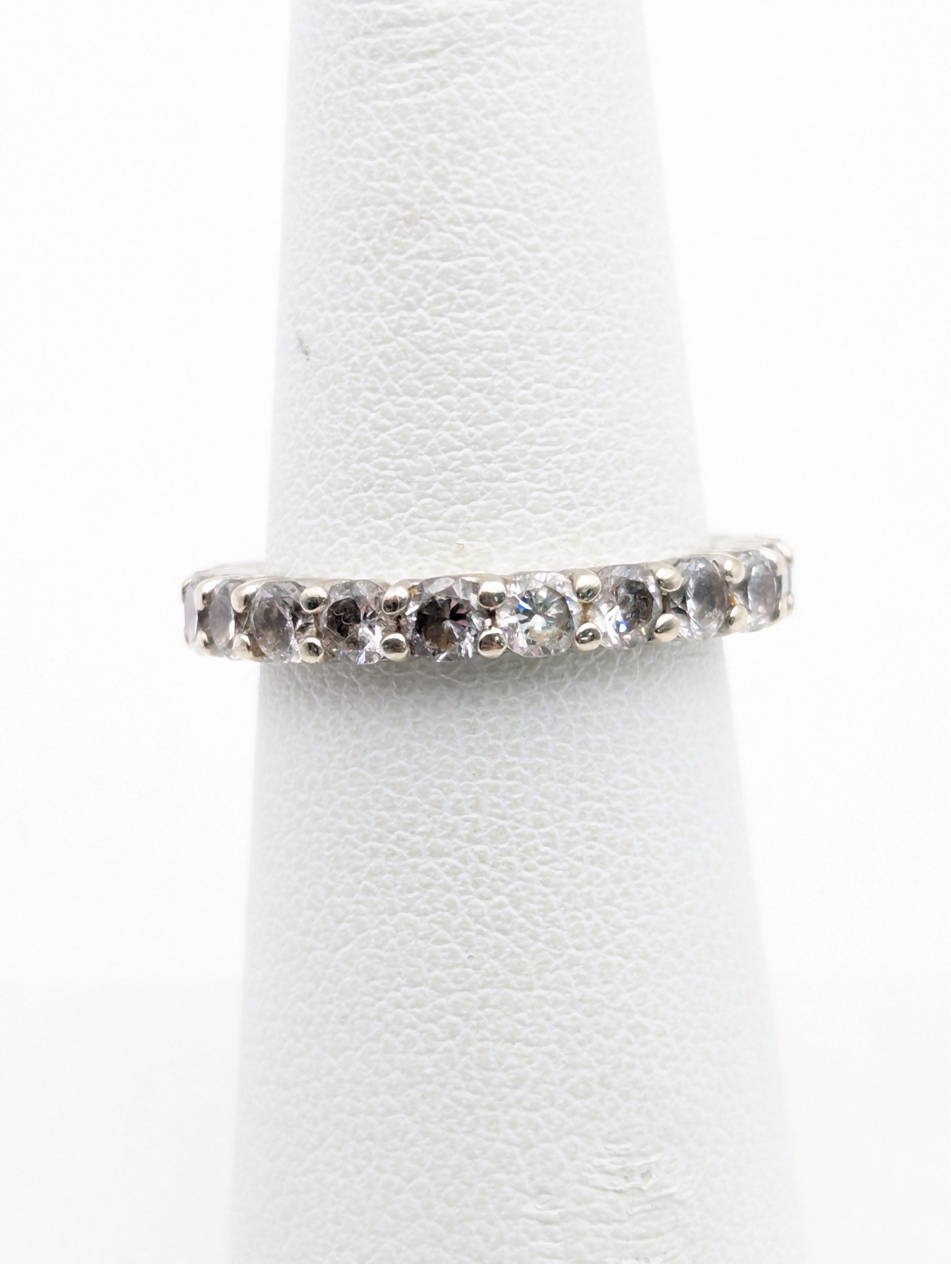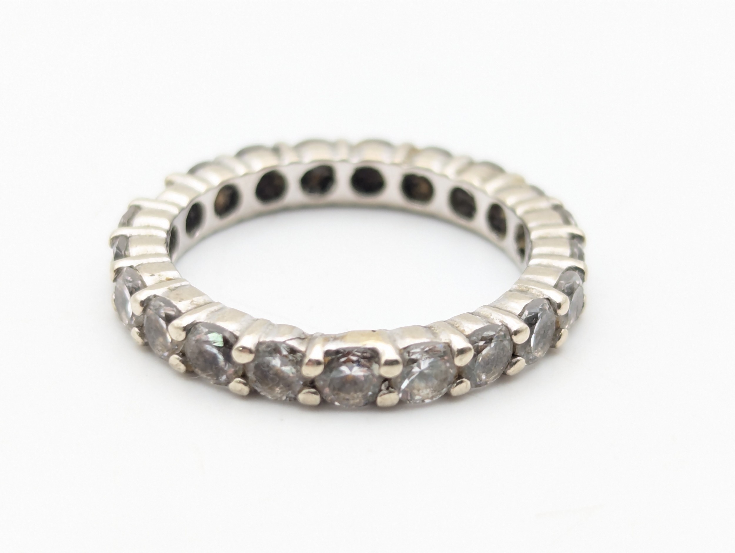 A 14ct white gold and tourmaline full eternity ring (some stones chipped) size L1/2, weight 3.3g