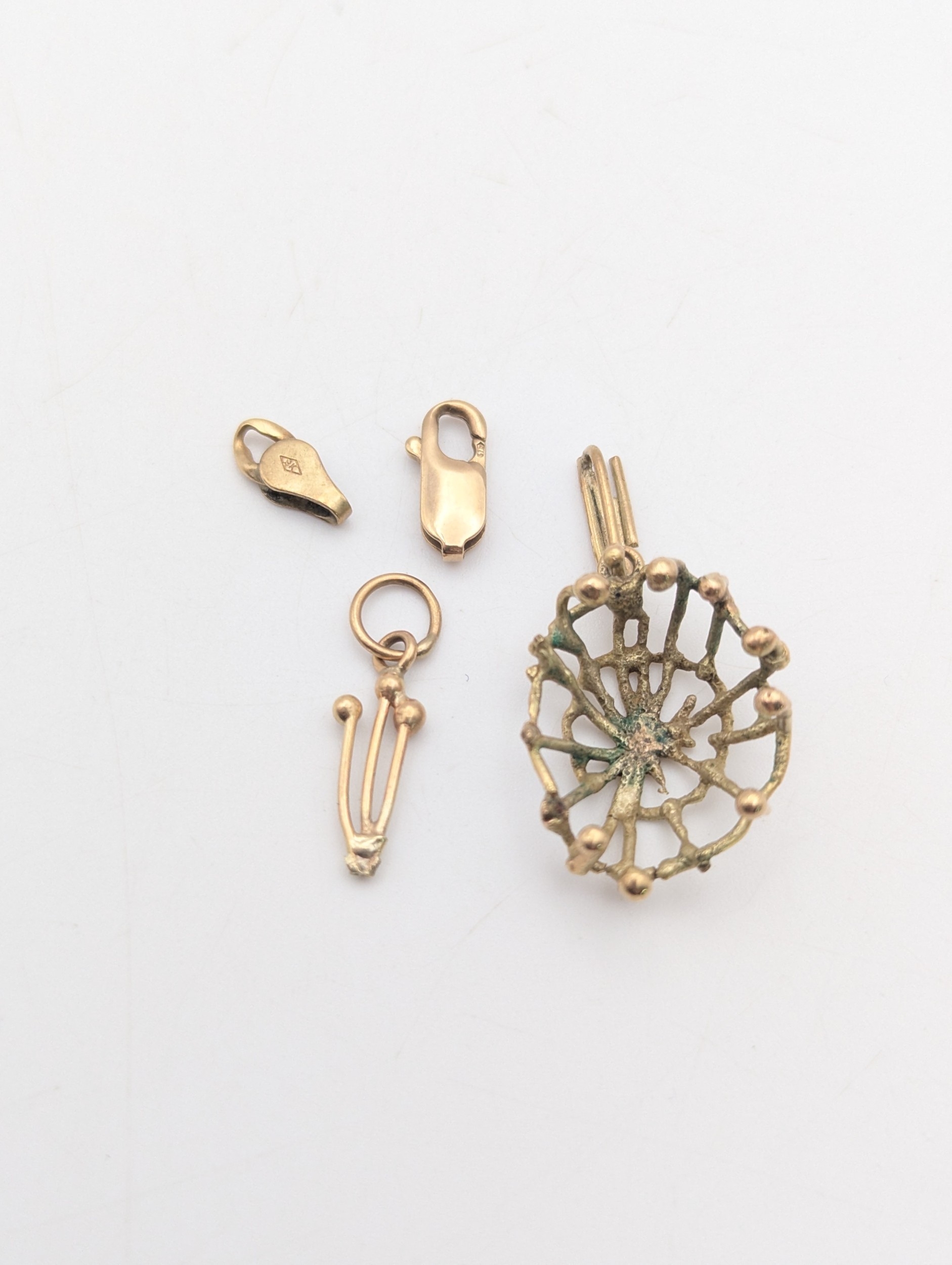 Yellow metal tested as 9ct together with a 9ct lobster claw clasp and one other, total weight 3.5g
