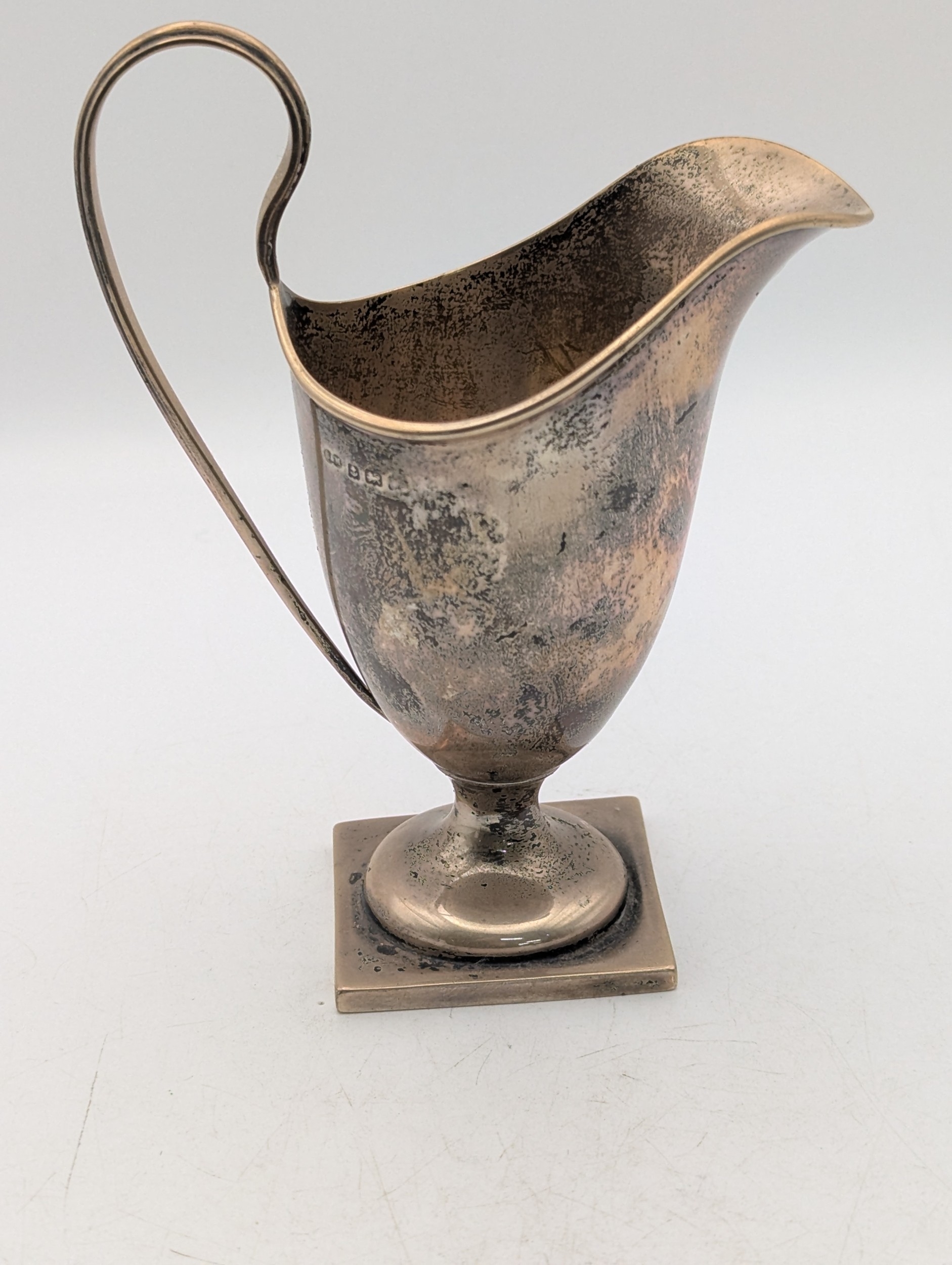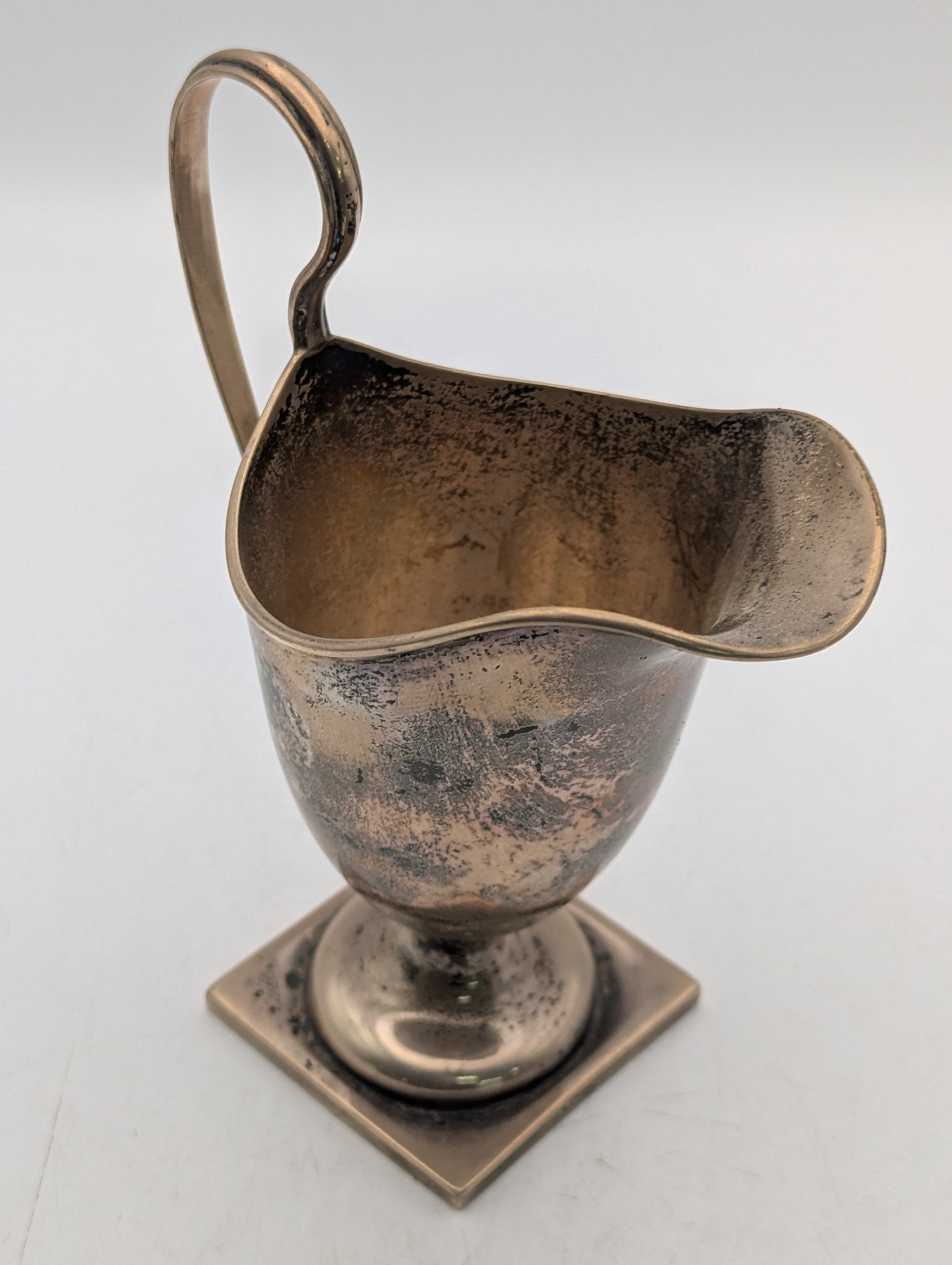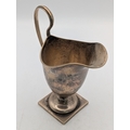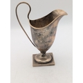 A silver helmet-shaped cream jug on a pedestal square base, 106.7g Location:P