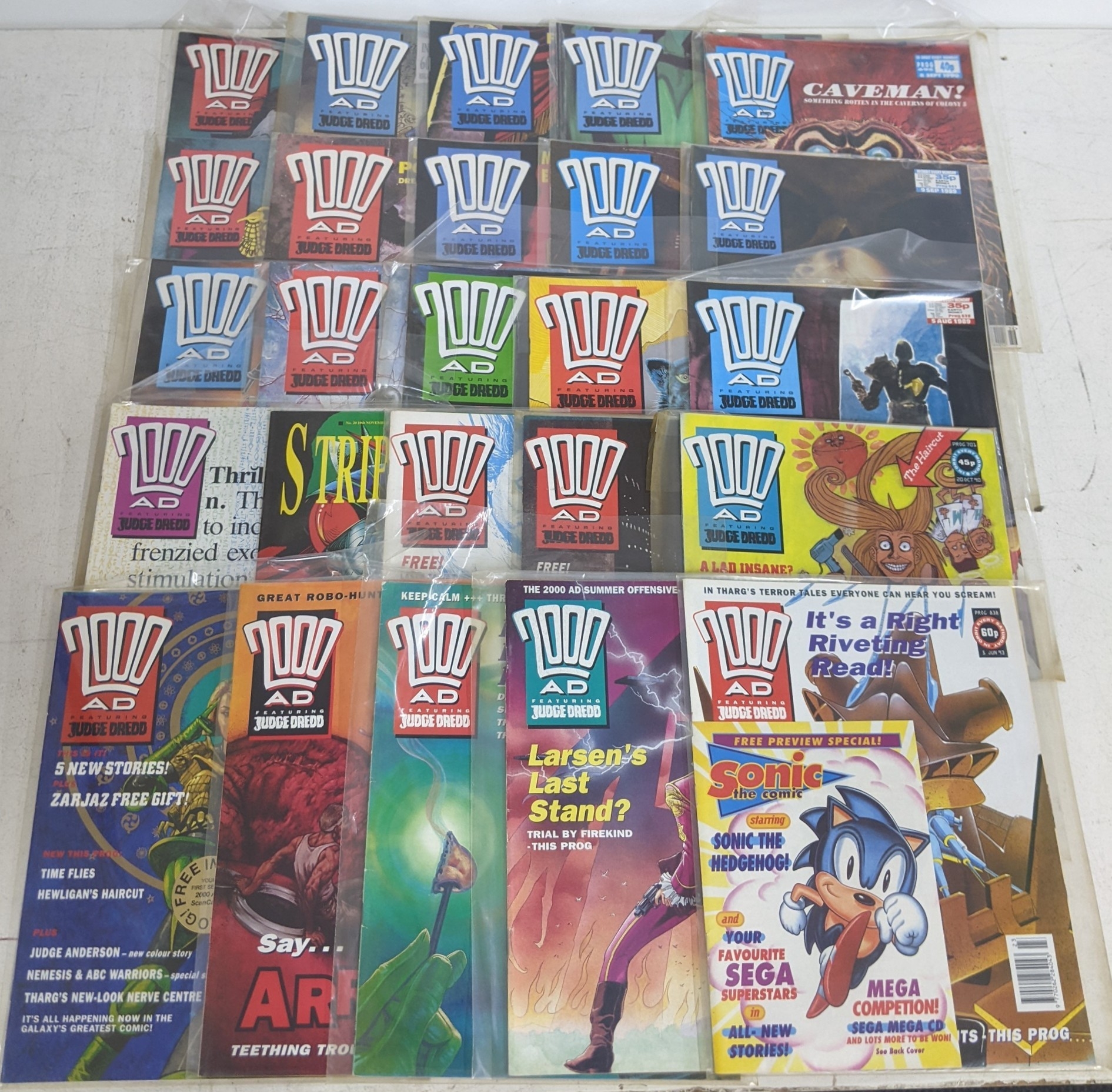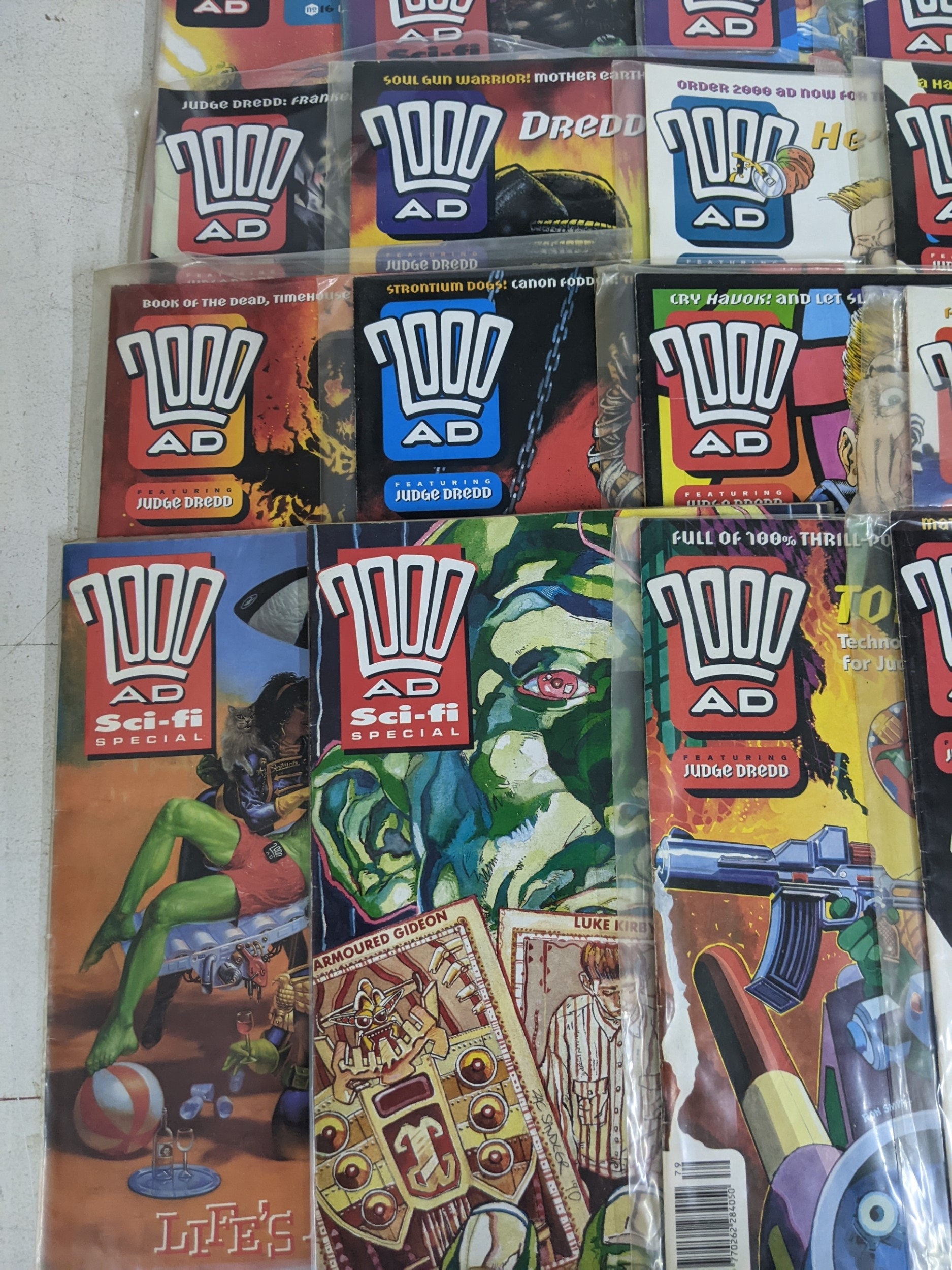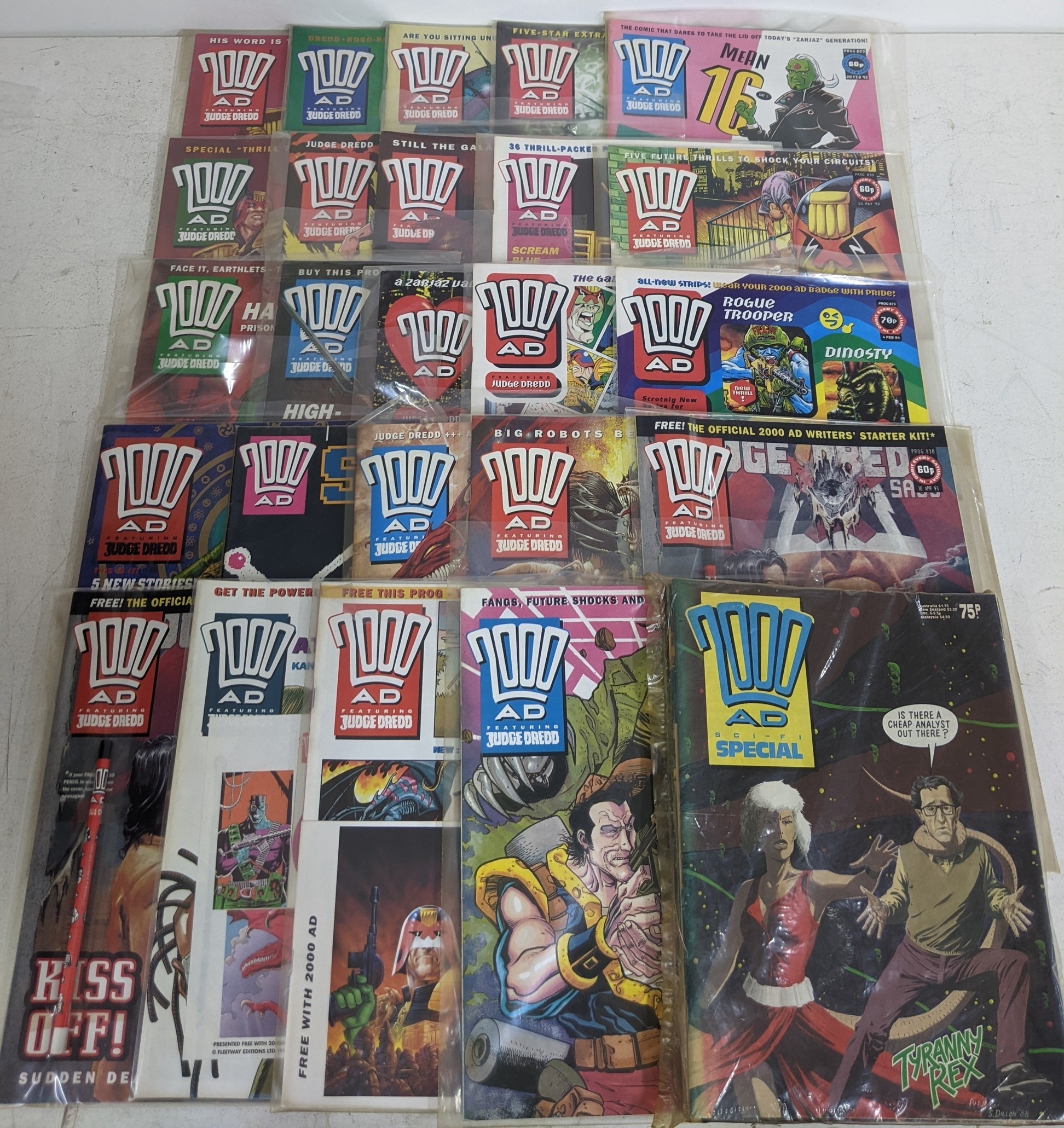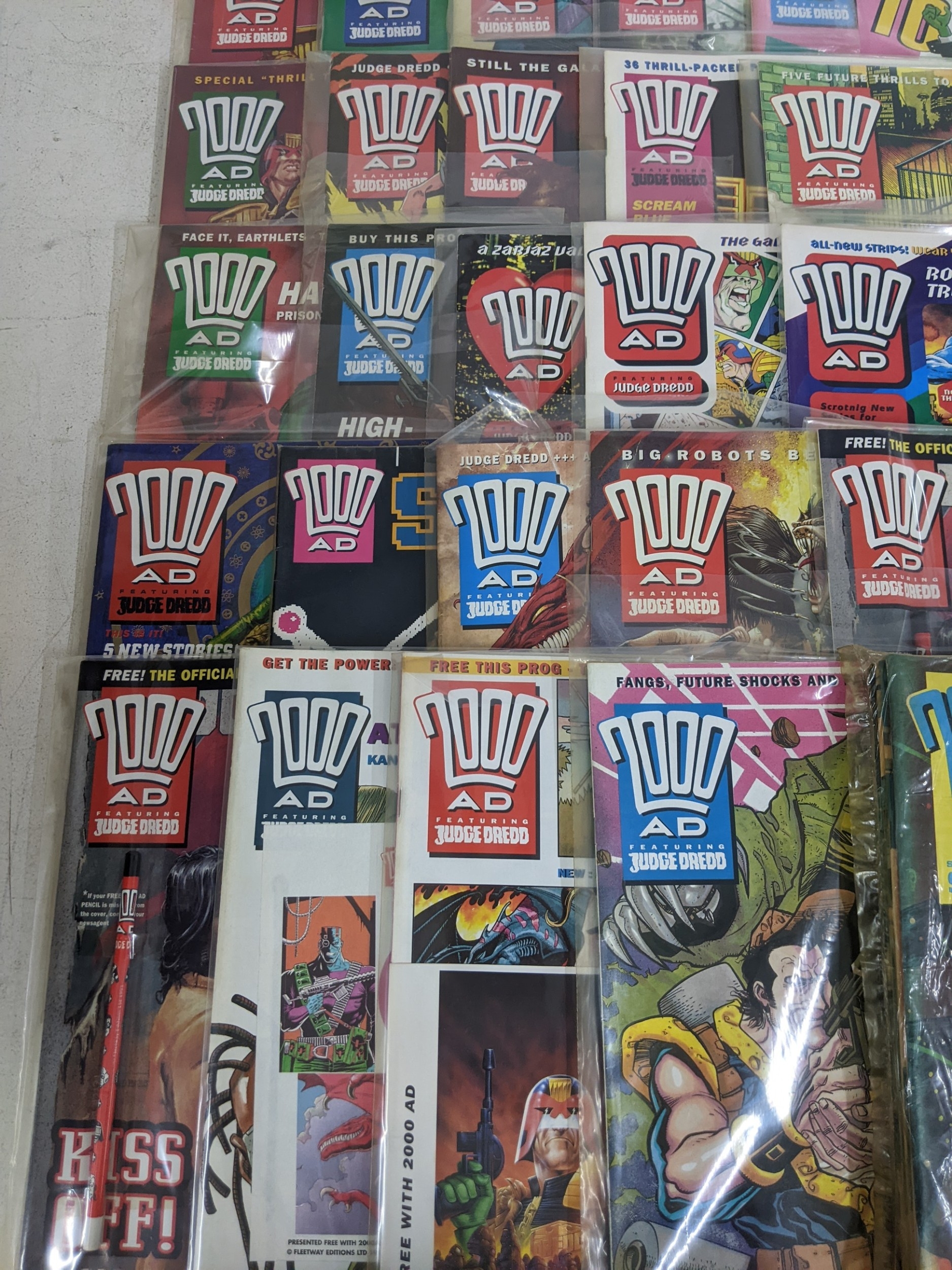 A large quantity of mainly 1990's 2000AD magazines, mostly featuring Judge Dread, all in protective plastic sleeves